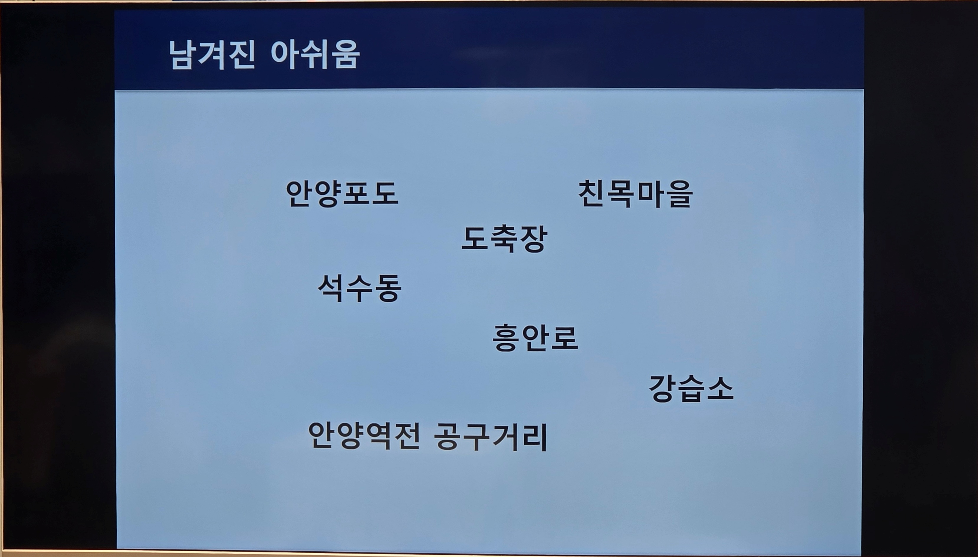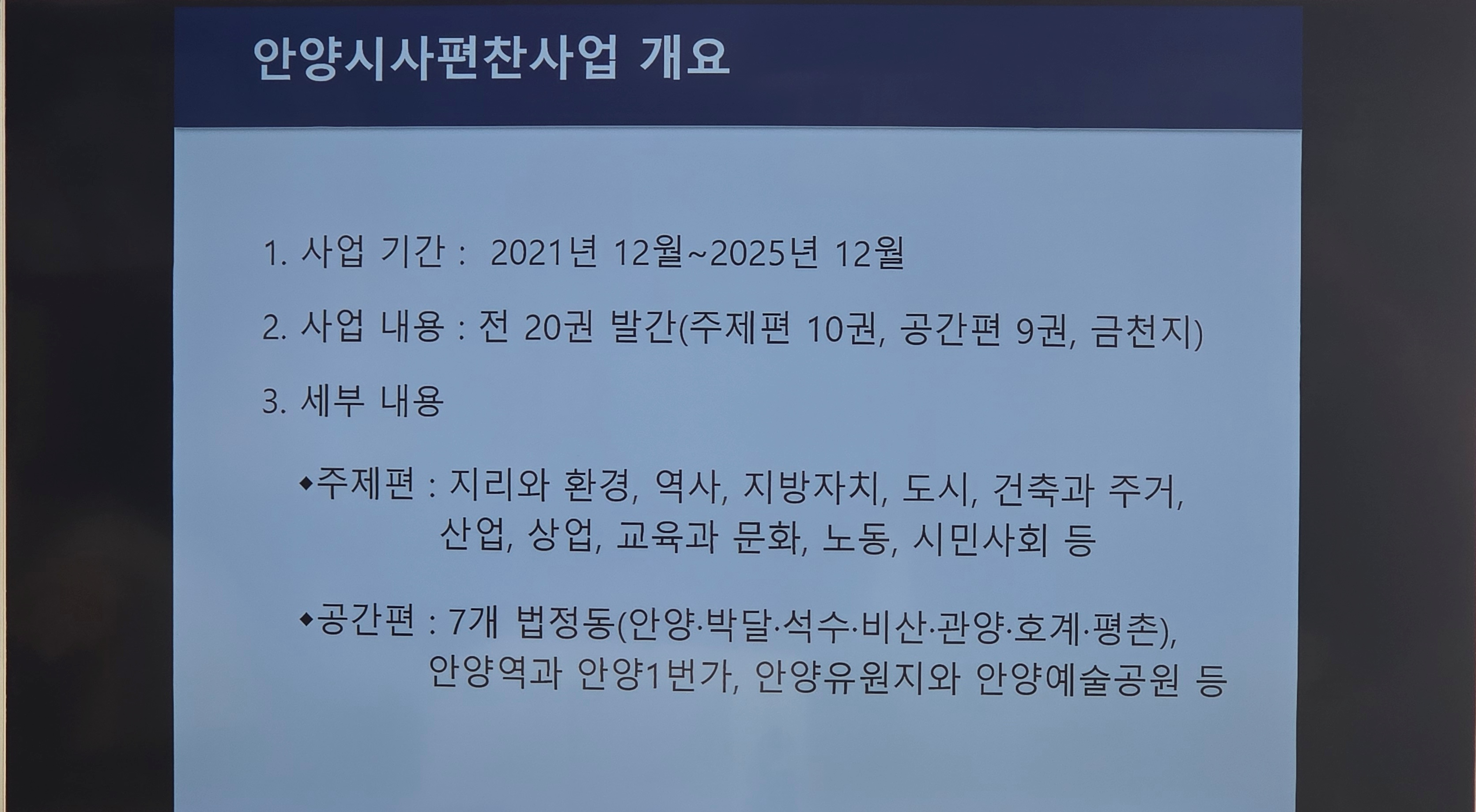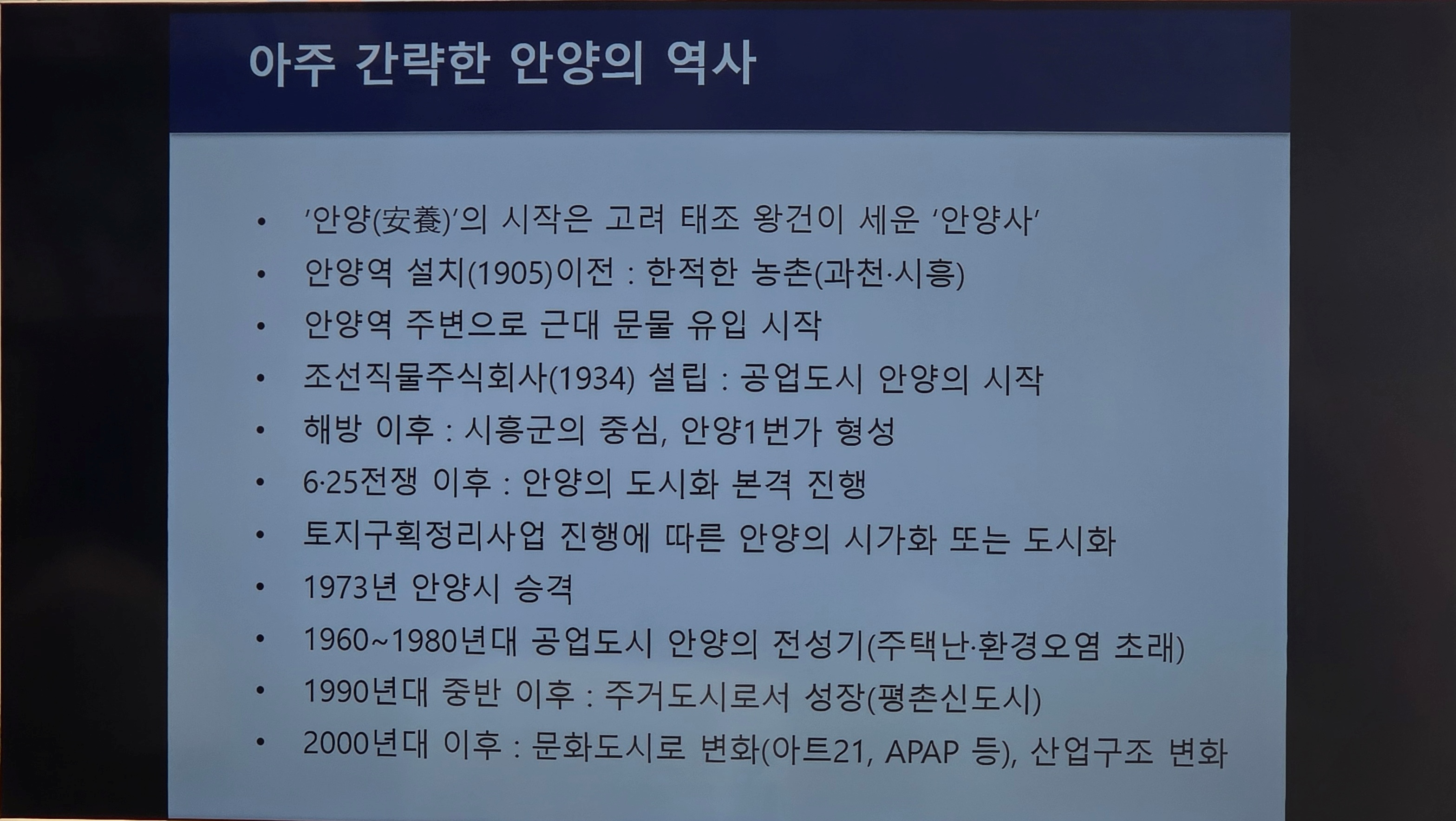 어제(2월21일) 안양 인덕원 도시공상가에서 제8회 도시건축세미나로 <안양시사 편찬 후일담> 프로그림이 진행됐습니다. 문화인류학을 전공하고, 시흥시사, 군포시사, 화성시사, 수원시사 등 지방지 편찬사업에 참여하고 2021년부터 4년 동안 방대한 안양의 역사를 정리하여 2025년 발행된 안양시사 편찬을 총괄기획한 김현미 연구원으로 부터 시사 편찬과정에 담겨있는 이야기를 들을수 있었습니다.