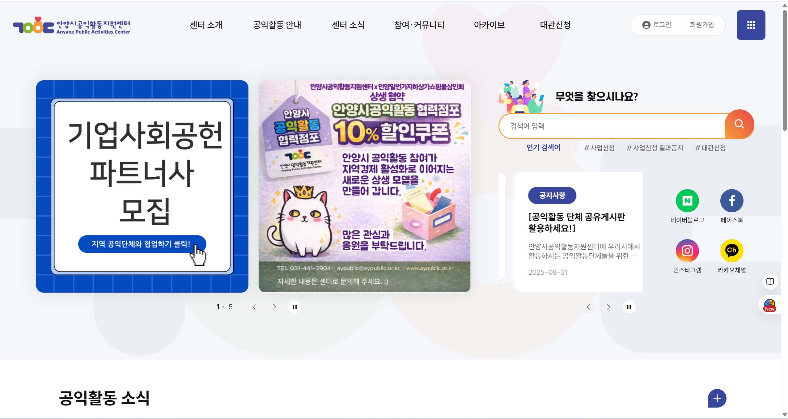 [안양시공익활동지원센터 홈페이지(aypublic.or.kr) 오픈