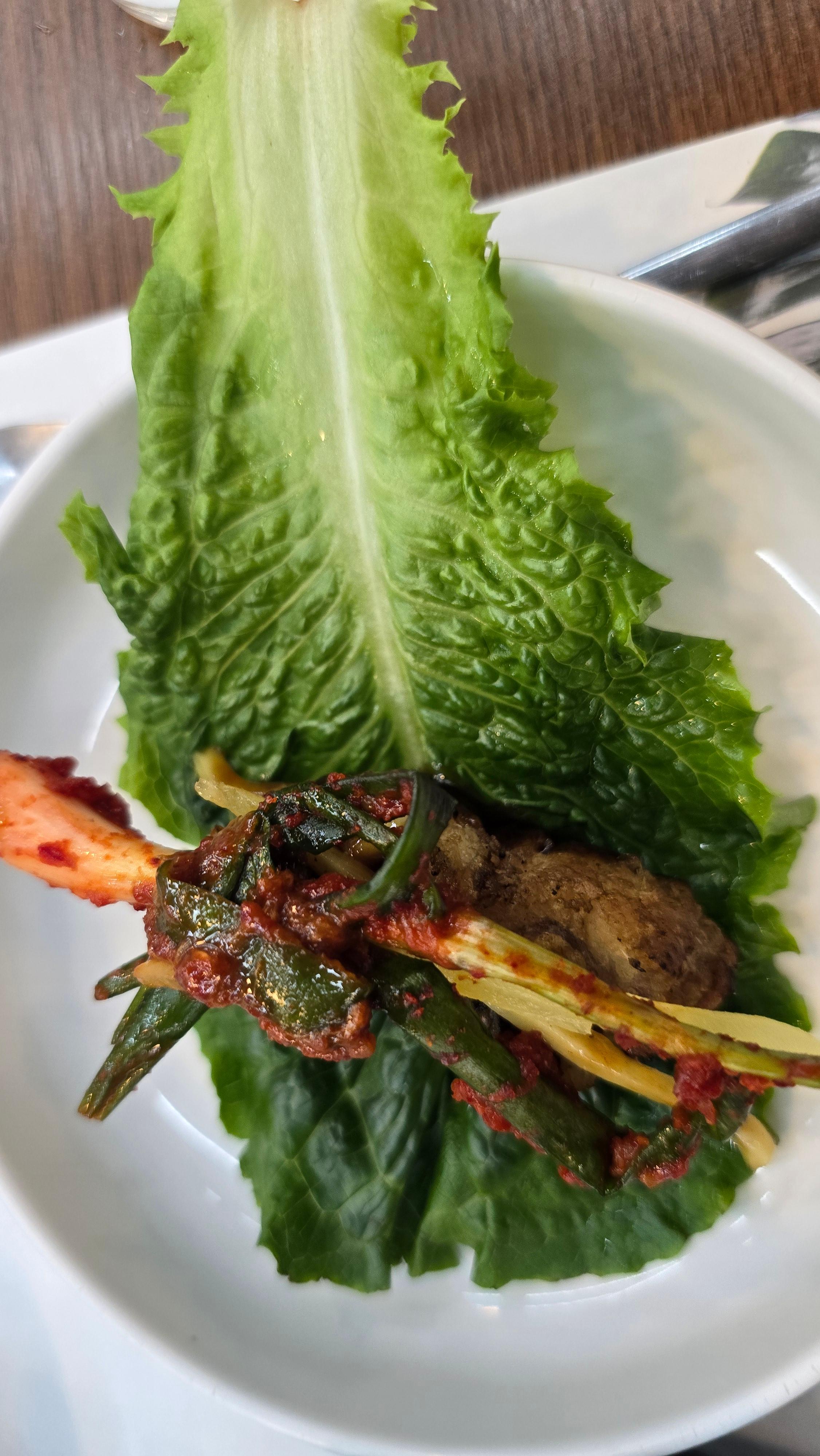 2026.04.23/ #민물장어 #안양 #명품장어 #안양일번가 #지읜 초대를 받아 간만에 몸보신을 하다.안양 남부시장 입구(구 정호해물탕 있던곳)에 자리한 명품민물장어집에 가다. 이집의 시그니처 메뉴는 숯불향에 구어먹는 매콤한맛의 양념 장어와 갈치젓갈을 얹어 쌈을 싸먹는 소금구이 장어다. 갈치젓갈을 얹어 밋보니 느끼함을 없애주고, 담백함이 더욱 풍미롭다.