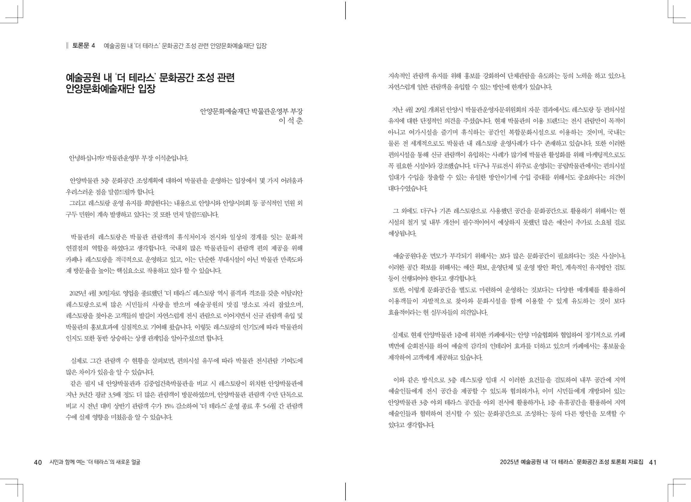 4. 예술공원 내 ‘더 테라스’ 문화공간 조성 관련 안양문화예술재단 입장 ……… 40