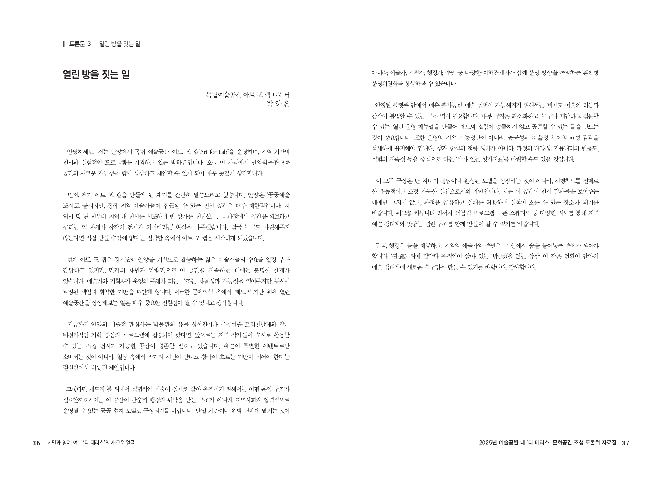- 박하은 독립예술공간 아트포랩 디렉터