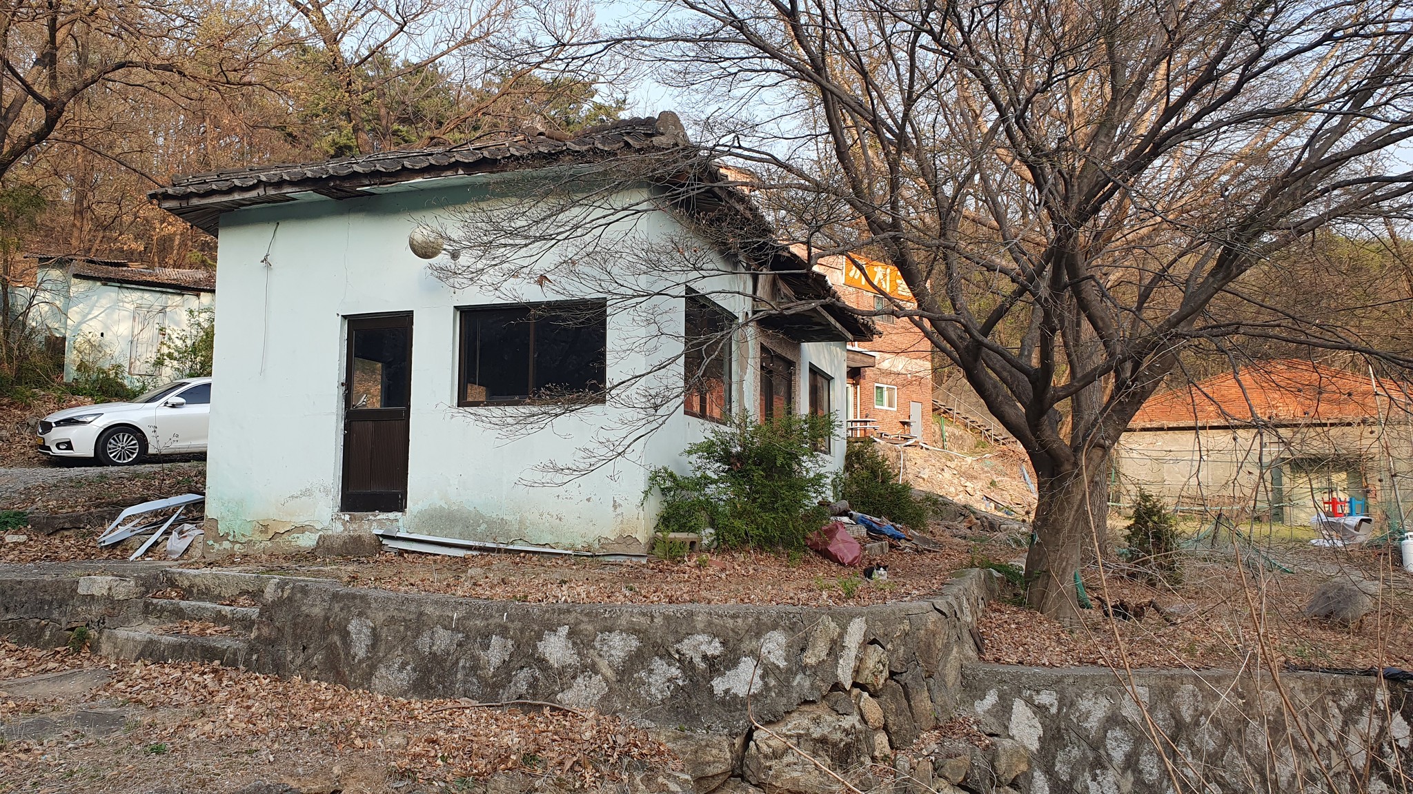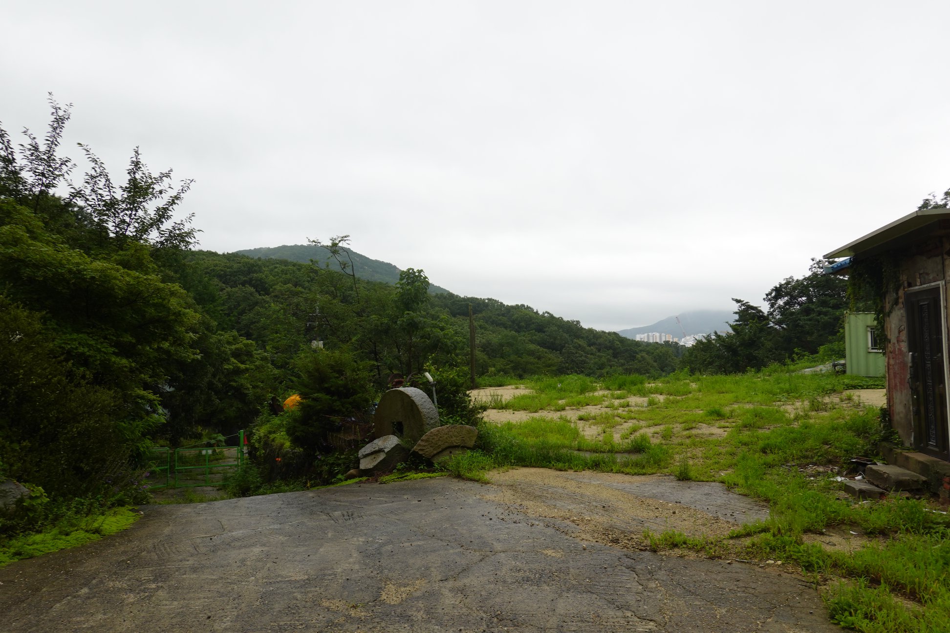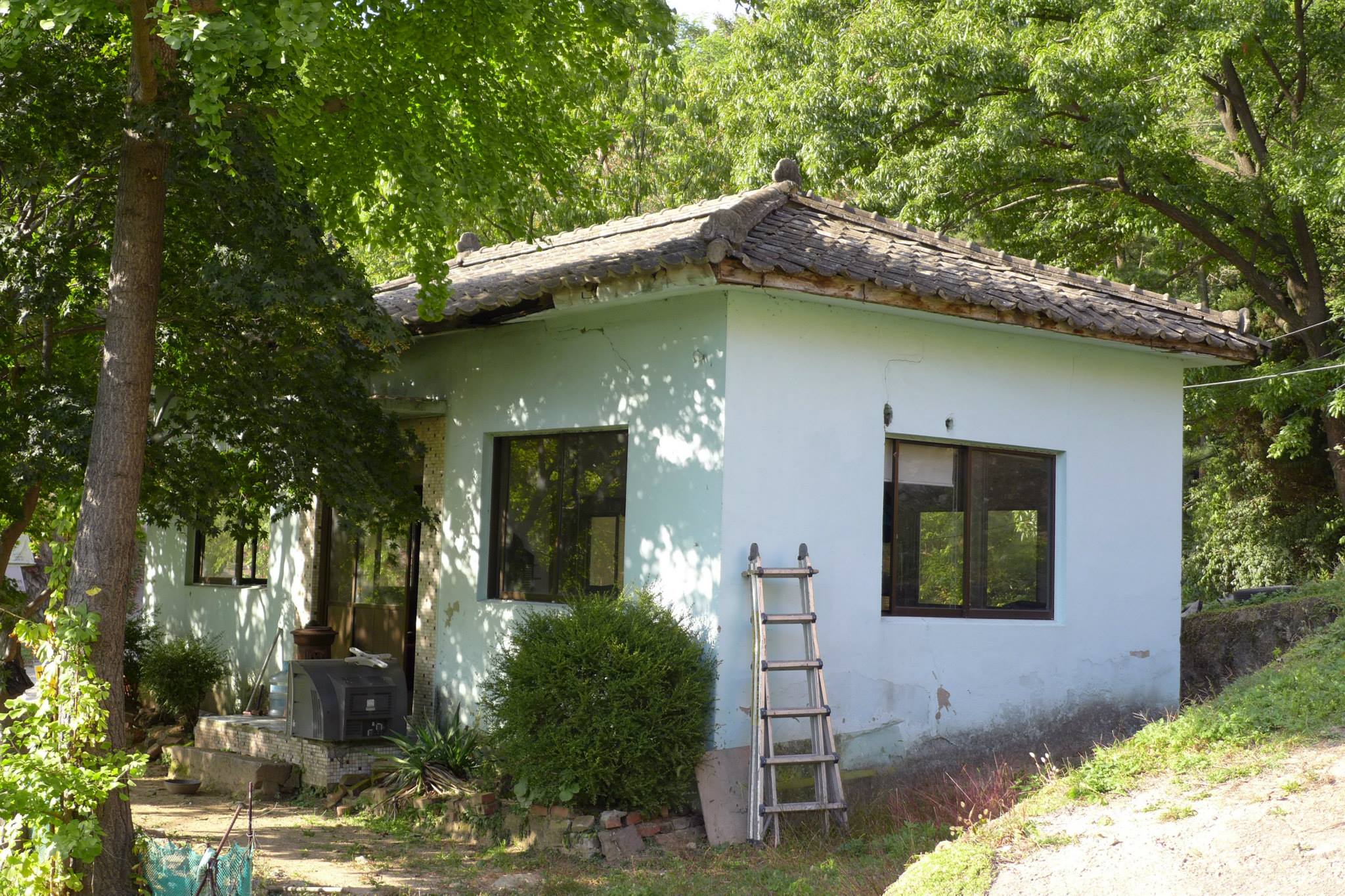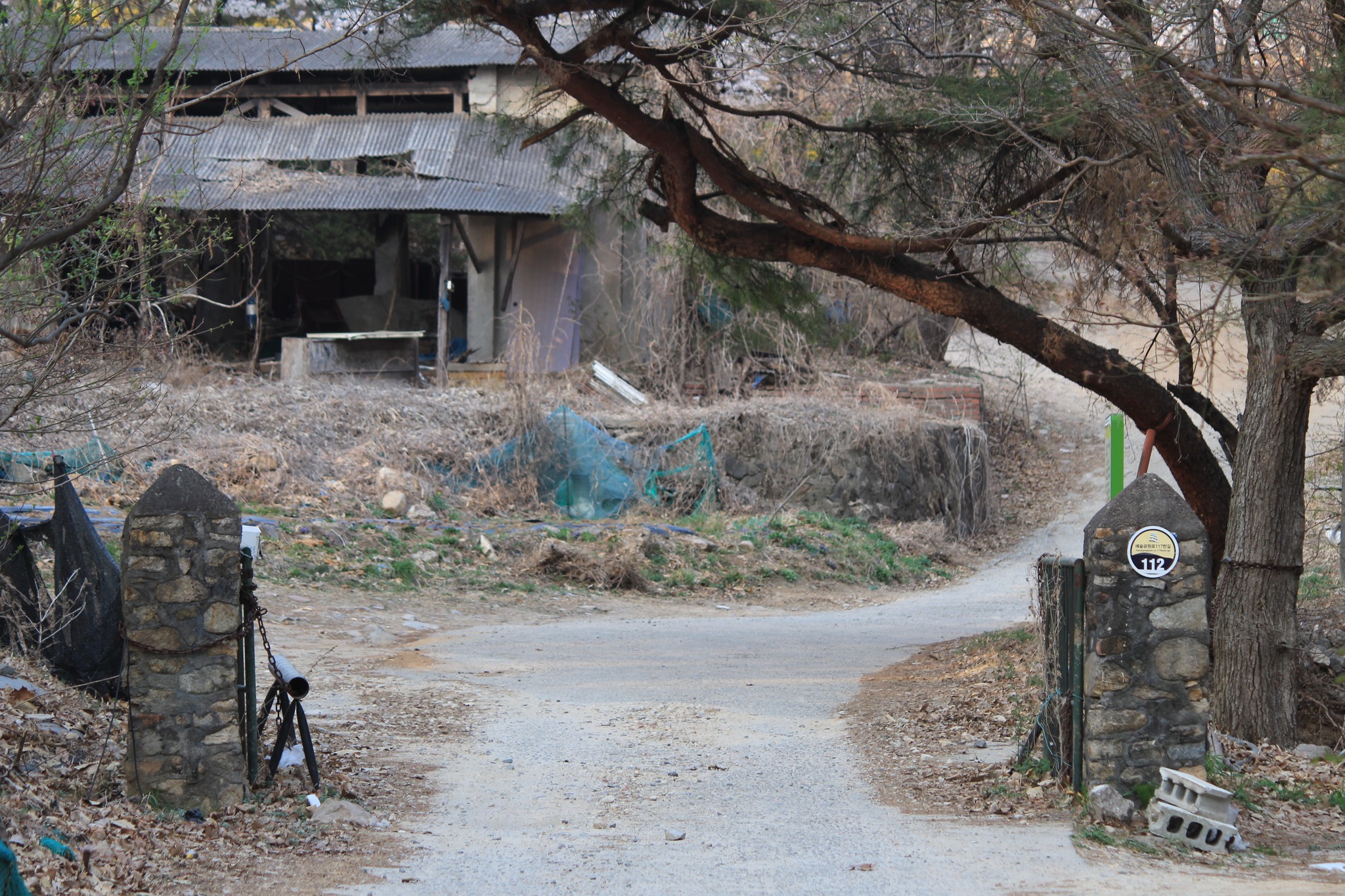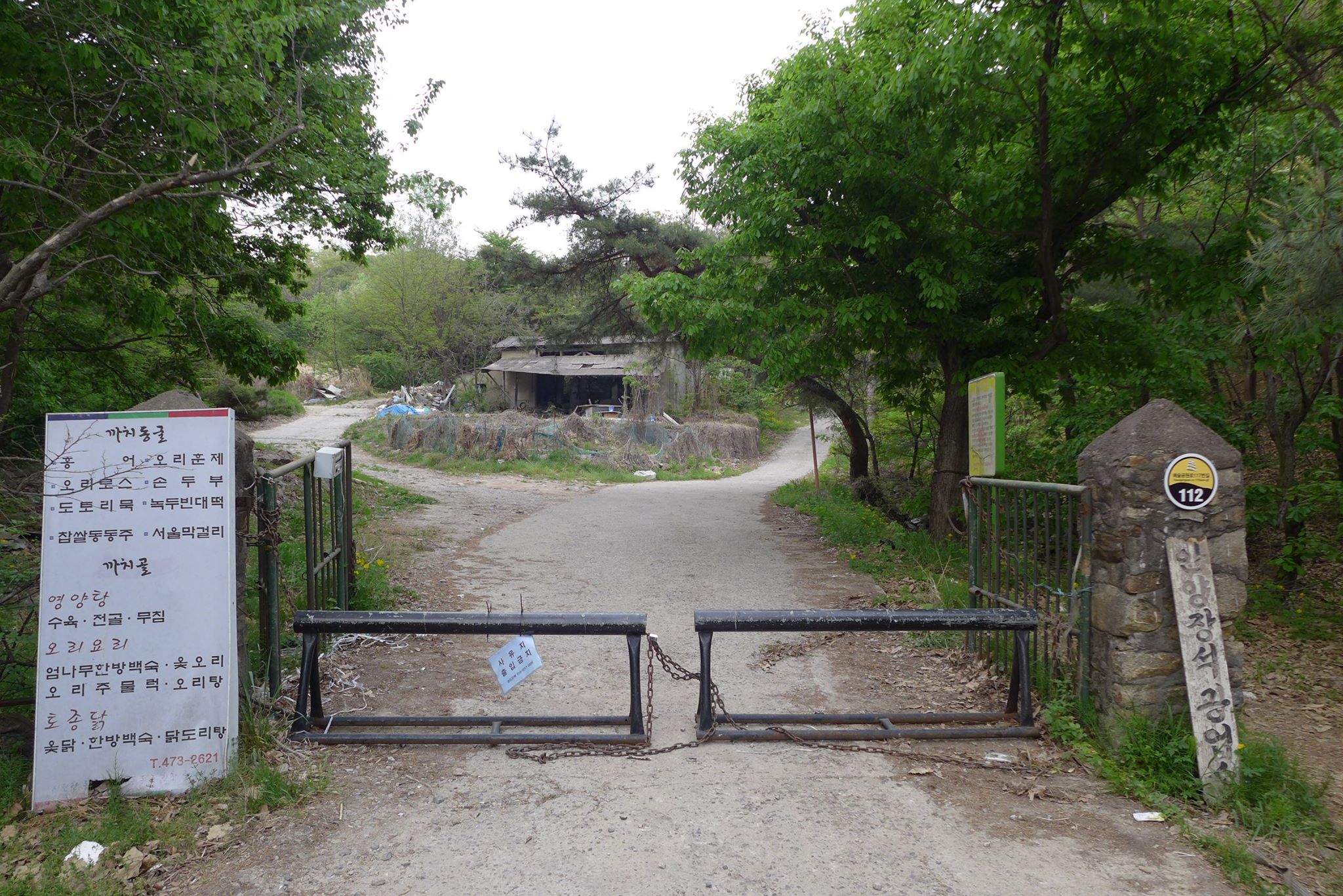 안양예술공원 입구 주차장 뒷쪽의 안양의집(보육원)에서 왼쪽으로 난 안양노인전문요양시설로 가는 길(까치골)로 접어 들어 새소리가 들리는 산길로 15분여를 올라가면 예술공원로 117번길 112(지번 석수1동 456-7)이라 적힌 녹슨 대문이 보인다.