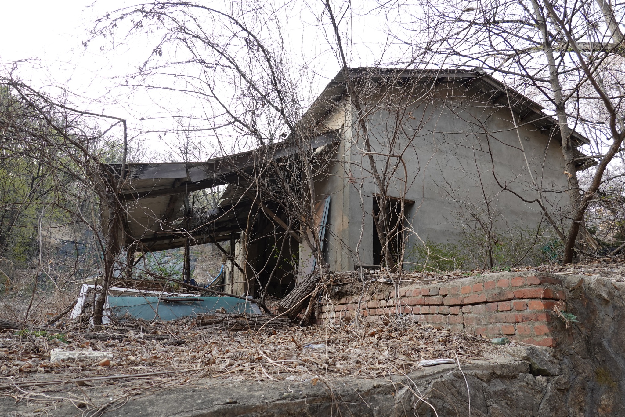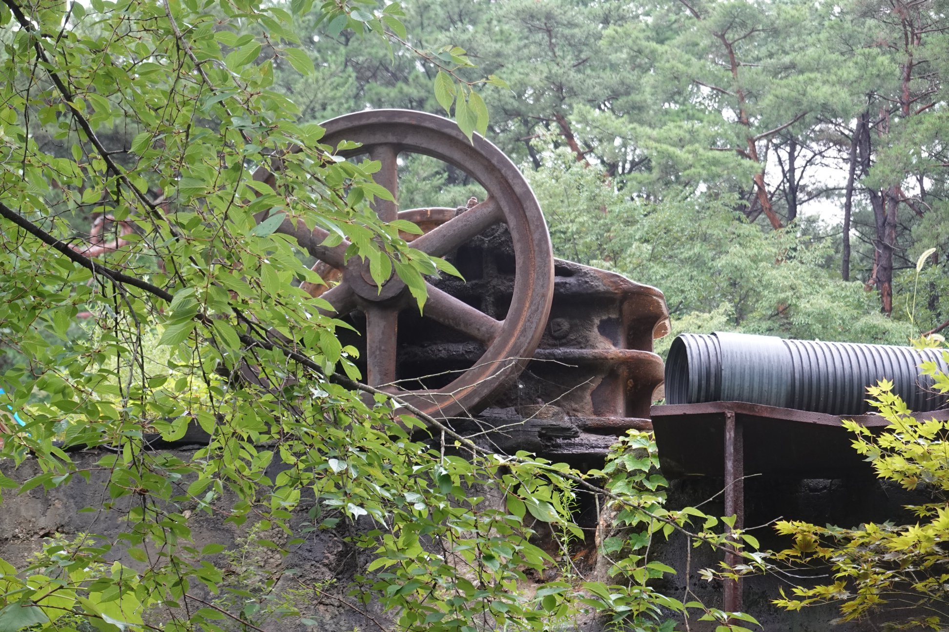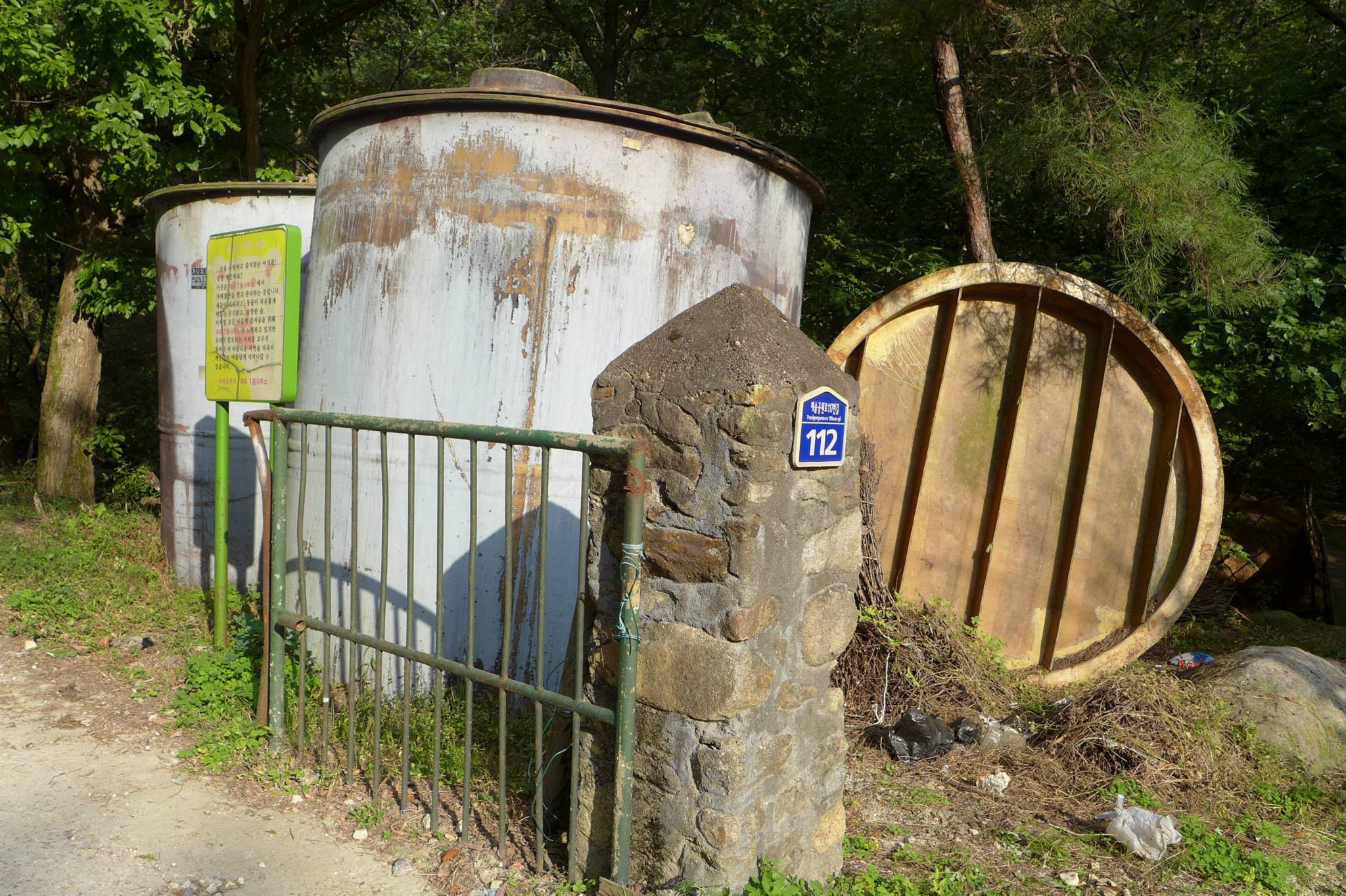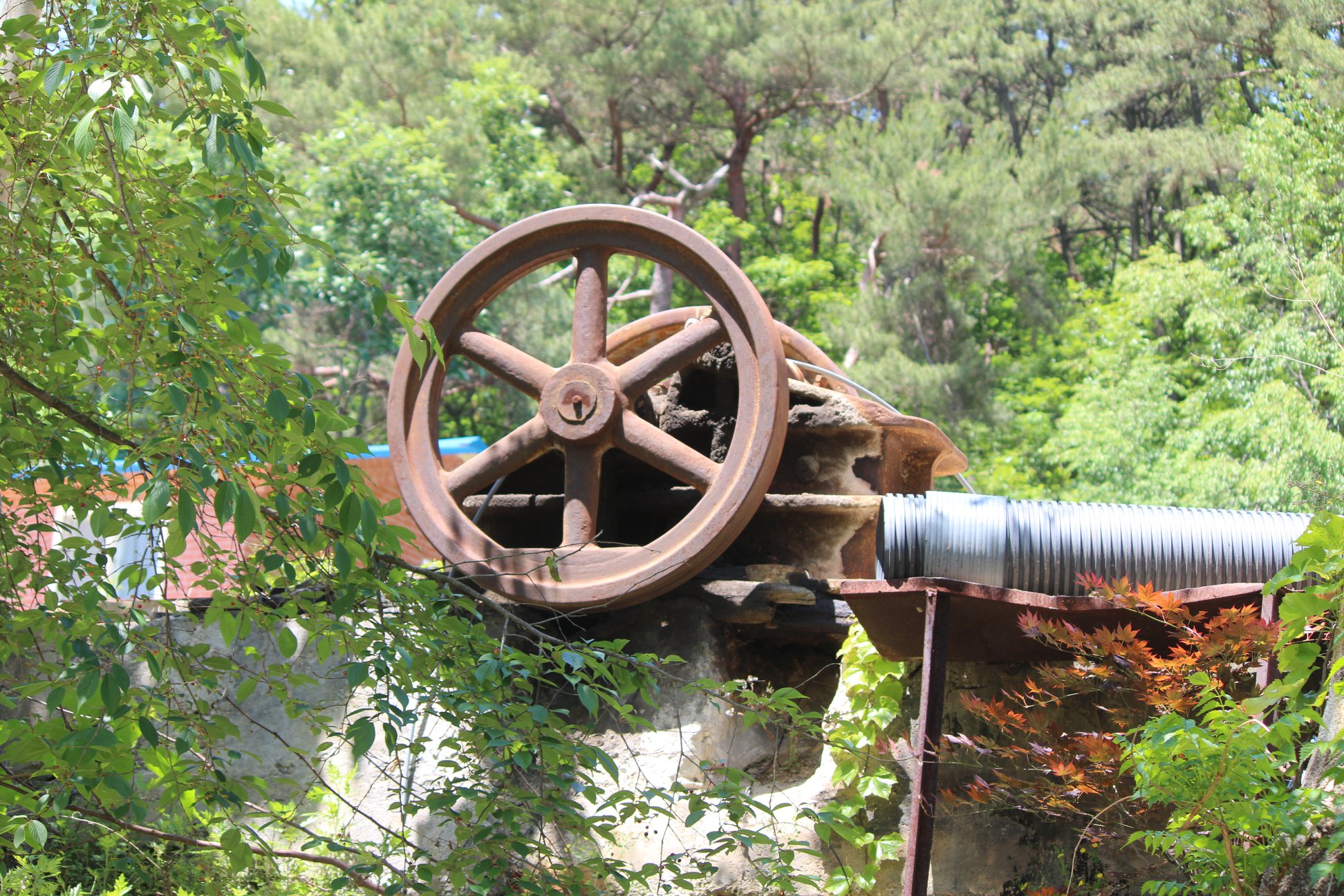활짝 열린 대문을 들어서 폐광 입구까지는 5분여 거리다. 올라가는 길 주변으로는 오래된 시설들이 눈에 들어온다. 물 탱크로 썼음직한 커다란 철구조물, 연료를 보관했을 아주 오래된 드럼통, 폐허가 된 집과 빨간벽돌의 옛 건물들 마치 시간이 그대로 정지된 듯한 풍경이다.