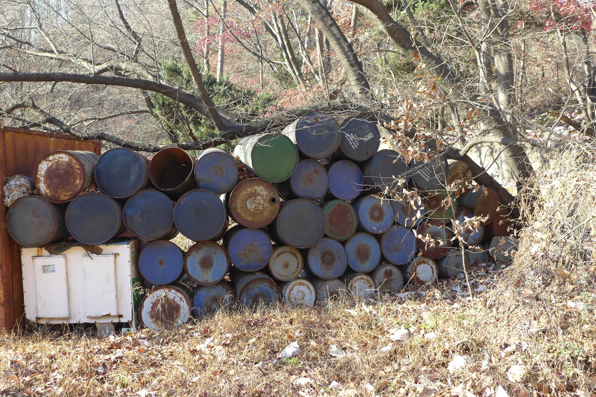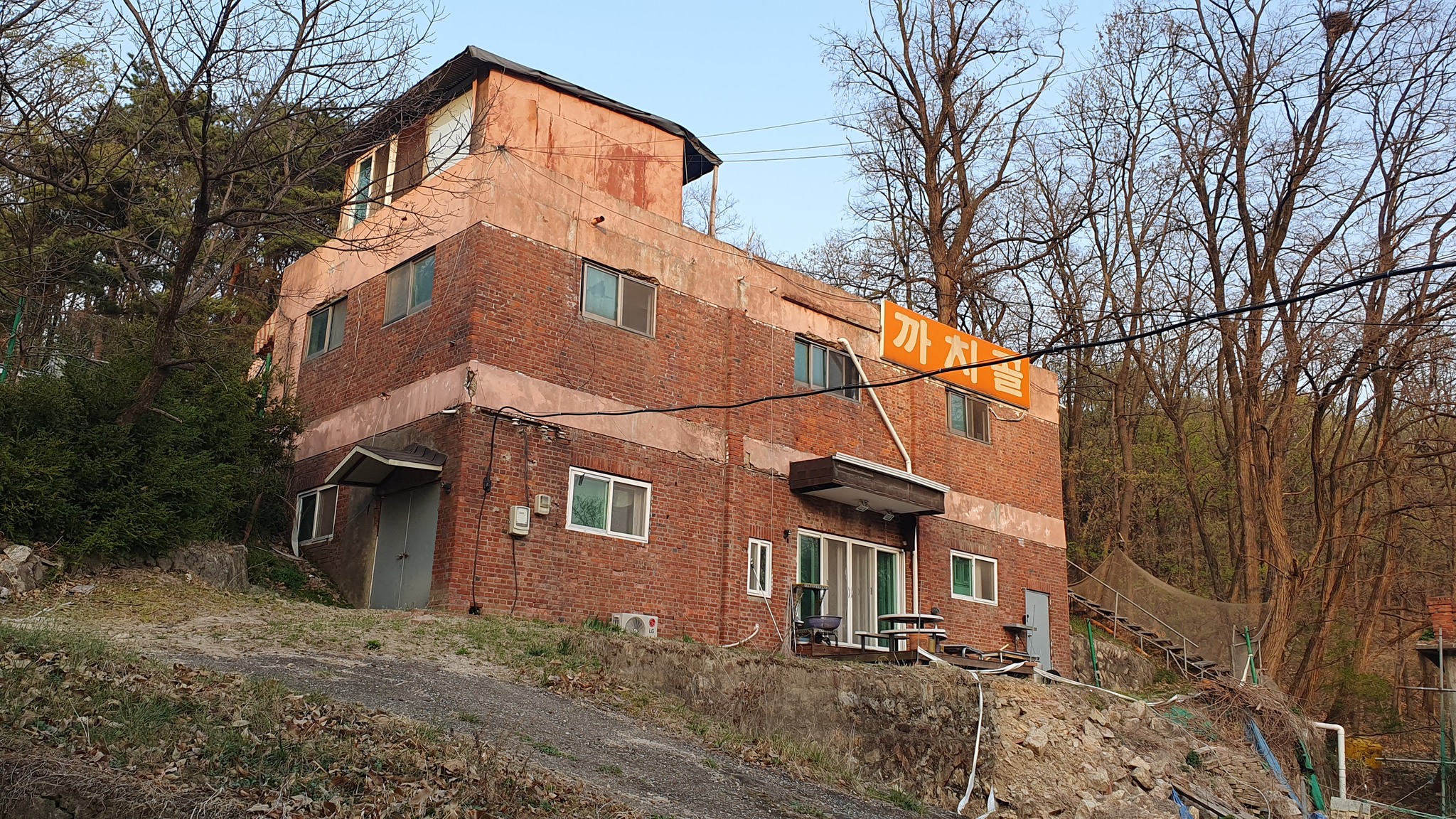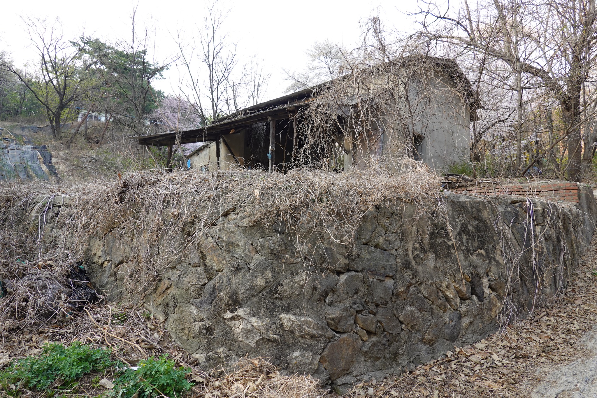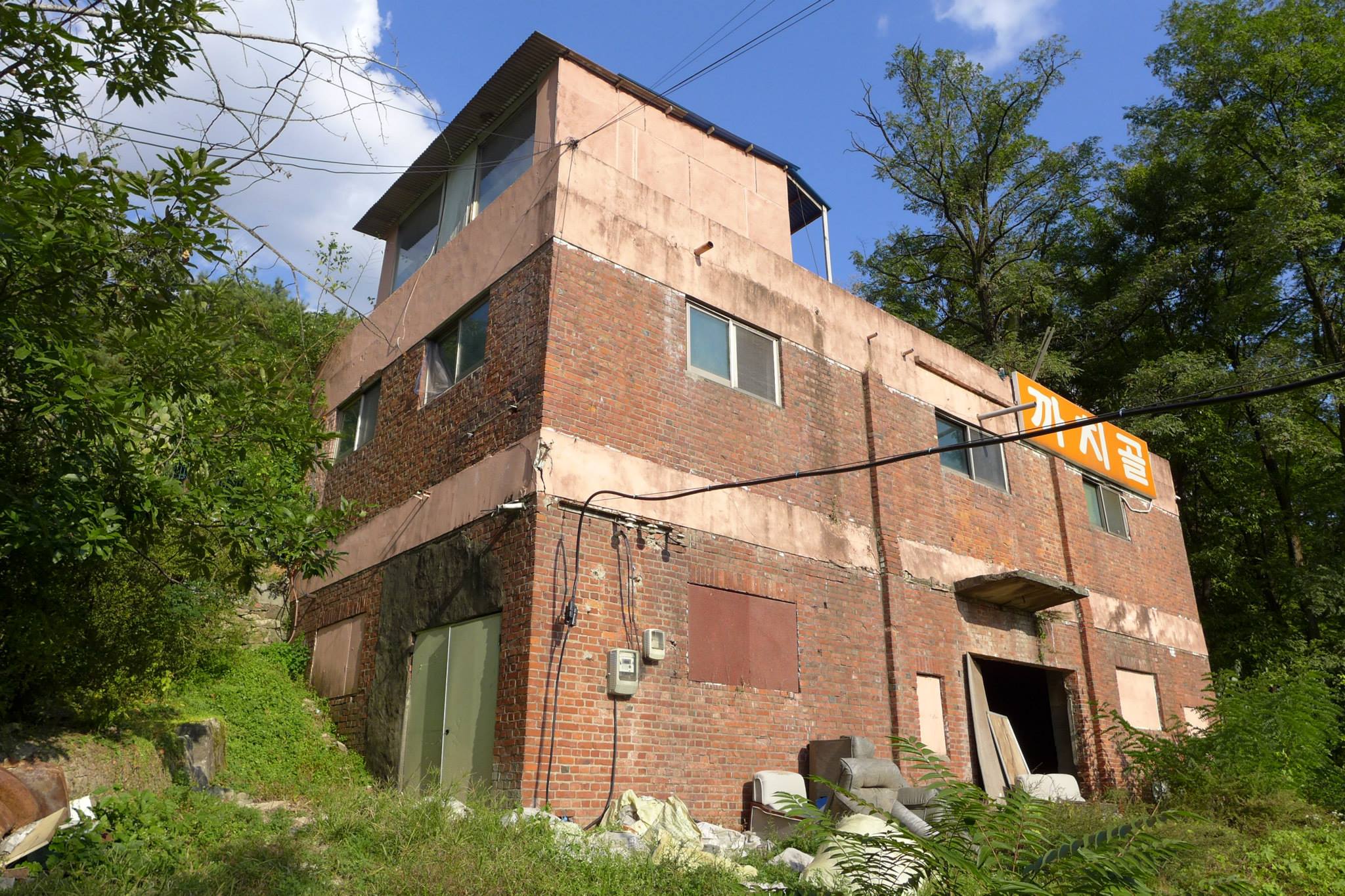 활짝 열린 대문을 들어서 폐광 입구까지는 5분여 거리다. 올라가는 길 주변으로는 오래된 시설들이 눈에 들어온다. 물 탱크로 썼음직한 커다란 철구조물, 연료를 보관했을 아주 오래된 드럼통, 폐허가 된 집과 빨간벽돌의 옛 건물들 마치 시간이 그대로 정지된 듯한 풍경이다.
