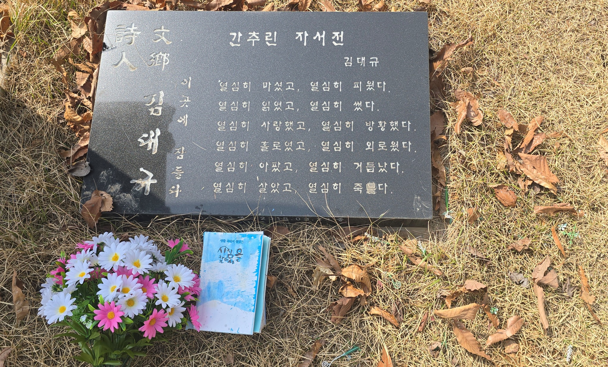 文鄕 김대규 시인은 1942년 4월 20일 안양시 양지동 946번지에서 태어나 2018년 3월 24일 타계하여 26일 화장을 통해 다시 흙으로 돌아가 시흥시 논곡동 선영에 묻히기 전까지 살아 생전 70여 평생을 태어나신 곳 안양 양지마을 마당이 넓은 집에서 살아왔다.