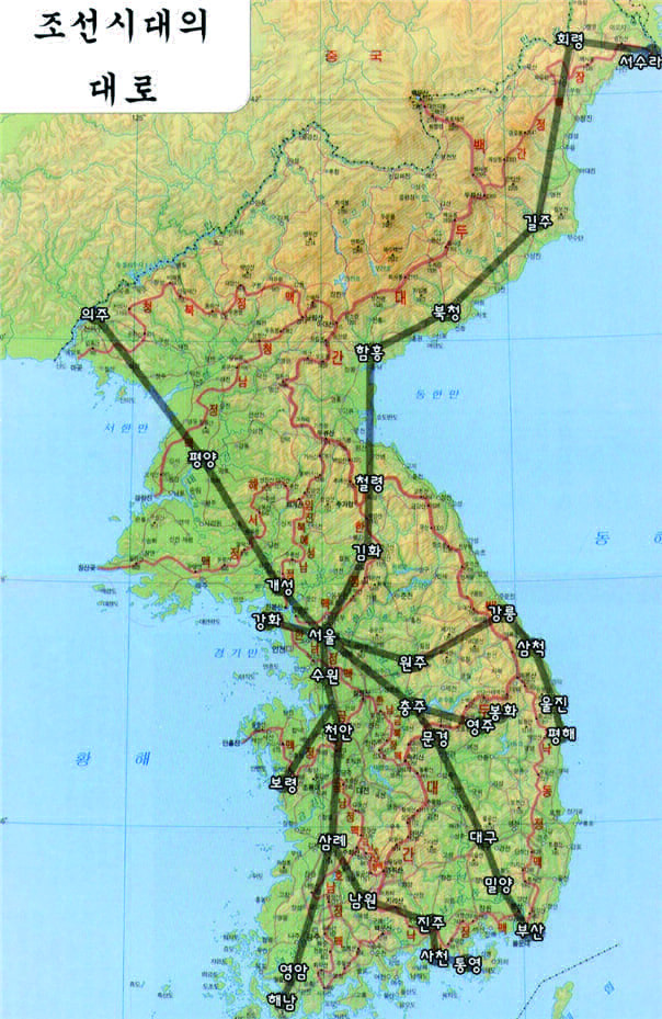 도성에서 지방의 삼남지방으로 연결되는 도로는 여러 갈래가 있었다. 대체적으로 숭례문(崇禮門)에서 출발, 이문동(里門洞)-주교(舟橋)-청파역(靑坡驛)-석우참(石隅站)[分岐]-와요현(瓦窯峴)-판전거리(飯廛巨里)-동작진(銅雀津)을 지나 과천방면을 거쳐 수원지역으로 연결되거나 석우참(石隅站)에서 분기(分岐)하여-둔지산(屯之山)-서빙고진(西氷庫津)-6리와 당현(堂峴)-만초천(蔓草川)-습진기(習陣基)-노량진(露梁津)을 통하여 시흥방면을 지나 수원지역에서 합류하여 삼남지방으로 가는 길이 하나이고 또 하나는 흥인문(興仁門)을 출발, 동묘(東廟)에서 분기하여 영도교(永渡橋)-왕십리(旺深里)-차현(車峴)-전곶(箭串) 제반교(濟礬橋)를 지나 신천, 송파를 거쳐 충청 일부를 통과하여 동래로로 연결되는 길이다. 이 동래로는 또 한강진(漢江津)을 지나 신원점(新院店)-현천점(縣川店)-판교점(板橋店)-험천(險川)과 용인을 거쳐 충청지방 일부를 통과하여 동래로로 연결되는 도로를 들 수 있다.