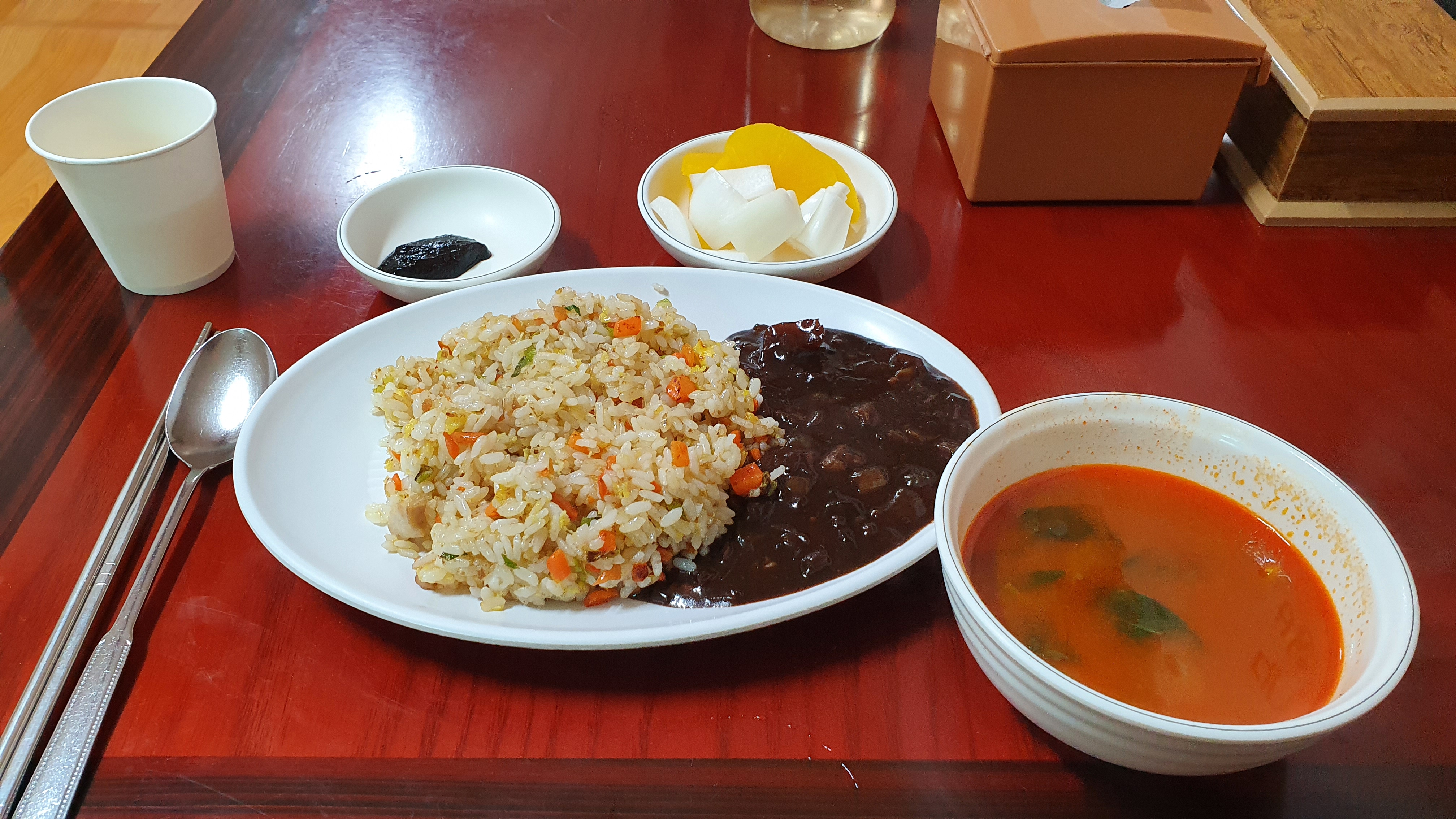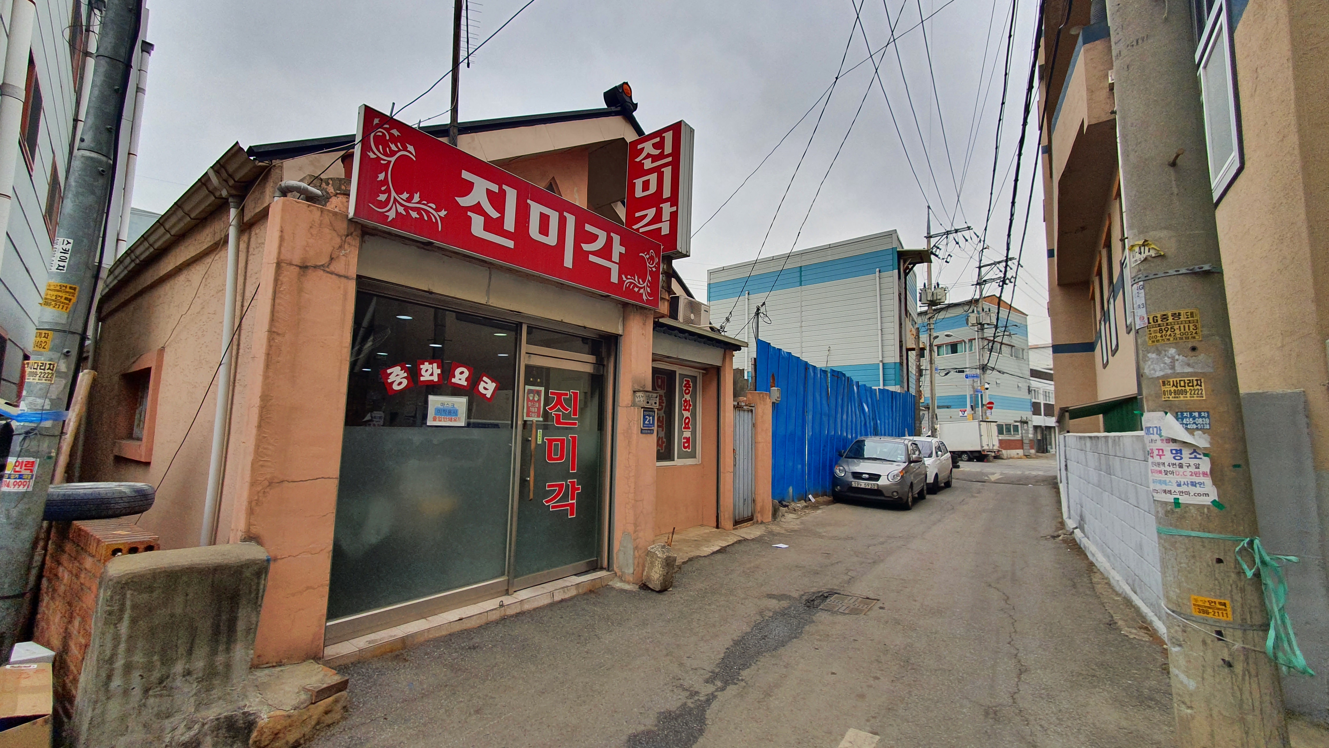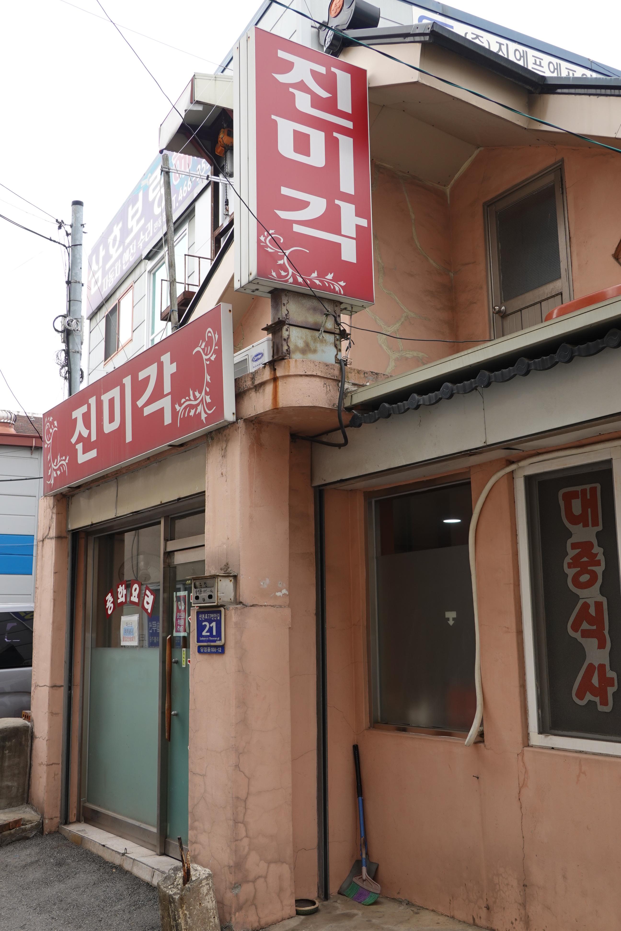 #군포 #동네 #골목 #진미각 #당정동 #중국집 #노포 #40년. 군포 당정동 공장지대 골목에 공력이 제법 있는 노포급 중국집이 있다는 소문에 방문. 점심 시간 무렵이라 1층은 손님이 꽉차 꼬불꼬불 난간을 타고 올라간 2층 골방(단체석 분위기)에서 나홀로 식사. 연세 지긋한 노부부께서 운영하시는데 홀은 남편이, 주방(웍)은 아내가 담당한다. 긴 역사를 앞세운 화려함은 찾아볼 수 없다. 하지만 소박함과 정겨움이 느껴진다. 메뉴는 요리는 없고 짜장면, 짬뽕, 간짜장, 볶음밥, 짬뽕밥, 잡채밥 등 식사 위주다. 가장 인기 있는 메뉴는 짬뽕이다. 온갖 야채와 해산물, 버섯 등이 어우러져 특히 국물맛이 일품이며 탱글탱글한 면발이 국물과 기가 막힌 조화를 이룬다는데 처음 찾아간 이날에는 옛 날볶음밥을 주문했다. 계란후라이도 없고, 양배추와 캐찹도 없고, 특별함도 없지만 밥의 볶음 정도가 꼬실꼬실하다. 짬뽕 국물보다는계란국물이었으면 좋았을껄 하는아쉬움. 공장 지대 내 좁은 골목에 위치해 있어 찾아가기가 쉽지 않다. 별도의 주차 공간이 없어 차를 가져가지 않는 편이 좋지만, 대중교통이 닿는 곳도 아니다. 이런 악조건에도 불구하고 사람들의 발길이 끊이지 않는다. 왜일까? 포톨사이트에서 이 집에 대한 검색을 해보면 의외로 리뷰와 칭찬의 글이 제법 많다. 그렇다고 큰 기대는 금물. 큰 기대를 하고 갔다가 실망할 수 있다./ 영업시간 평일 : 11:00 ~ 18:30 (Break Time 14:00~16:30) 토요일 : 11:00 ~14:00 일요일 : 휴무 전화: 031-453-4037 주소: 군포시 산본로77번안길 21