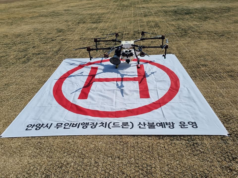 안양시가 무인항공기인 드론을 띄워 산불감시에 나서고 있다.