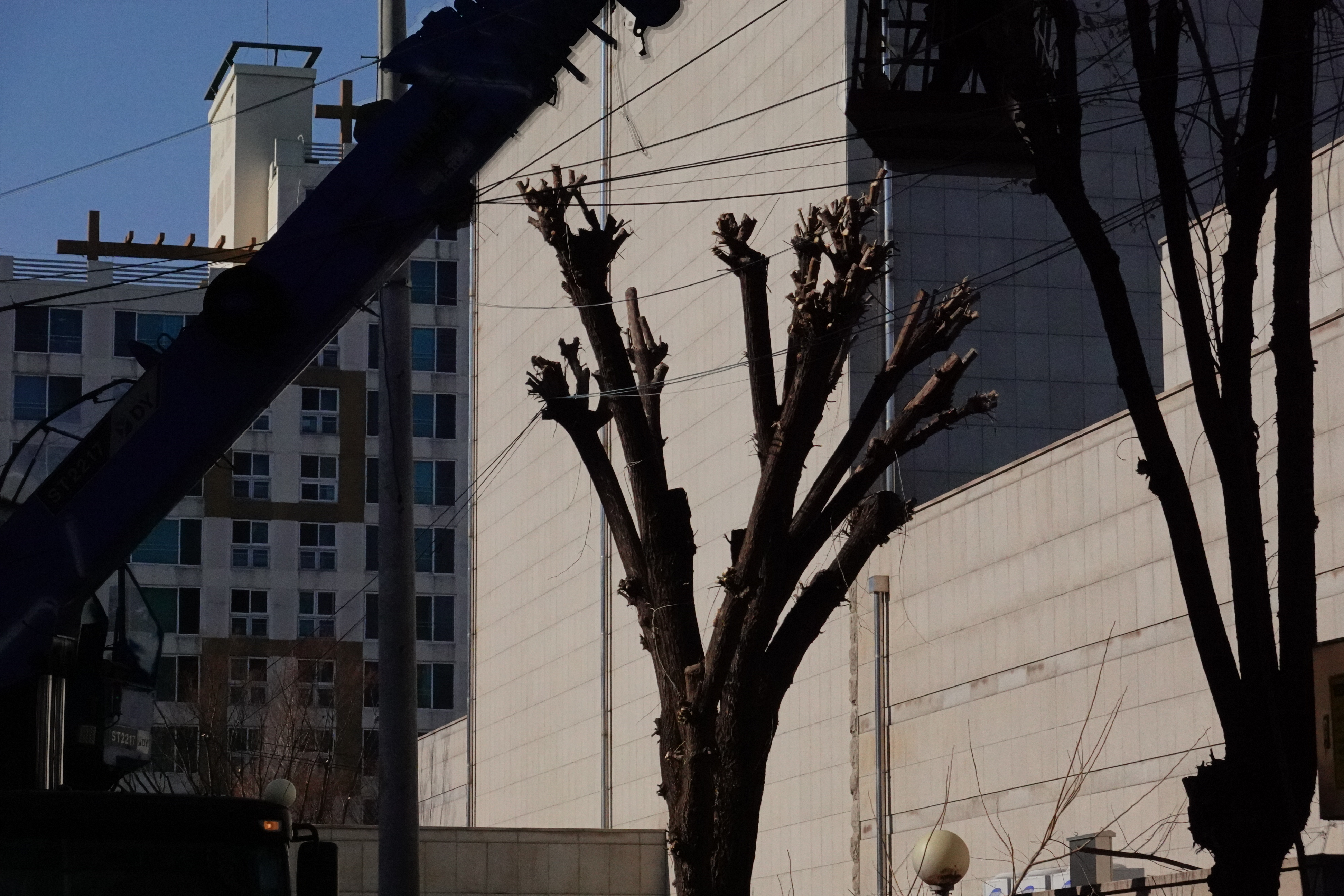 그럼에도 매년 3월만 되면 도시 곳곳에서 기다렸다는 듯이 가로수의 가지를 과하게 치는 모습을 볼 수 있습니다. 여러 가지 이유가 있겠지만 비용과 노동력 측면이 클 것 같습니다. 바리캉으로 이발을 하듯 깡그리 밀어버리는 방식의 비해 나무마다 알맞은 수형에 맞춰 외관을 다듬는 것은 시간과 품이 많이 들어갑니다.