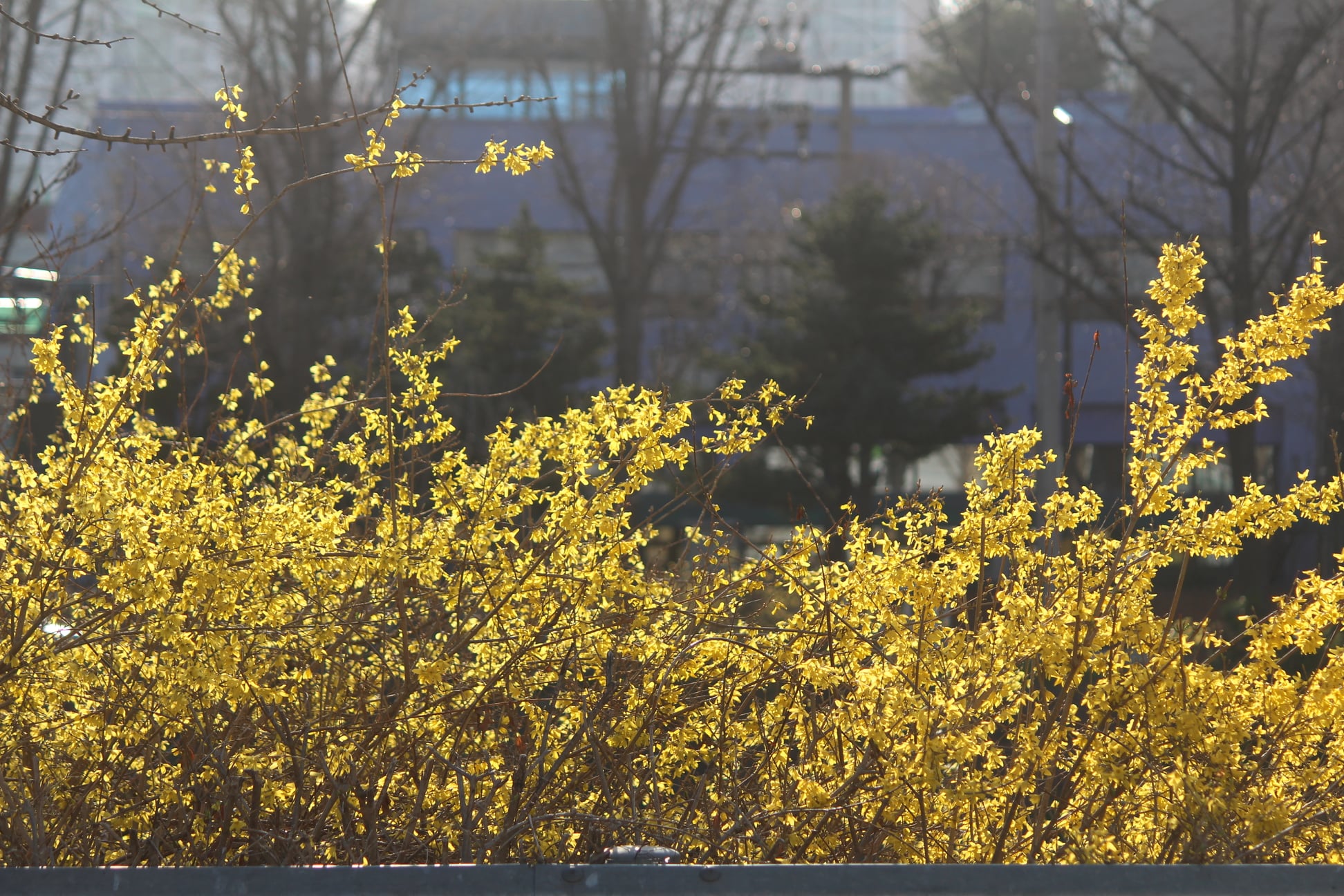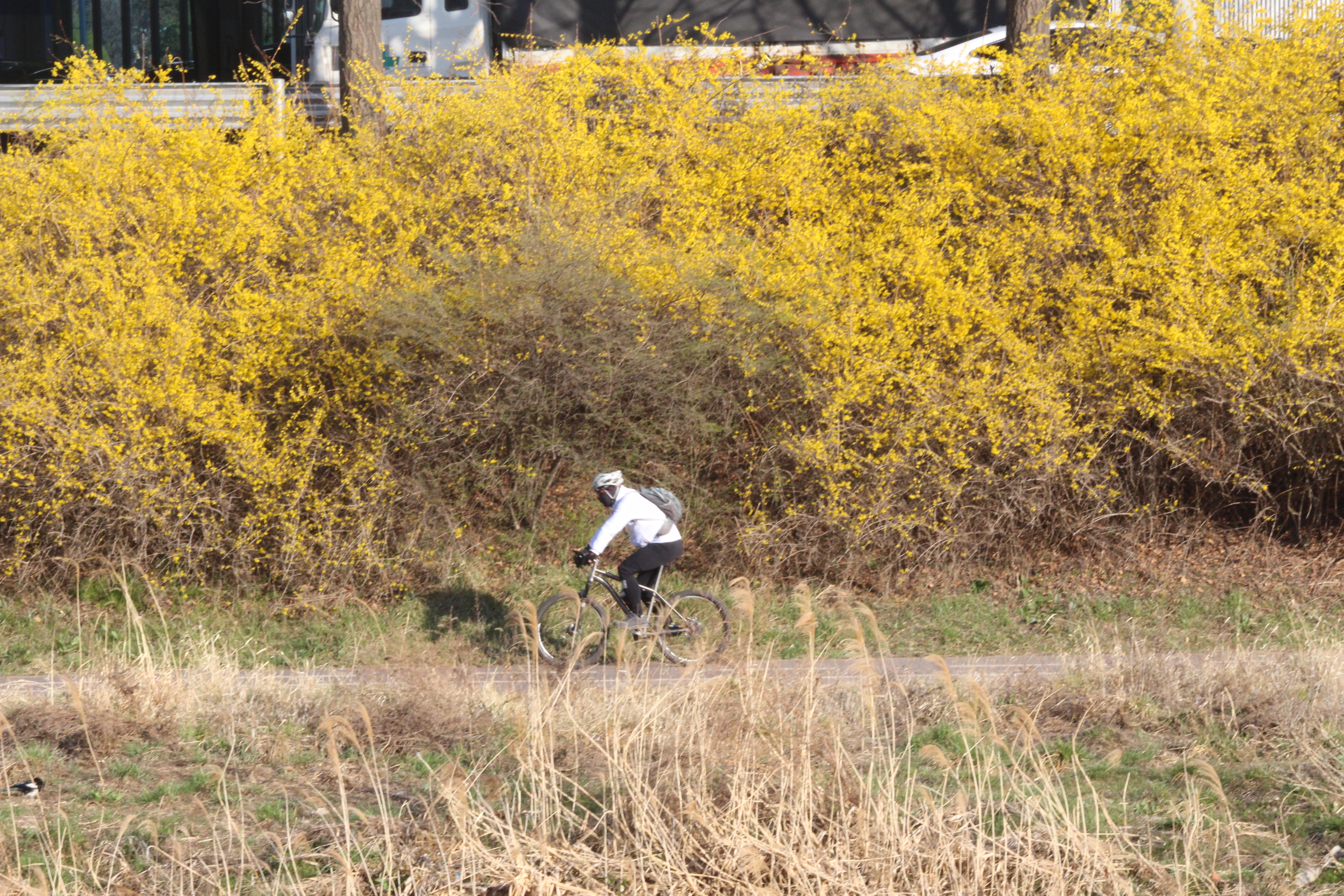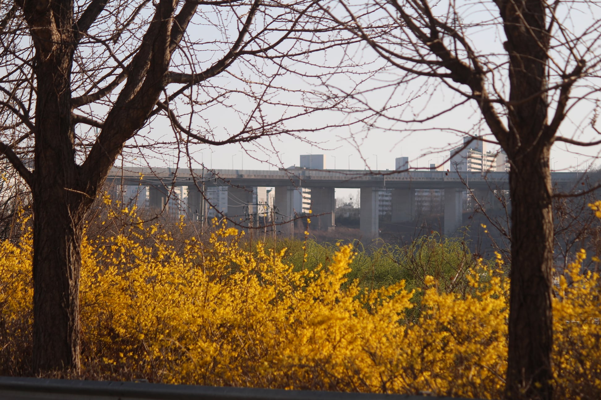 안양천의 숨은 명물. 은백의 목련과 분홍빛 진달래가 필 무렵이 되면 노랑 개나리가 화려함을 더해주지요. 매년 봄이 오면 안양천 명학대교에서 덕천교(쌍개울옆) 구간에 노랑 개나리가 만발하는데 비슷한 시점에 피어나 축제화 되고 있는 벚꽃(충훈벚꽃축제)과 진달래(효성 진달래동산 개방행사)에 가려져 정작 시민들이 이 멋진 풍광을 놓치고 있지만 사실 아는 이들만 찾아와 여유롭게 즐겼으면 하는 마음이지요.