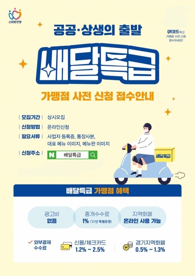 안양시는 경기도 공공배달앱 ‘배달특급(5월 정식오픈)의 정식 오픈을 앞두고 가맹점 사전신청을 받는다.