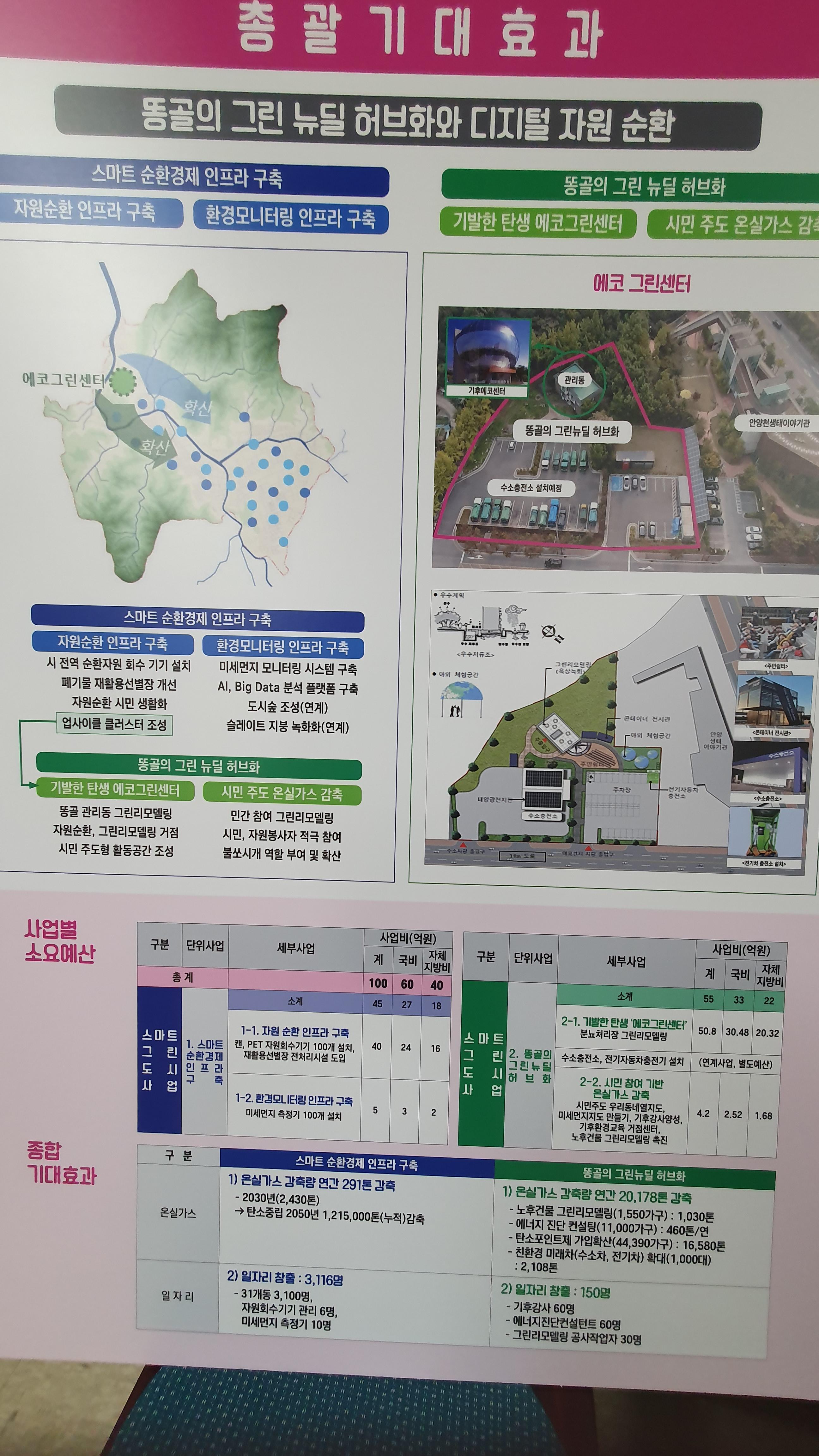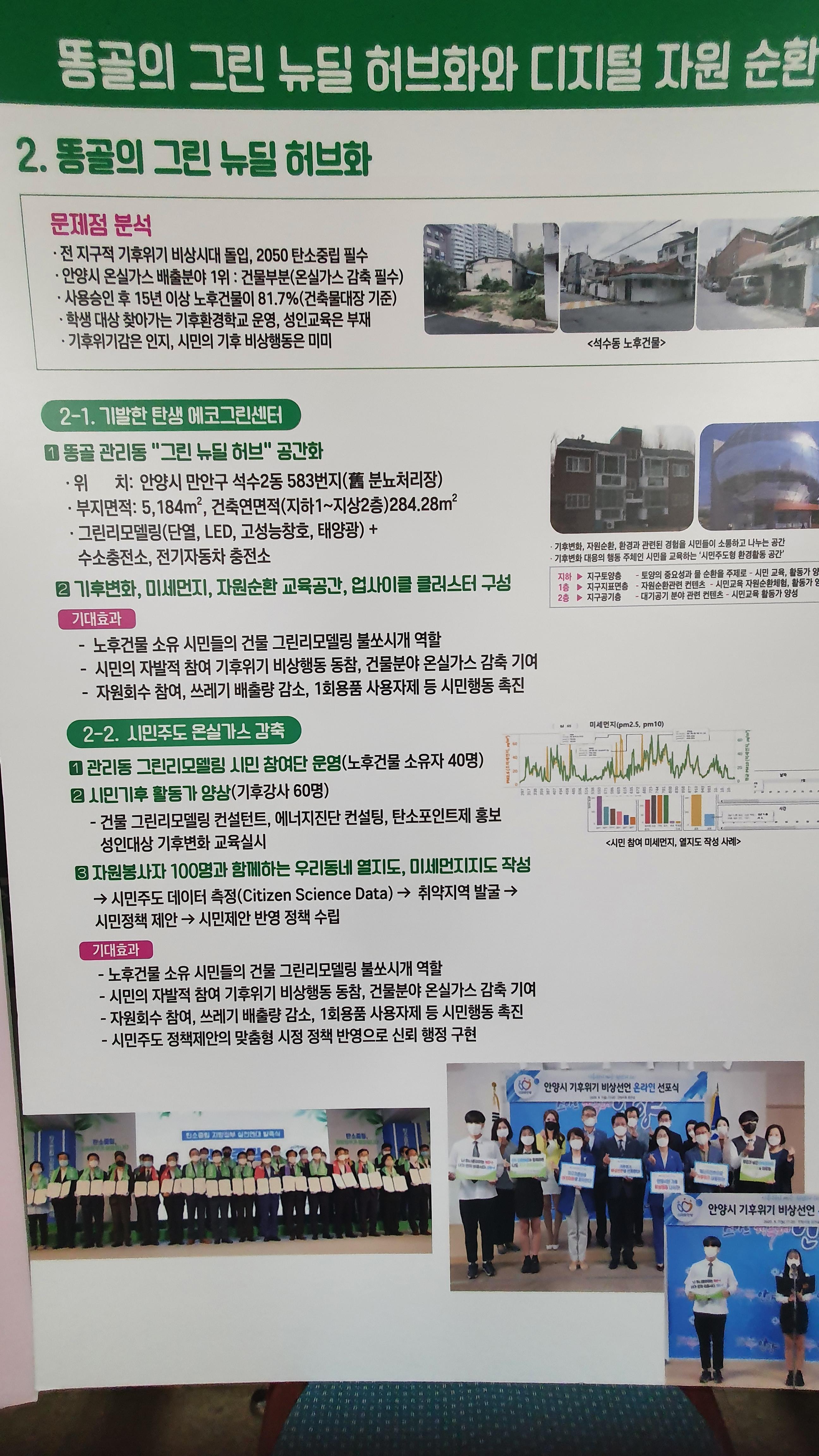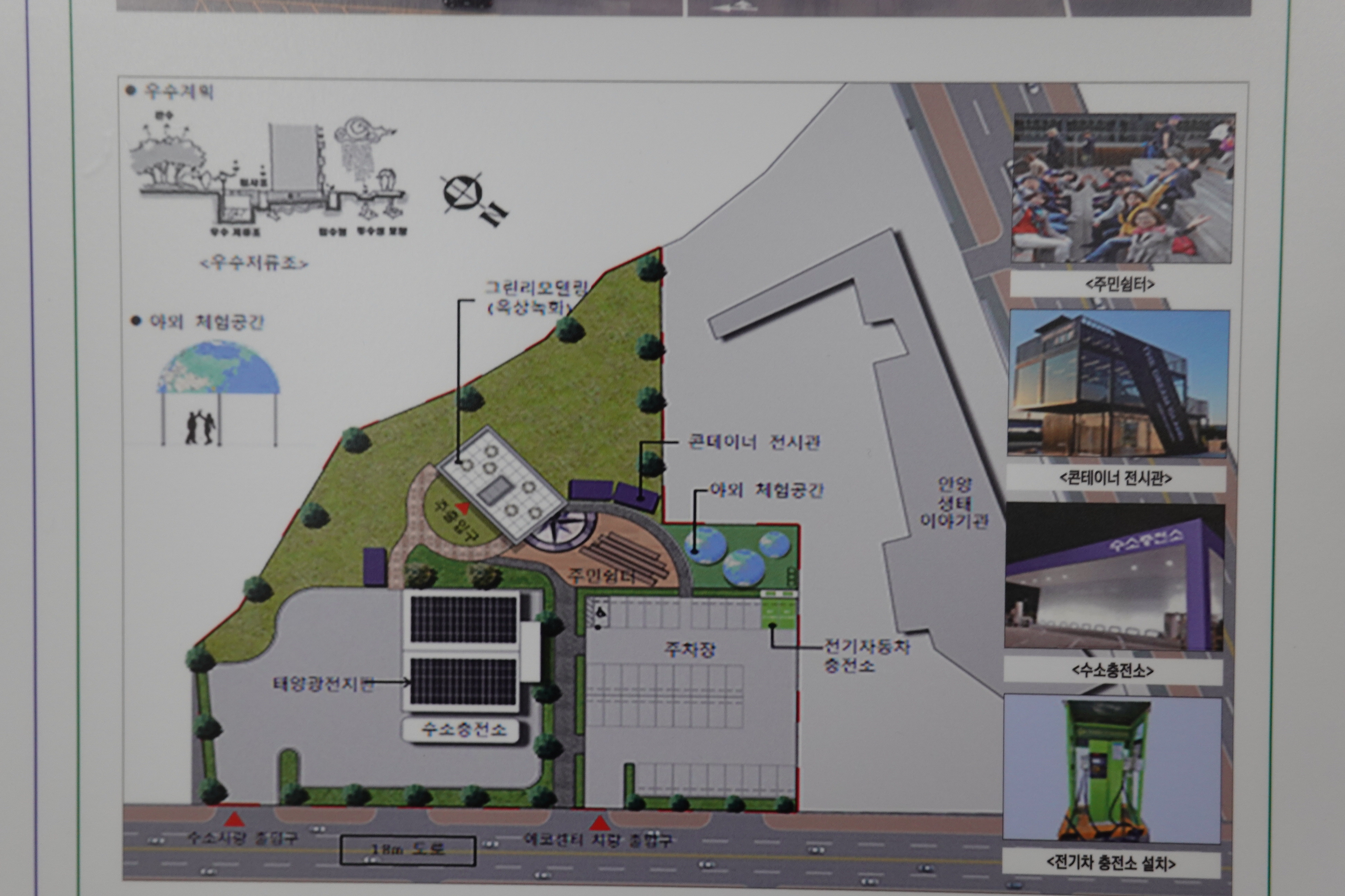 시의 스마트 그린도시 사업은 석수동의 구 분뇨처리장(구 지명 똥골)을 리모델링, 그린 뉴딜 허브공간을 조성하는 것을 비롯해 △ 안양시 전역 무인 순환 자원회수기기 100대 설치 △ 재활용선별장 시설개선 △ 주택가 미세먼지 측정시스템 설치 등 도시의 녹색전환을 위한 그린 인프라 구축이 핵심이다.