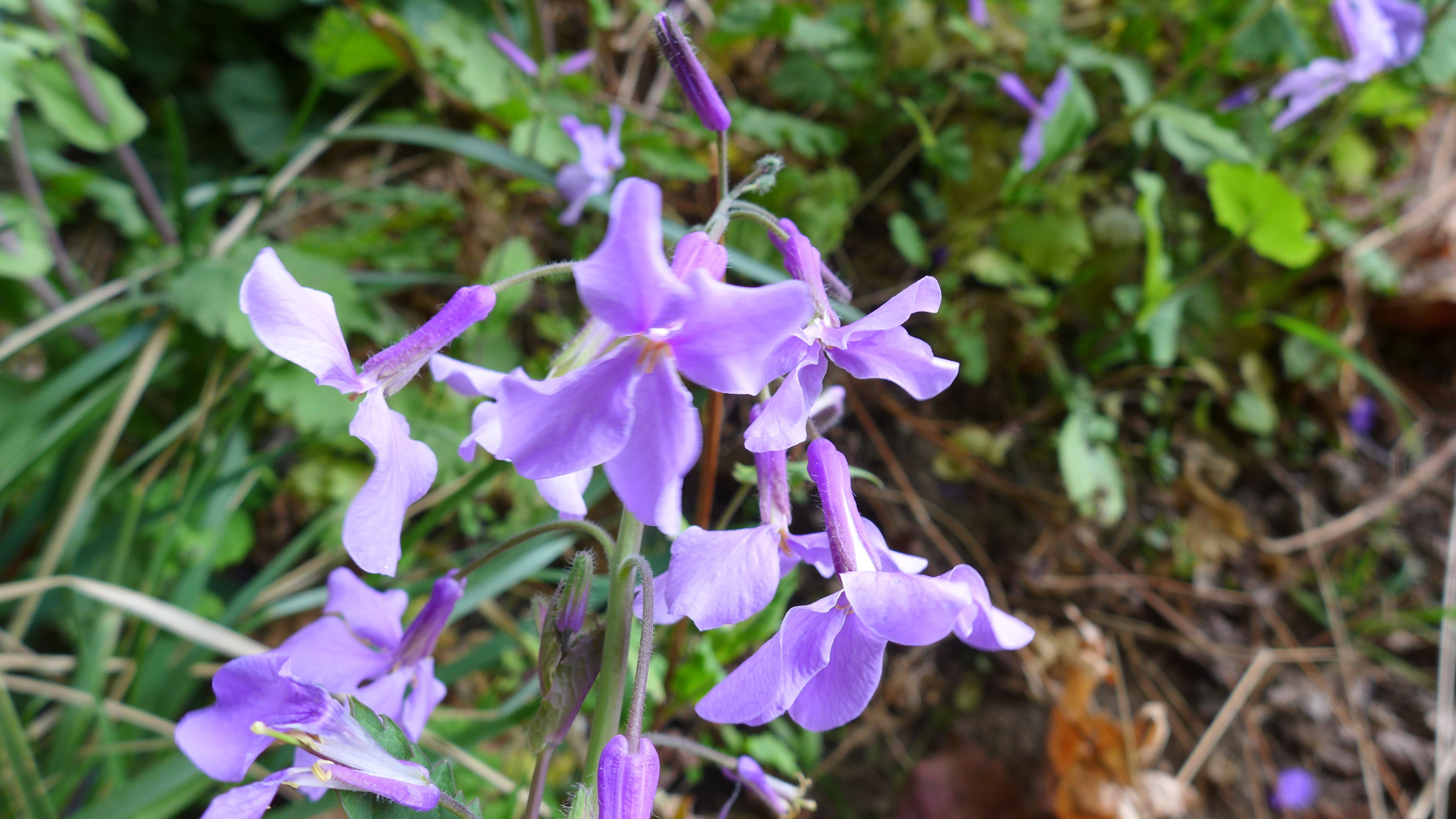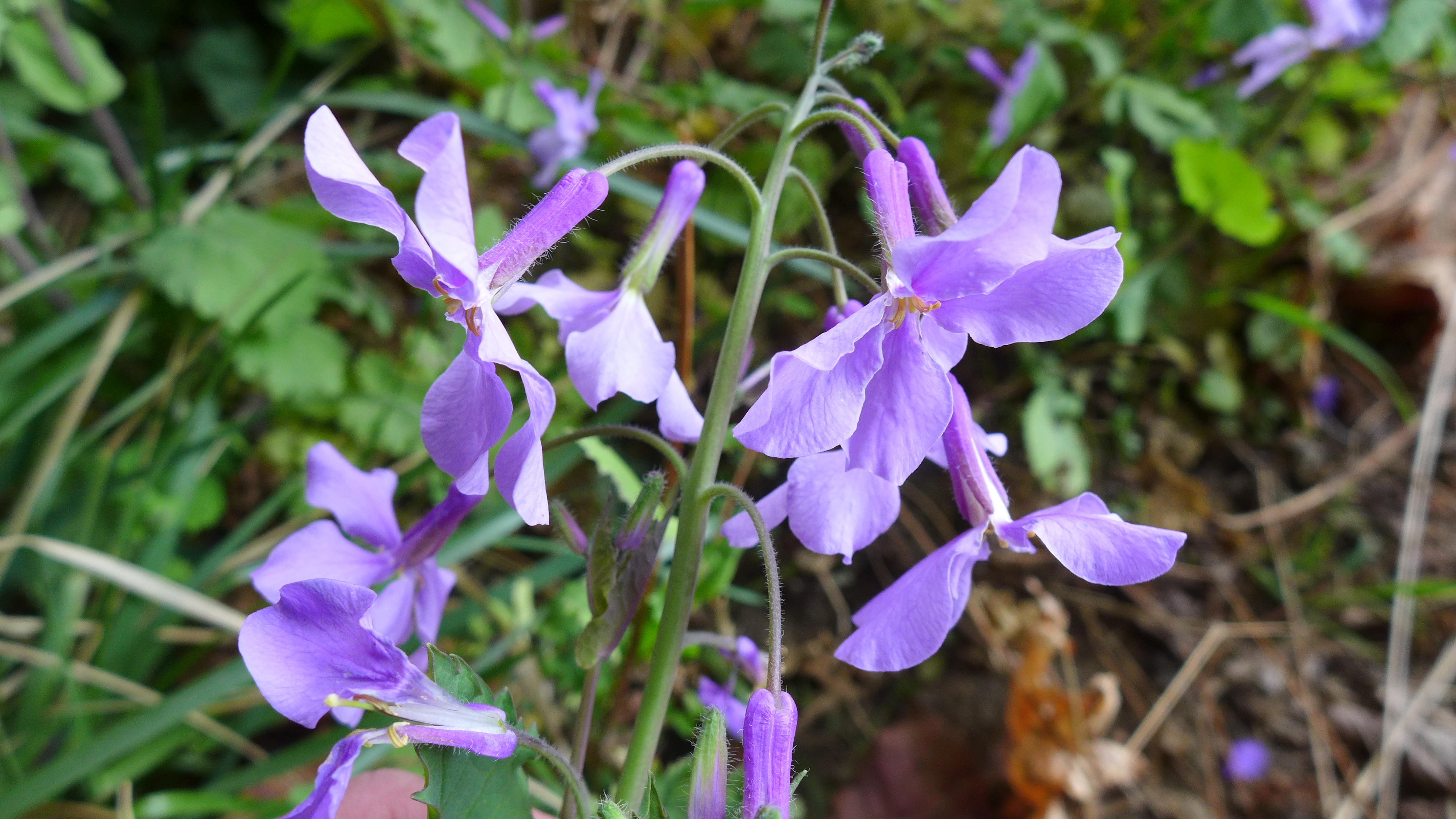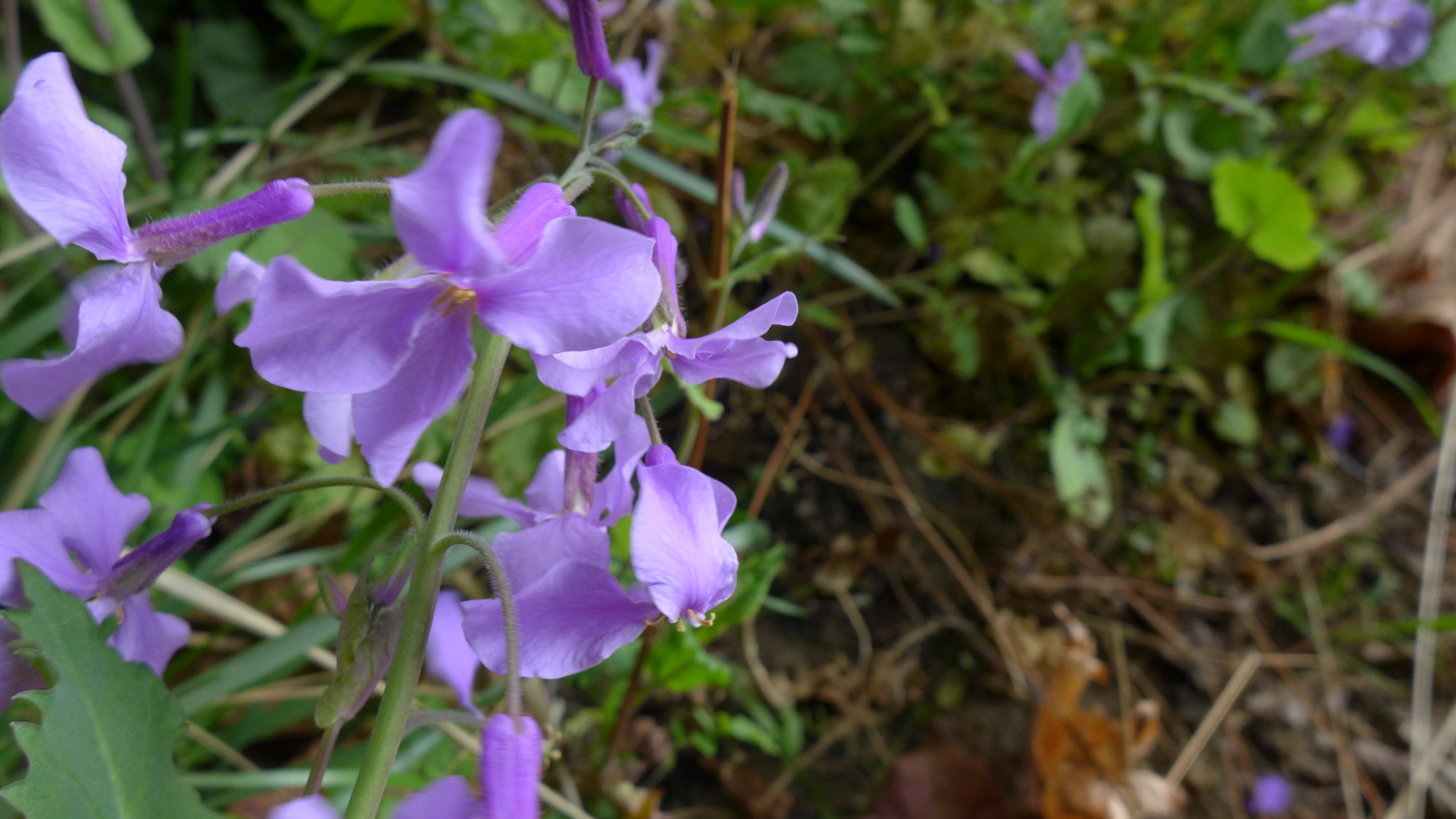 4월 안양천에서 만나는 들꽃 소래풀. 천변을 걷다보면 푸른빛을 띤 자주와 보라가 섞인 오묘한 색의 옷을 입은 나즈막한 꽃들이 바람결에 흩날리면 마치 우아하게 춤을 추는 듯 반하지 않을 수 없지요. 이 꽃은 중국이 원산지로 국내에서는 소래포구에서 처음 발견되어 소래풀이라고 부른다는데, 양귀비목 십자화과로 제갈채(諸葛菜), 보라유채, 제비냉이 등 이명(異名)도 많지요.