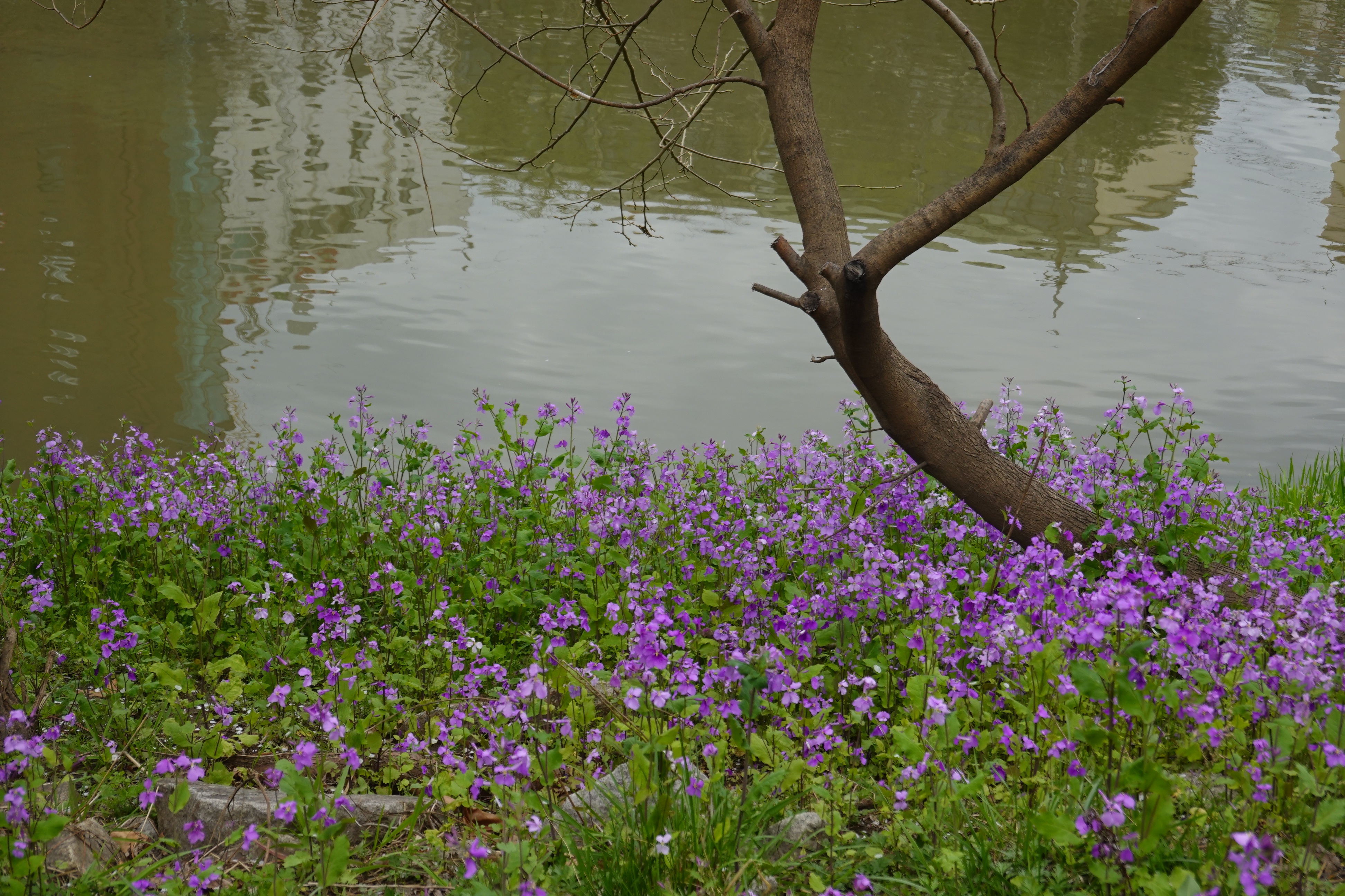 4월 안양천에서 만나는 들꽃 소래풀. 천변을 걷다보면 푸른빛을 띤 자주와 보라가 섞인 오묘한 색의 옷을 입은 나즈막한 꽃들이 바람결에 흩날리면 마치 우아하게 춤을 추는 듯 반하지 않을 수 없지요. 이 꽃은 중국이 원산지로 국내에서는 소래포구에서 처음 발견되어 소래풀이라고 부른다는데, 양귀비목 십자화과로 제갈채(諸葛菜), 보라유채, 제비냉이 등 이명(異名)도 많지요.
