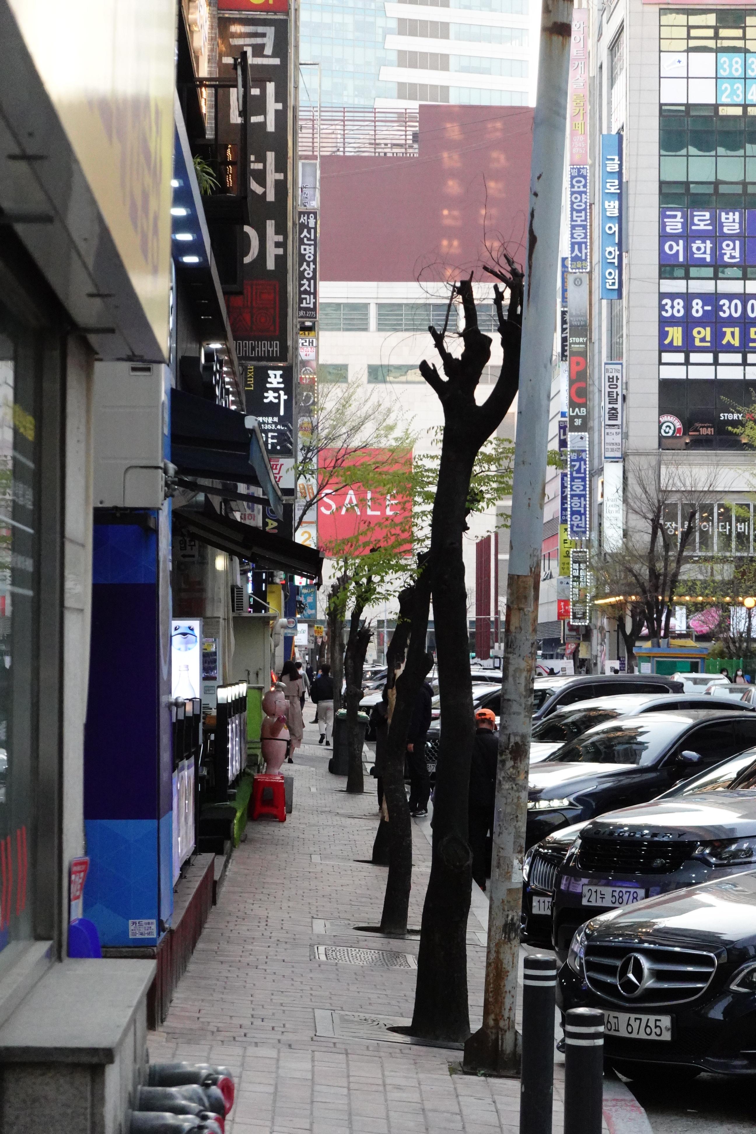 2021.04.05/ #안양 #도심 #가로수/ 안양 범계역 도심 평촌대로 227번길 가로수들이 무분별한 가지치기로 흉물스럽게 변해버렸다.이렇게 참혹하게 만들꺼면 왜 나무를 심었나 묻고 싶을 정도다.