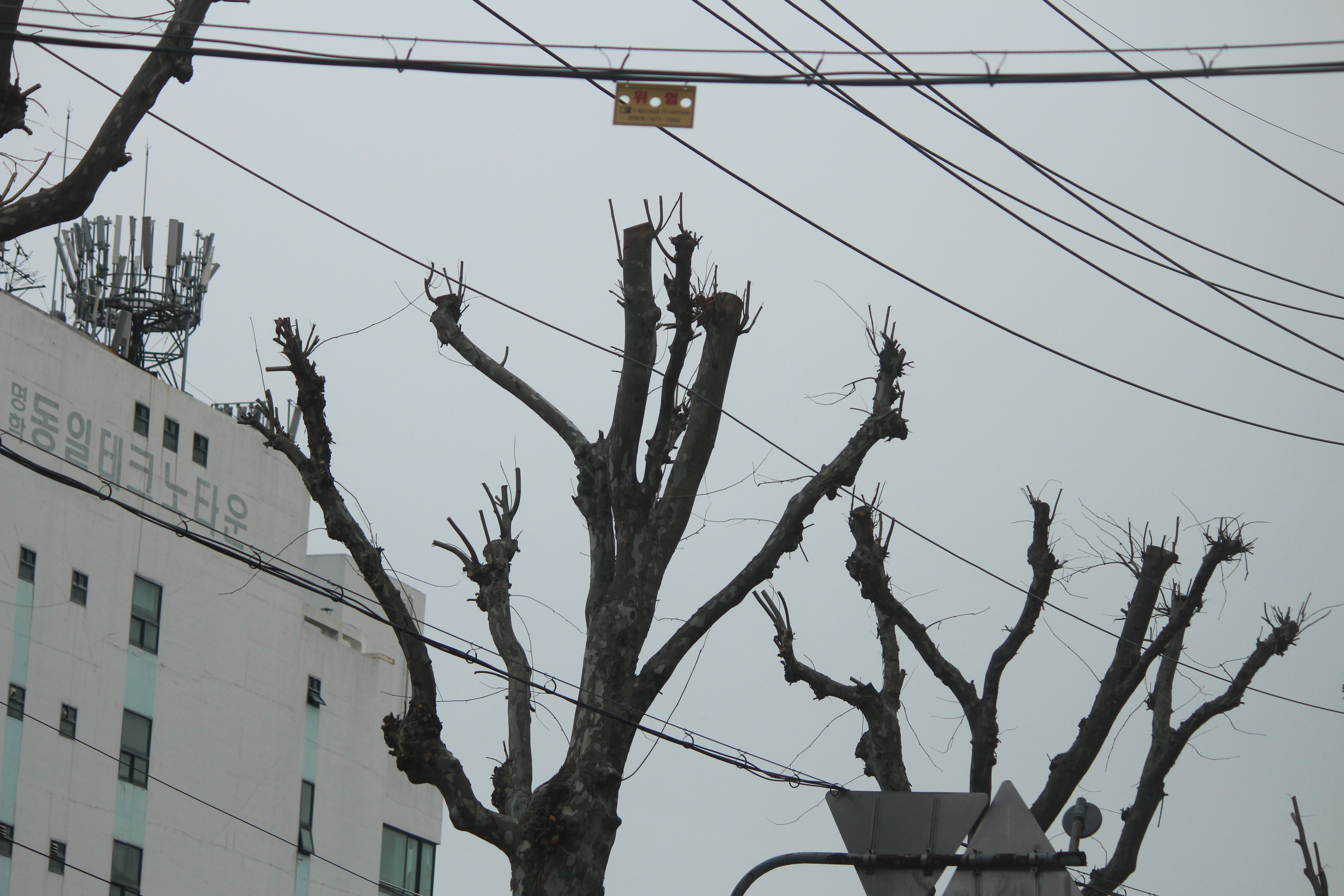 2021.03.06/ #안양 #동네 #골목 #명학역 #가로수 #가지치기 #버즘나무/ 강전지를 당한 명학역앞 버즘나무 가로수. 안양시 북쪽 석수대교부터 안양8동 명학옆까지 이어지는 만안로(옛1번국도-구도로) 돌 양쪽에 심어진 버즘나무들은 매년 봄이되면 보기에 참혹할 정도로 가지치기를 당하는 수난이 시작된다....