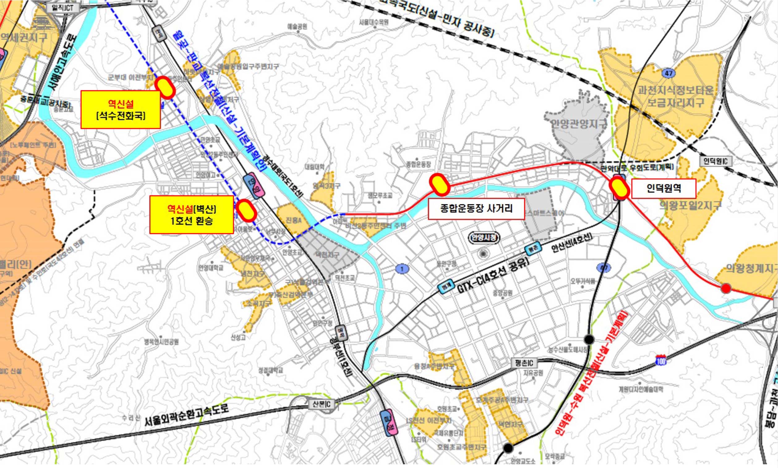 인덕원역은 우선 상반기 공사착공 예정이며, 그 외 구간은 올해 12월 실시설계를 완료해 2022년 상반기 공사착공 예정이다.