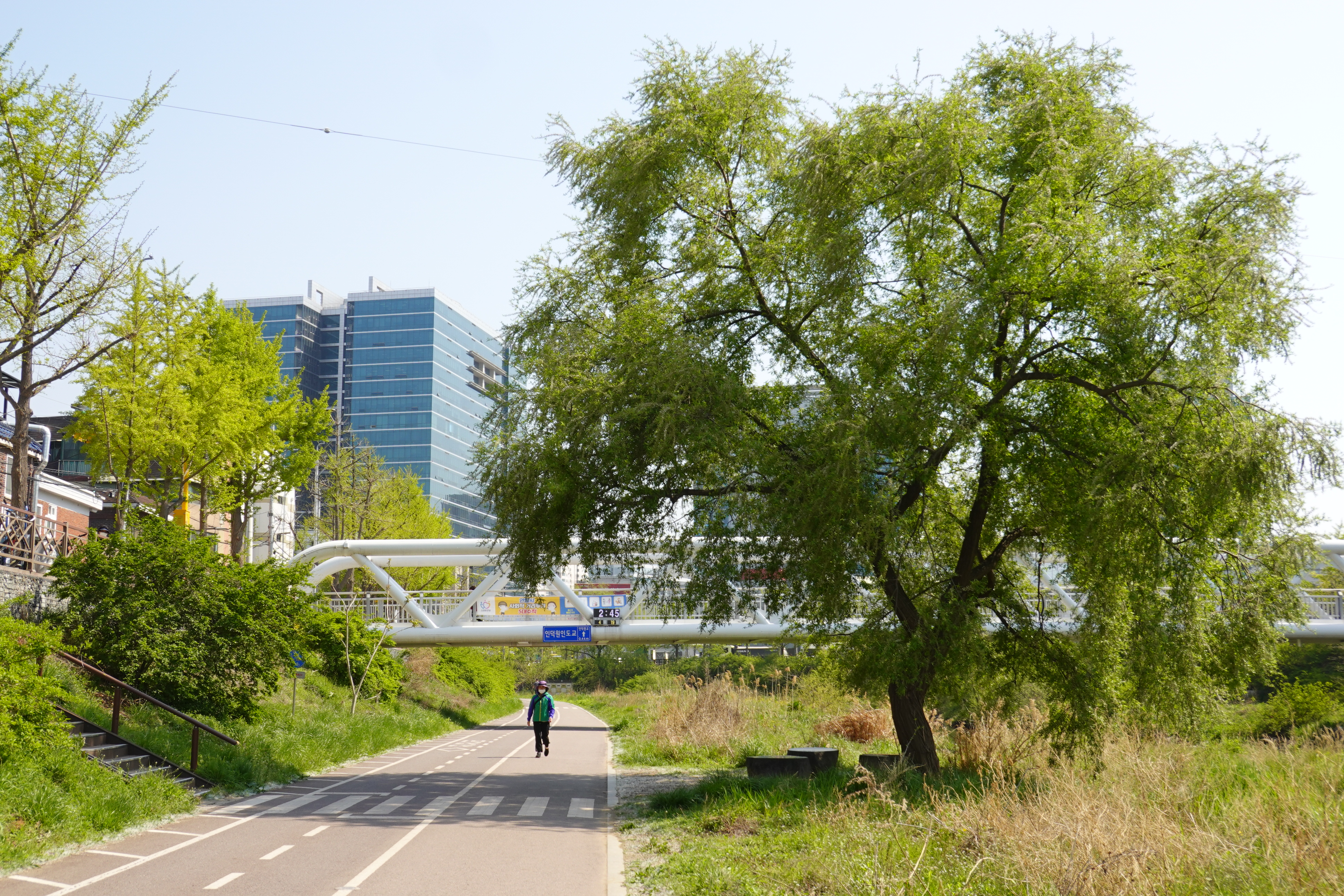 2021.04.19/ #안양 #동네 #하천 #나무 #쉼터 #학의천/ 안양시가 장마철 비가 많이 올 경우 부유물이 걸린다는 이유(치수대책)와 건설교통부 하천관리기준을 근거로 수년전부터 안양천과 학의천에서 잘 자라온 굵은 나무 수백여 그루를 베어냈는데 그 과정에서 살아남은 학의천 인덕원 인도교 옆 버드나무입니다.