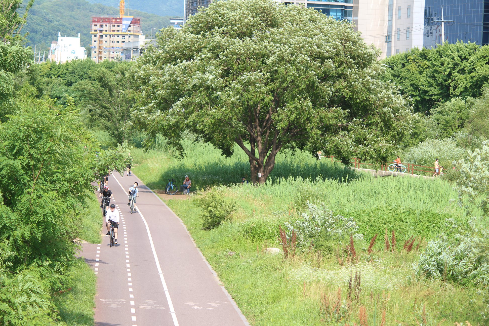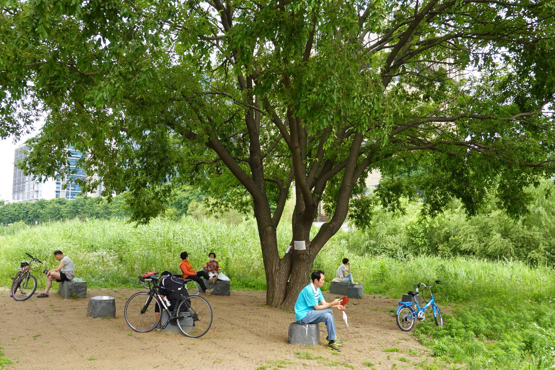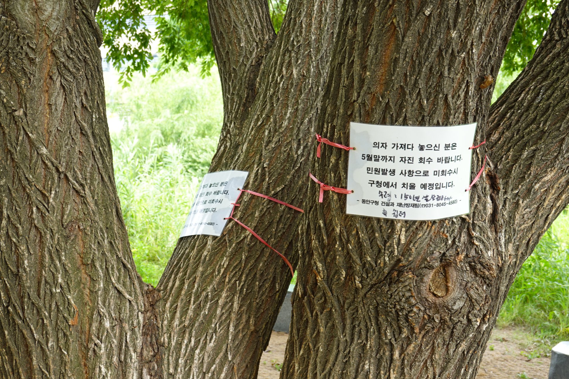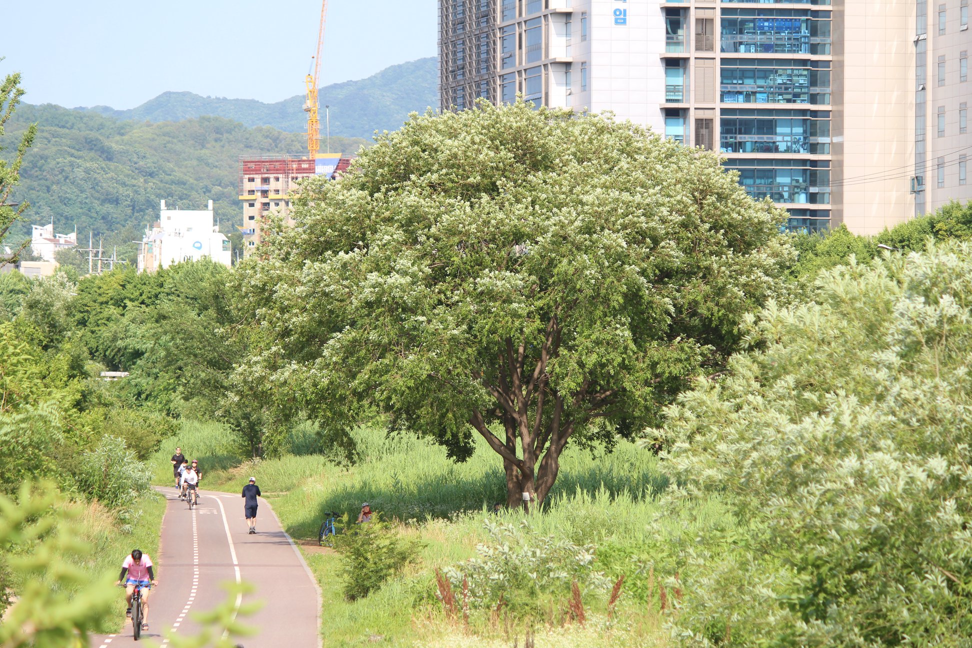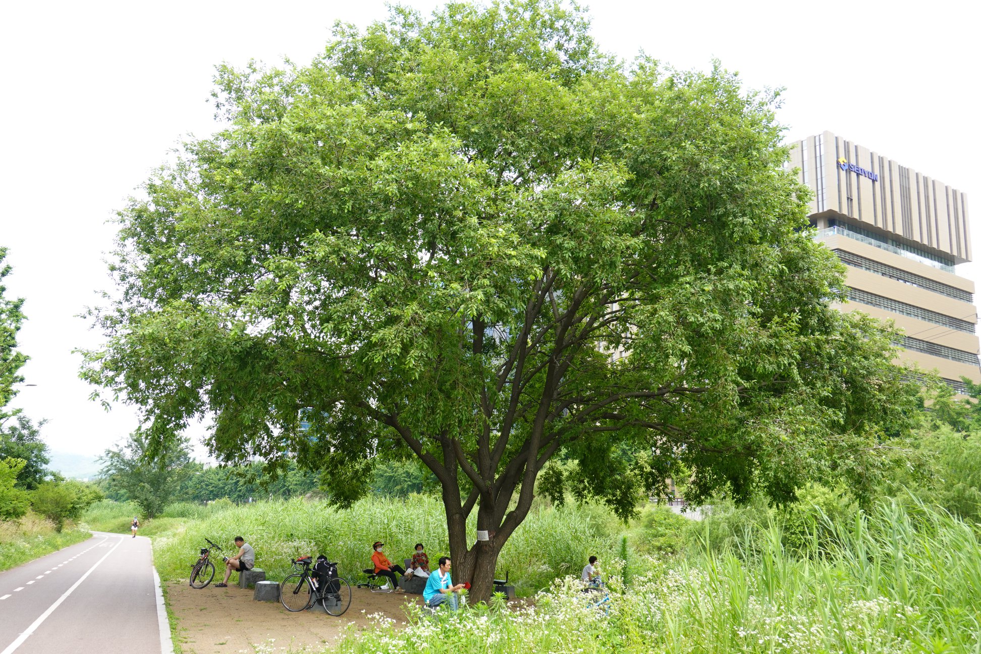 2021.04.19/ #안양 #동네 #하천 #골목 #학의천/ 학의천을 걷다보면 대한교와 동안교 중간쯤에 놓여진 세월교 옆에서 볼 수 있는 멋진 나무 한그루. 학의천에서 으뜸으로 꼽는 최고 명물이지 않을까 싶은데 날씨가 더위지기 시작하니 벌써 주민들의 쉼터 역할을 톡톡히 한다. 안양시가 장마철 비가 많이 올 경우 부유물이 걸린다는 이유(치수대책)와 건설교통부 하천관리기준을 근거로 수년전부터 안양천과 학의천의 나무을 베어내고 있다. 그 과정에서 수십년을 잘 자라온 나무에서 밑둥이 굵은 아름드리 나무까지 수백여 그루가 잘려져 사라졌다. 이 나무도 절단 대상이었으나 전문가들의 자문를 거쳐 살아남았다. 지금은 무더위에 시원한 나무 그늘읗 만들어 천변길을 오가는 시민과 두바퀴 자전거 이용자뿐 아니라 주변 주민들까지 나와 쉬는 공간이 되고 생김새도 멋져 학의천에서 으뜸으로 꼽는 명소가 되었다. 안양천.학의천변에 아직 살아있는 나무들 주변도 저 나무처럼 천변의 쉼터로 조성되면 좋을 듯 싶다..