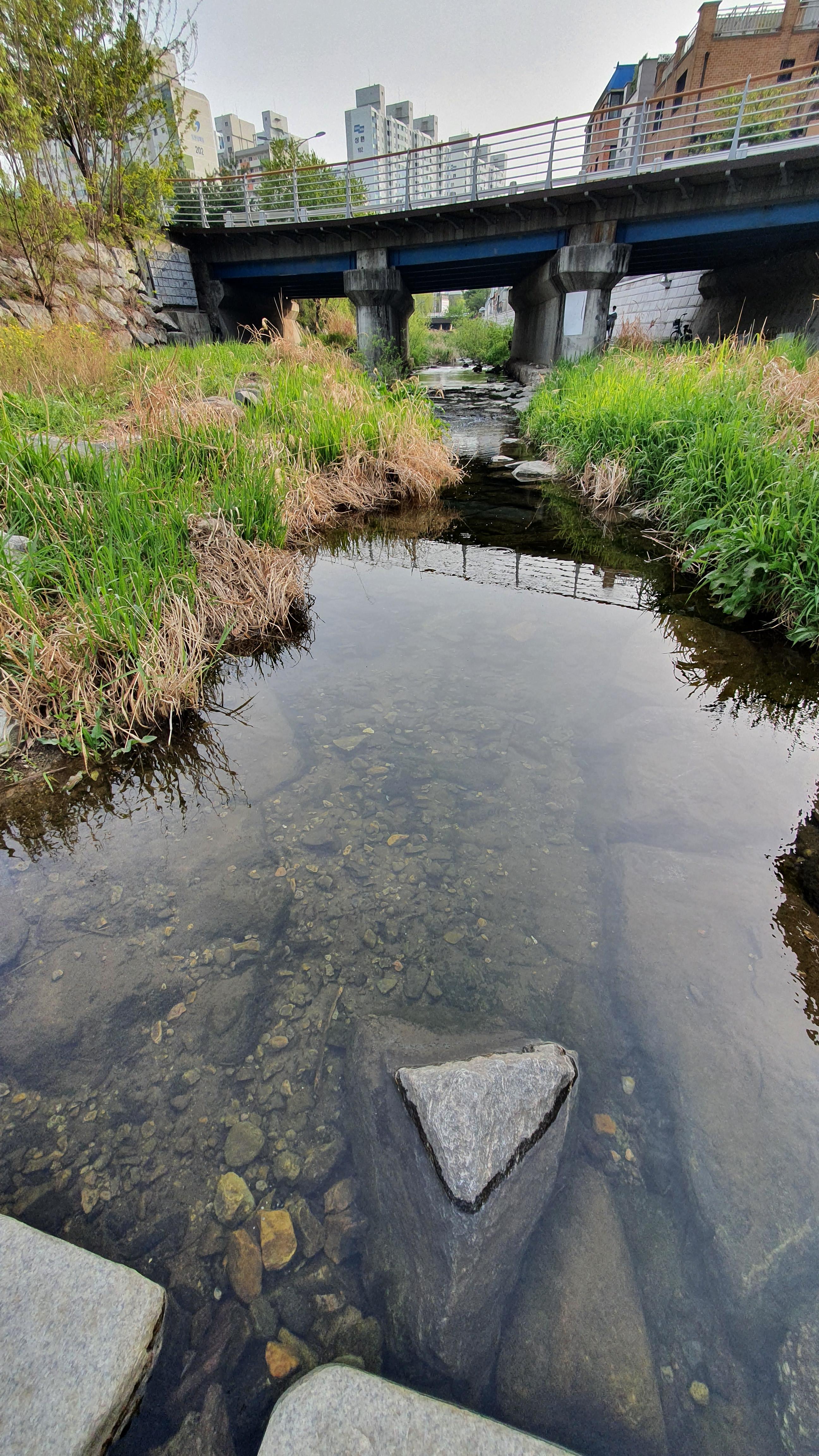 2021.04.20/ #안양 #동네 #하천 #수암천/ 비록 하수를 정화처리한물이지만 건천에 펌핑한 물이 흐르니 쇠백로까지 찾아왔다. 양지2교와 양지3교 사이에서 만난 풍경...