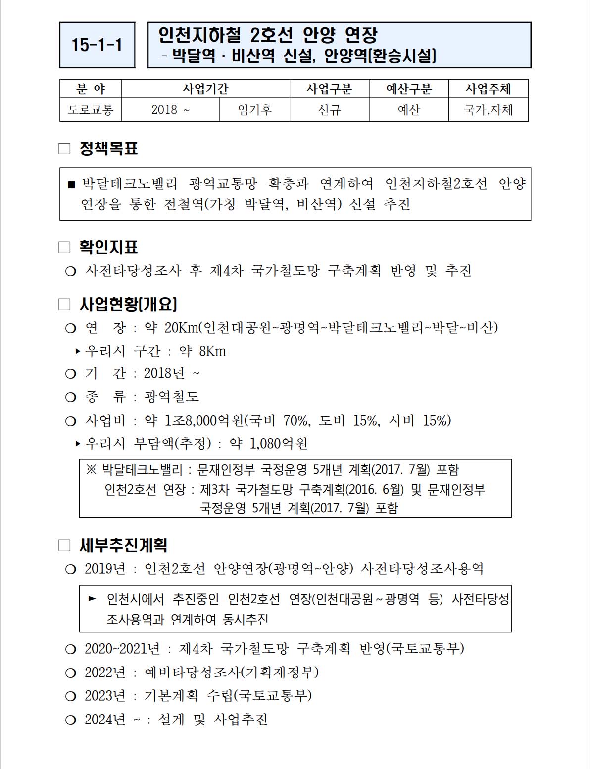 국토교통부는 인천 2호선 안양 연장사업에 대한 추가적 검토를 거쳐 올 6월경 정식 반영 여부를 결정할 방침이다.