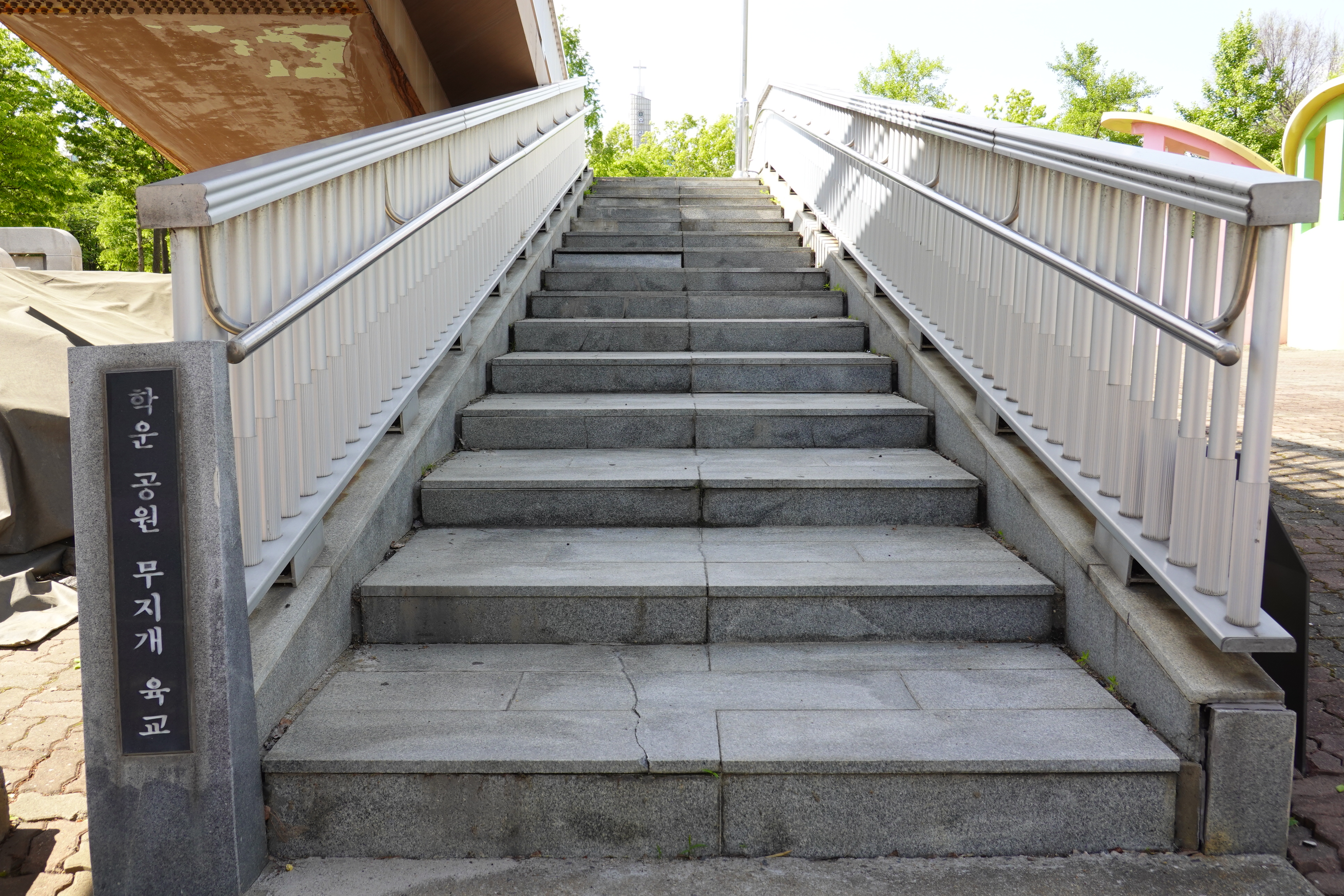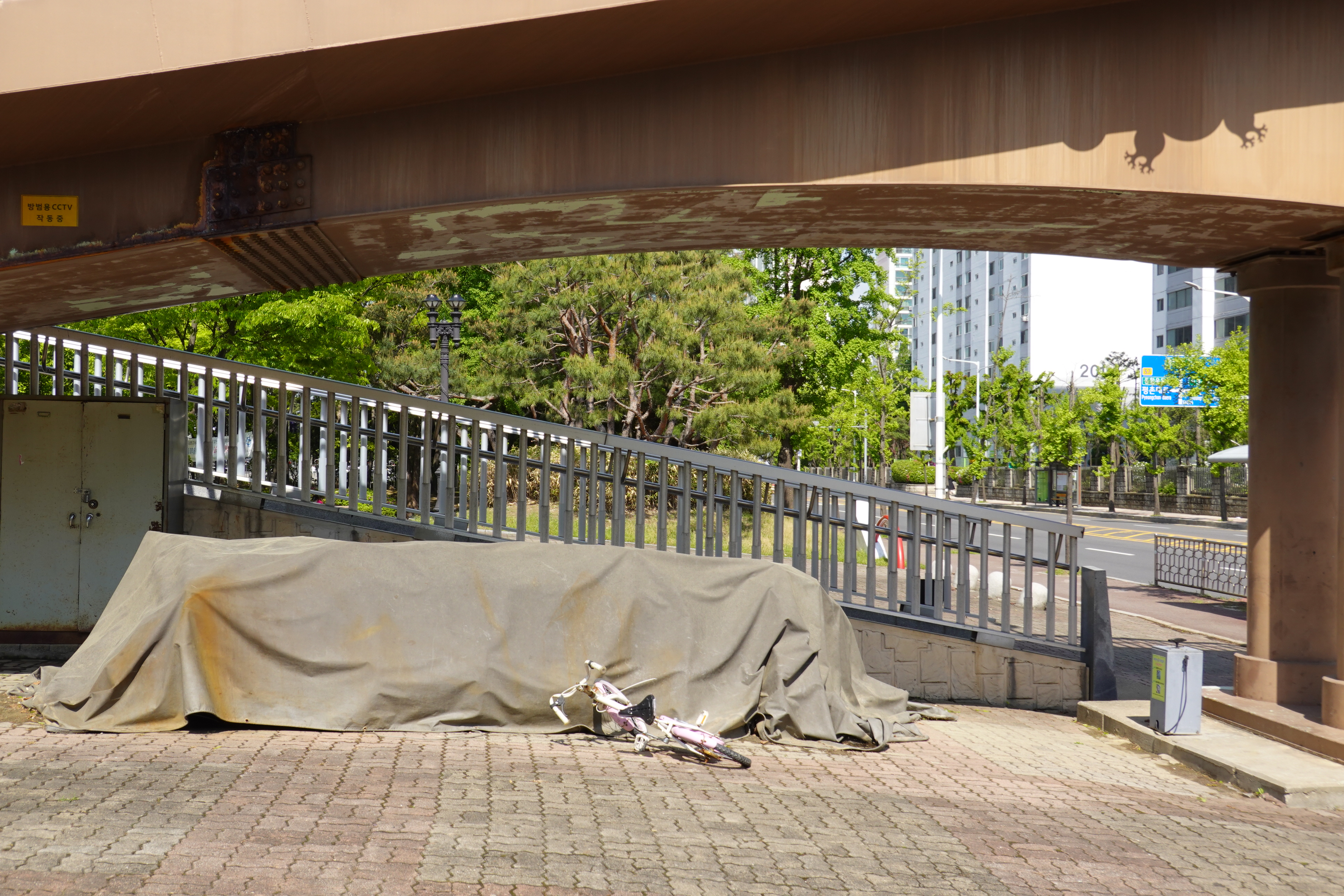 2021.05.02/ #안양 #동네 #골목 #학운공원 #무지개육교/ 안양시 평촌 동안구 샛별단지에서 희성공원과 신책길을 지나 학운공원으로 연결되는 무지개육교. 예쁜 이름과 달리 육교 아래는 지저분하다. 철골조를 스며든 빗물이 쇠와 세멘트를 부식시킨지 오래된듯 하고 한쪽에는 무엇이 들었는지 모를 캐비넷들이 줄지어 자리하고 있다. 또 천막으로 덮은 무언가도 있다, 이름표도 안내판도 없는 저 의문스런 물체들 속에는 무엇이 들었을까..