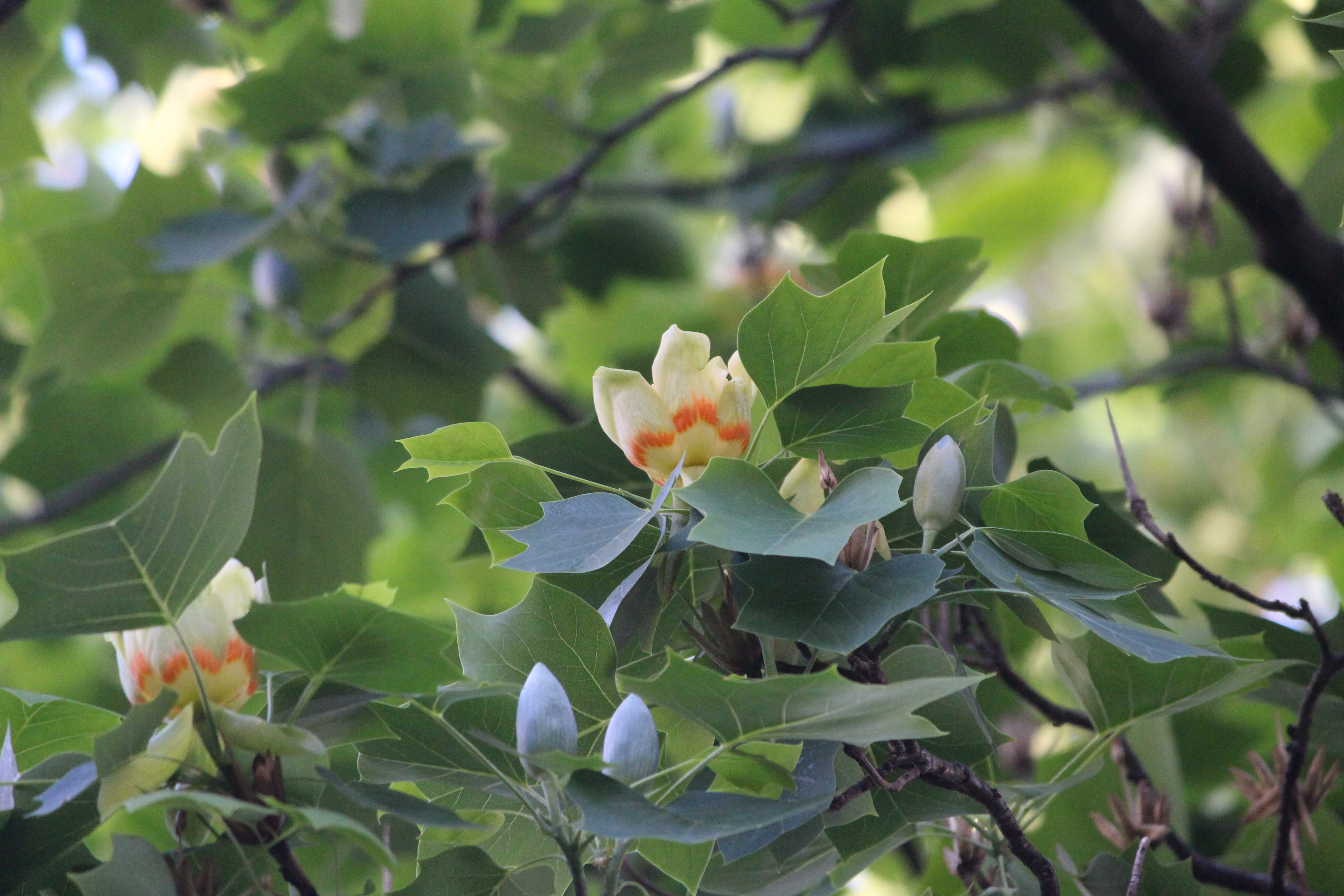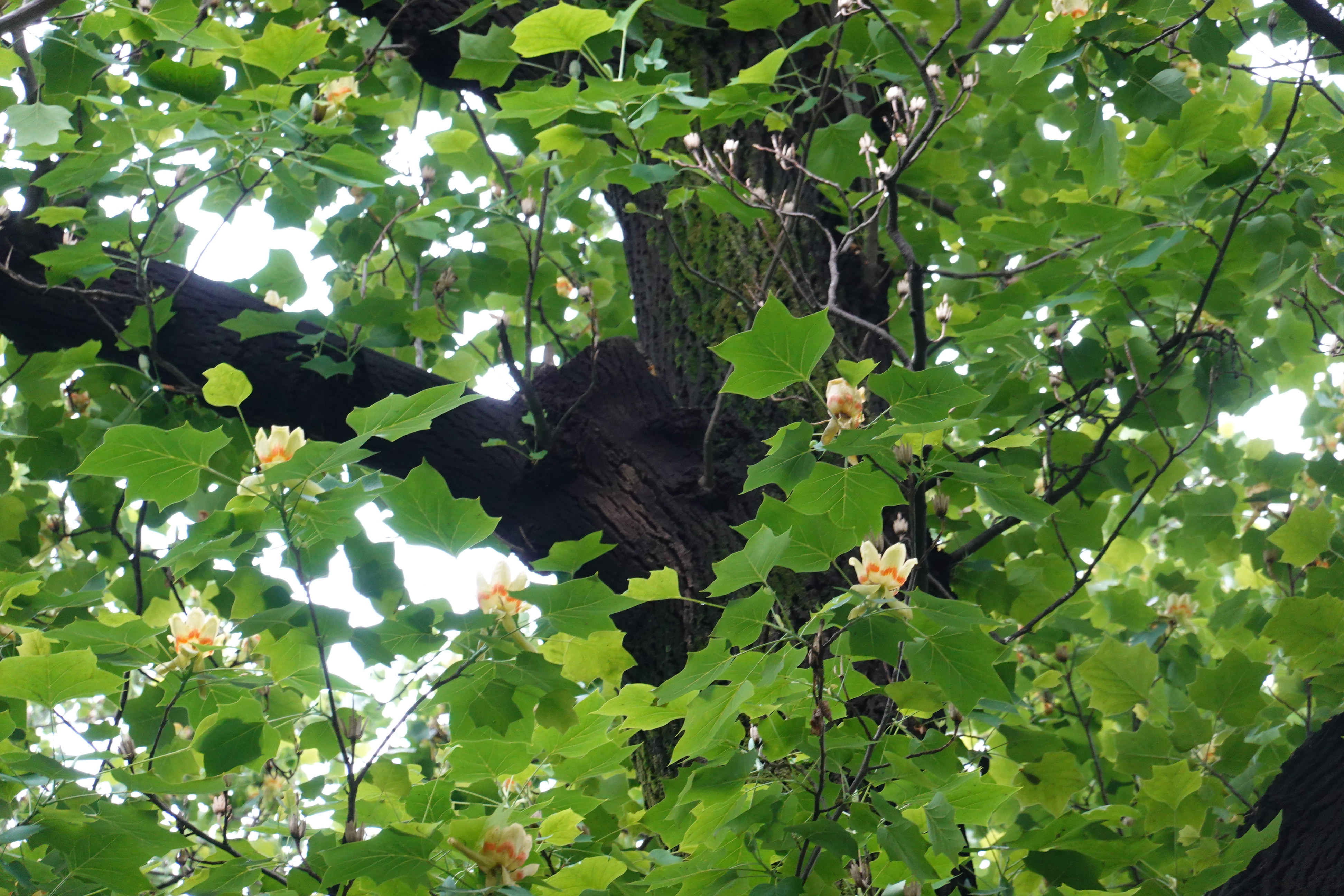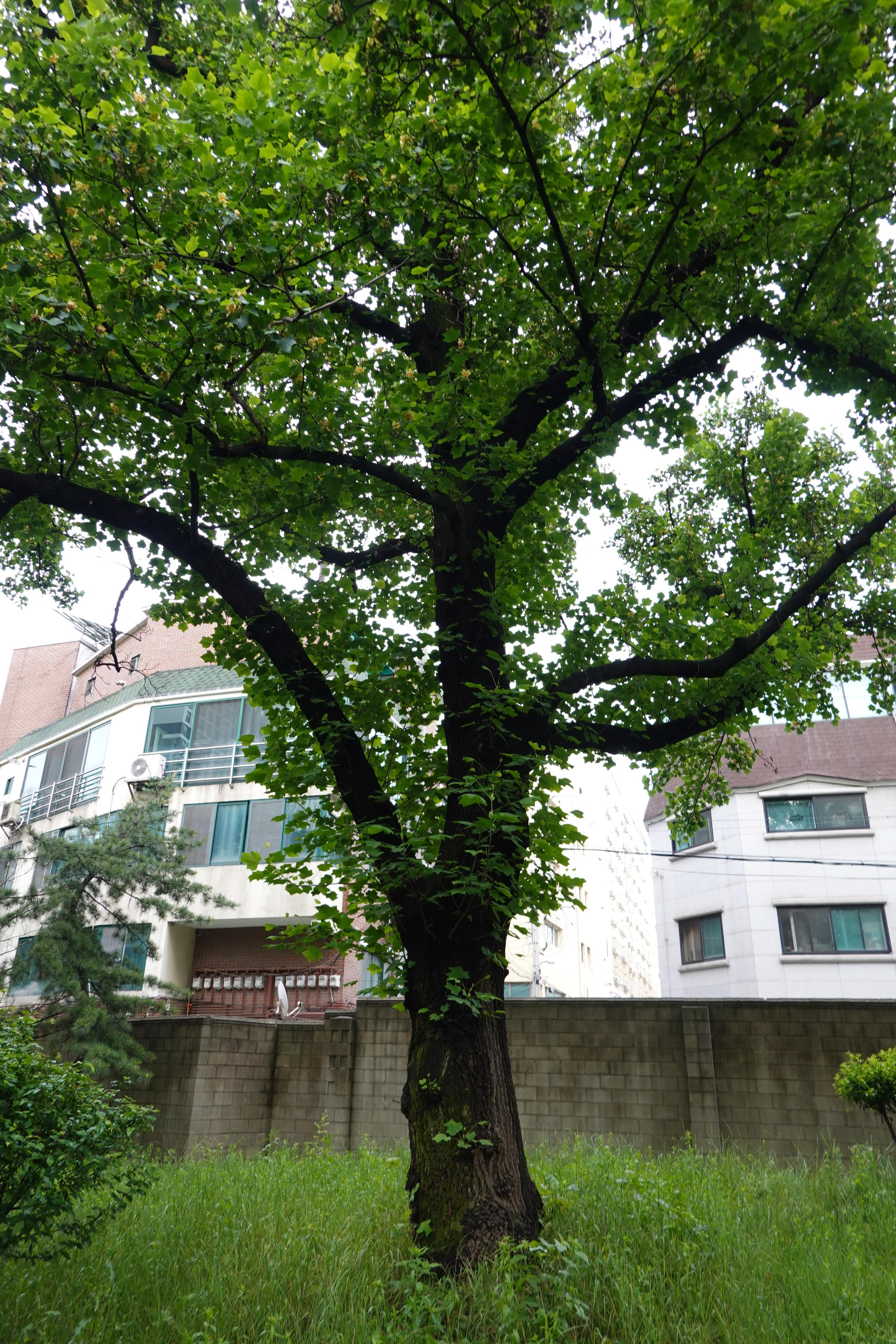 2021.05.21/ #안양 #동네 #골목 #백합나무 #튤립나무/ 정부 공공기관이었던 안양6동의 농림축산검역본부(옛 국립수의과학검역원) 정원 남쪽에 백합니무(튤립나무) 두 그루가 우뚝 솟아있다. 튤립 모양의 꽃이 열렸는데 나무가 높고 초록의 나뭇잎에 가려져 잘 보려고 하기전에는 보이질 않는다.