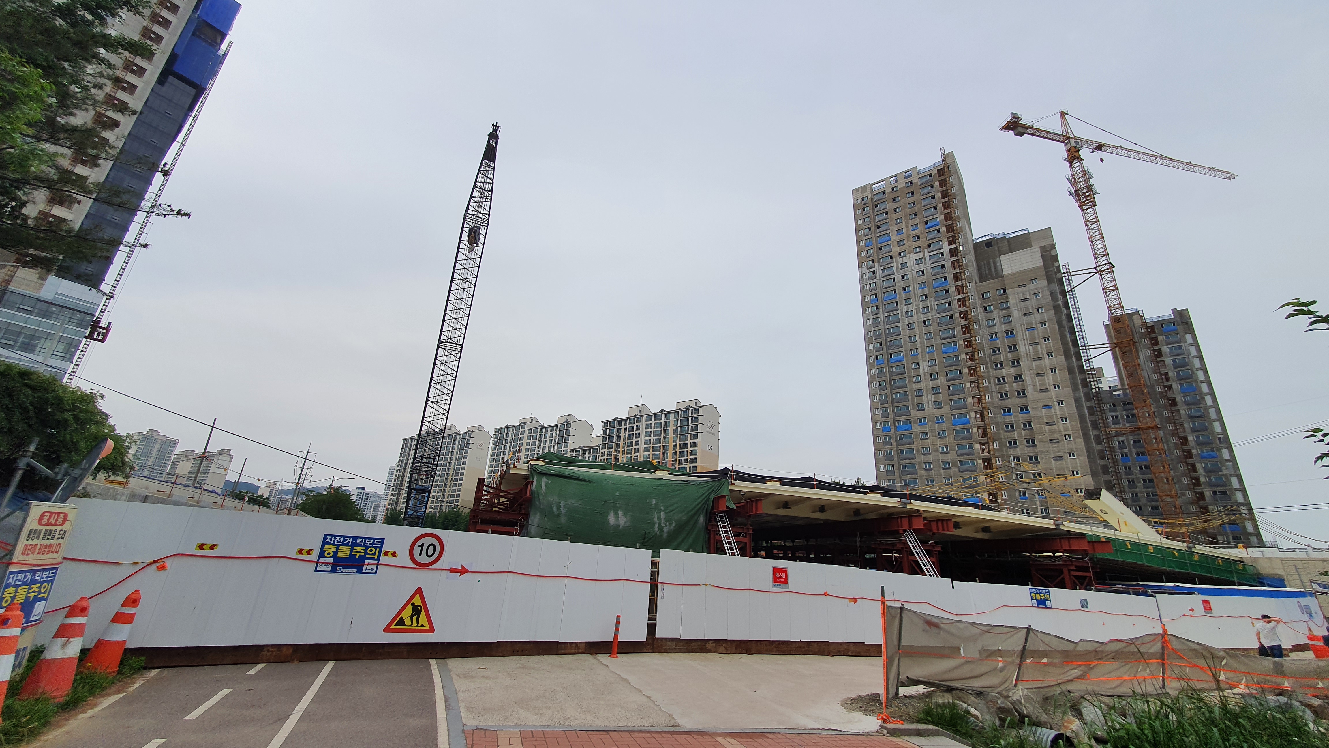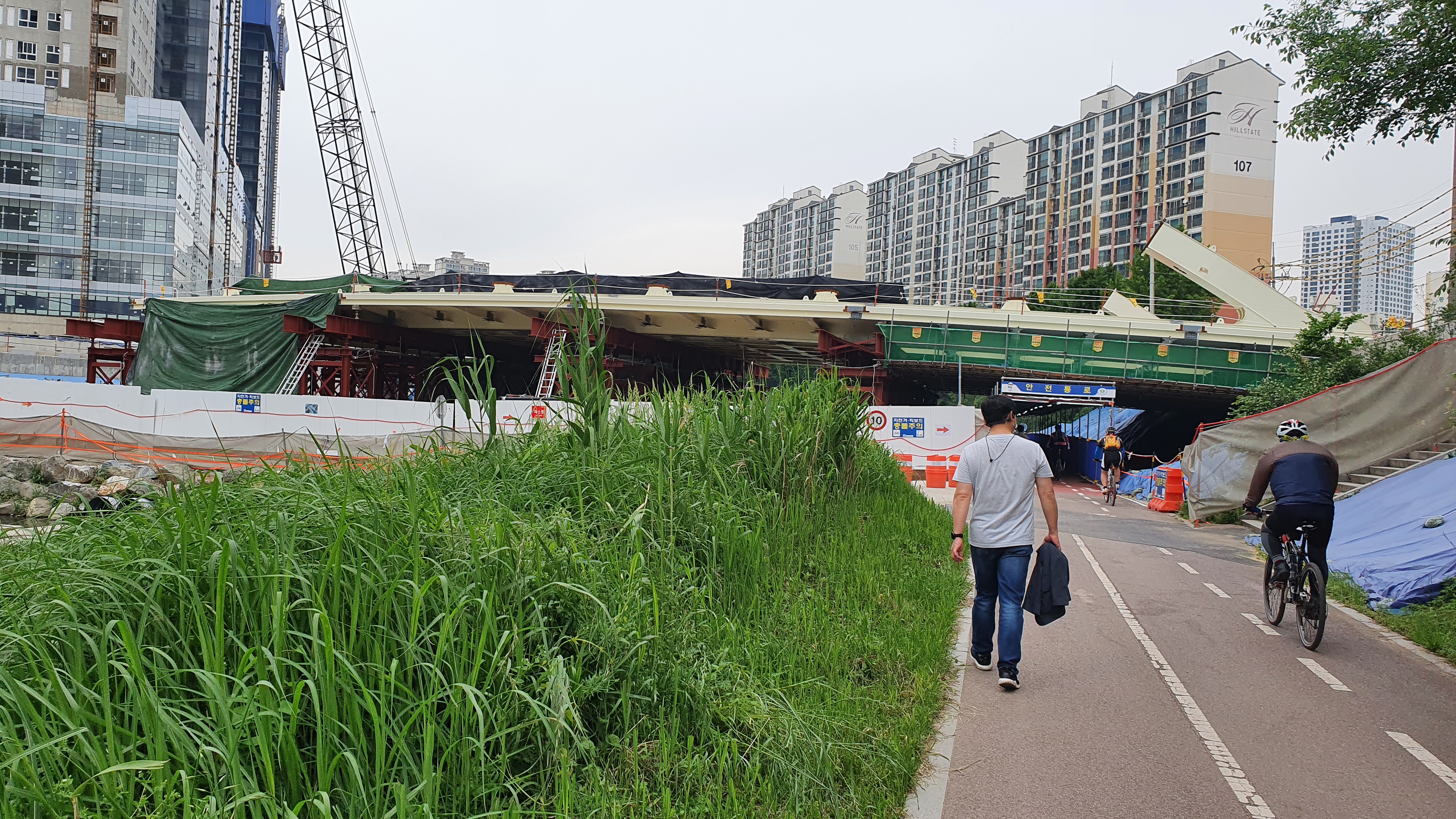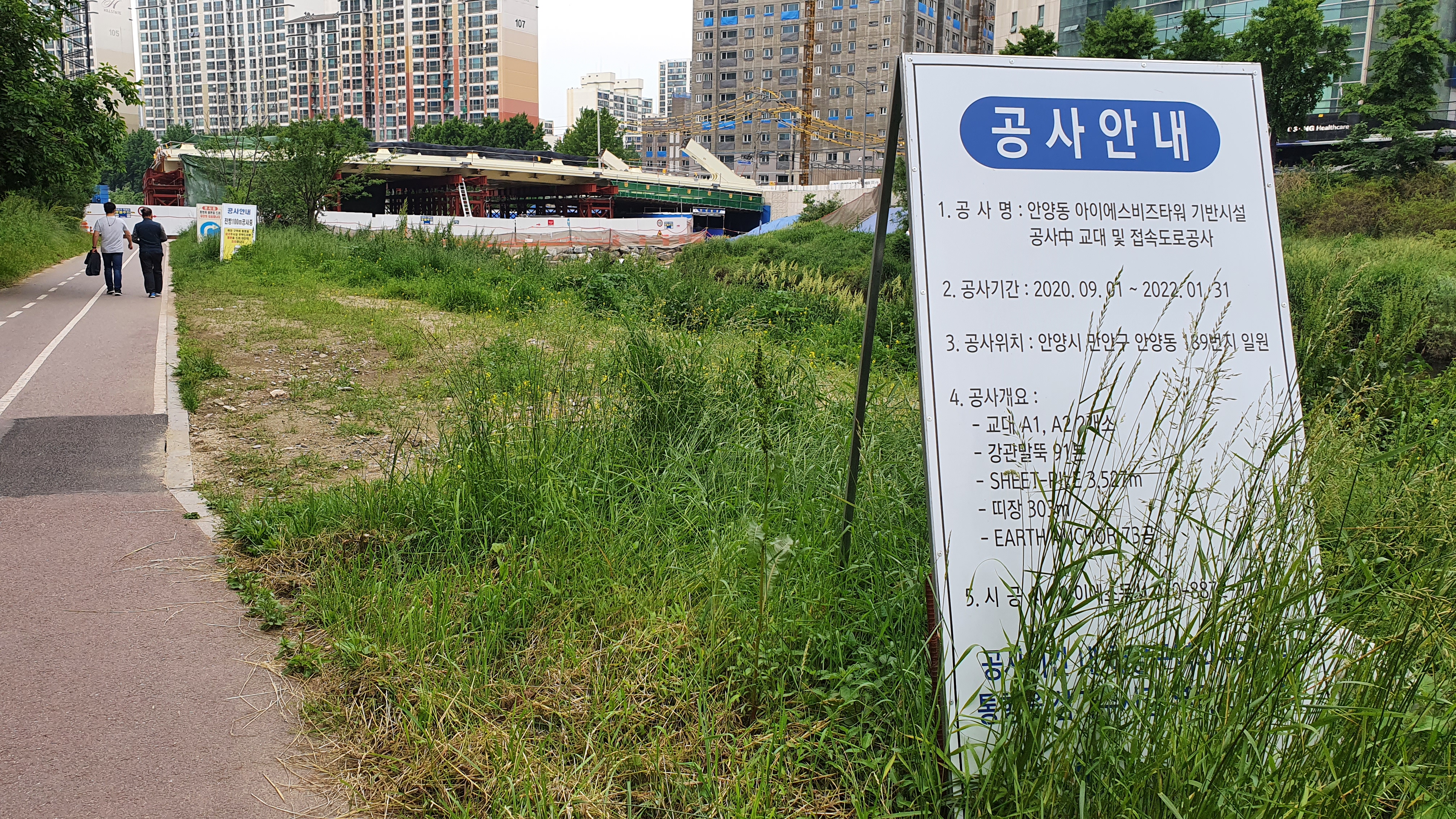 2021.05.23/ #안양 #동네 #안양천 #교량/ 쌍개울옆 덕천교와 전파교 중간에 새로운 교량(다리) 하나를 놓기 위한 공사가 한창으로 상판이 놓여졌다. 다리 형태를 보니 트러스트교로 상부 아치가 조립되면 모양새가 드러날듯 싶다. 이 다리는 안양7동 옛 동화약품 안양공장 부지에 신축중인 매머드급 지식산업센터 ‘안양 아이에스비즈타워 센트럴’ 과 경수산업도로(1번구도)를 연결하는 것으로 안양교도소에서 안양천으로 이어지는 호계천 복개구간으로 연결된다..