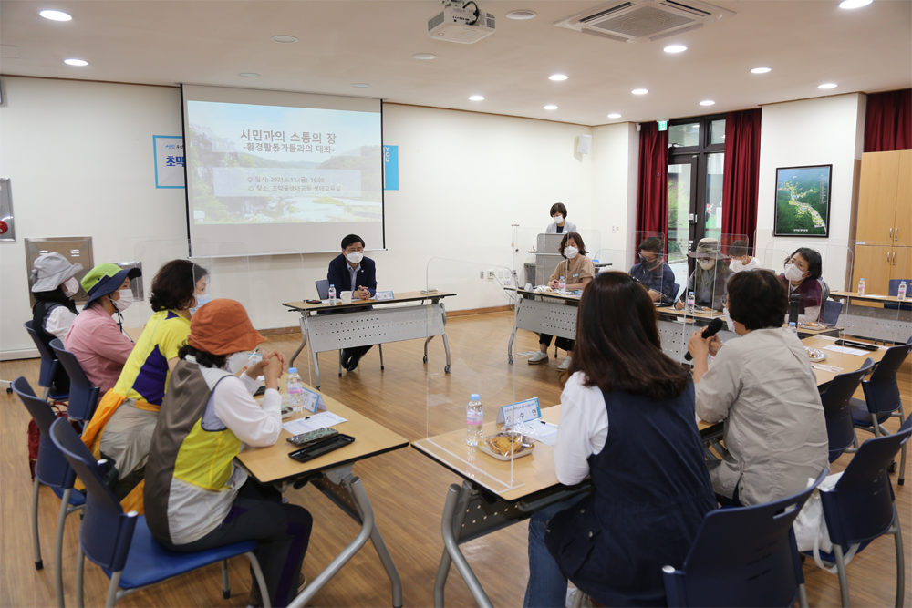 한 시장은 이어 환경활동가들과 활동내용, 환경보호 활성화 방안 등 환경을 주제로 의견을 나눴으며, 이 자리에서 환경활동가들은 환경에 대한 공감대 형성을 위한 시민교육의 필요성, 탄소포인트제 활성화, 개발사업 수립시 환경단체와의 사전 협의 등을 건의했다.
