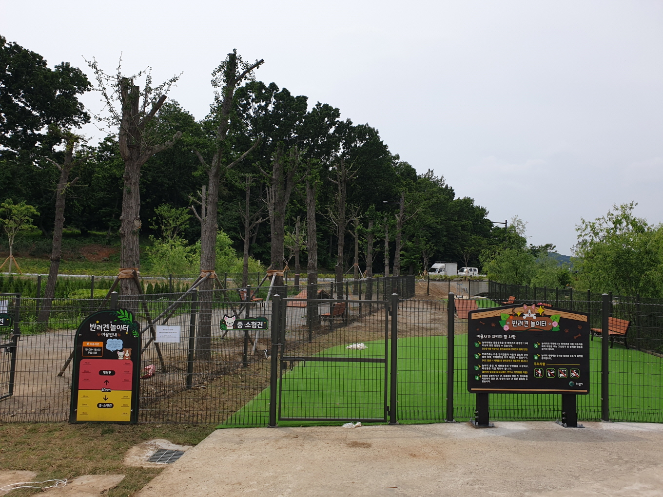 반려견 놀이터는 중·소형견 400㎡, 대형견 260㎡로 공간을 분리해 운영한다. 이용시간은 오전 10시부터 오후 6시까지이며, 동절기(1~2월)에는 오후 5시까지 단축 운영한다. 폭염, 우천 시, 신종 코로나바이러스 감염증 확산으로 인한 휴장 권고 시에는 시민과 반려견의 안전을 위해 운영하지 않는다.