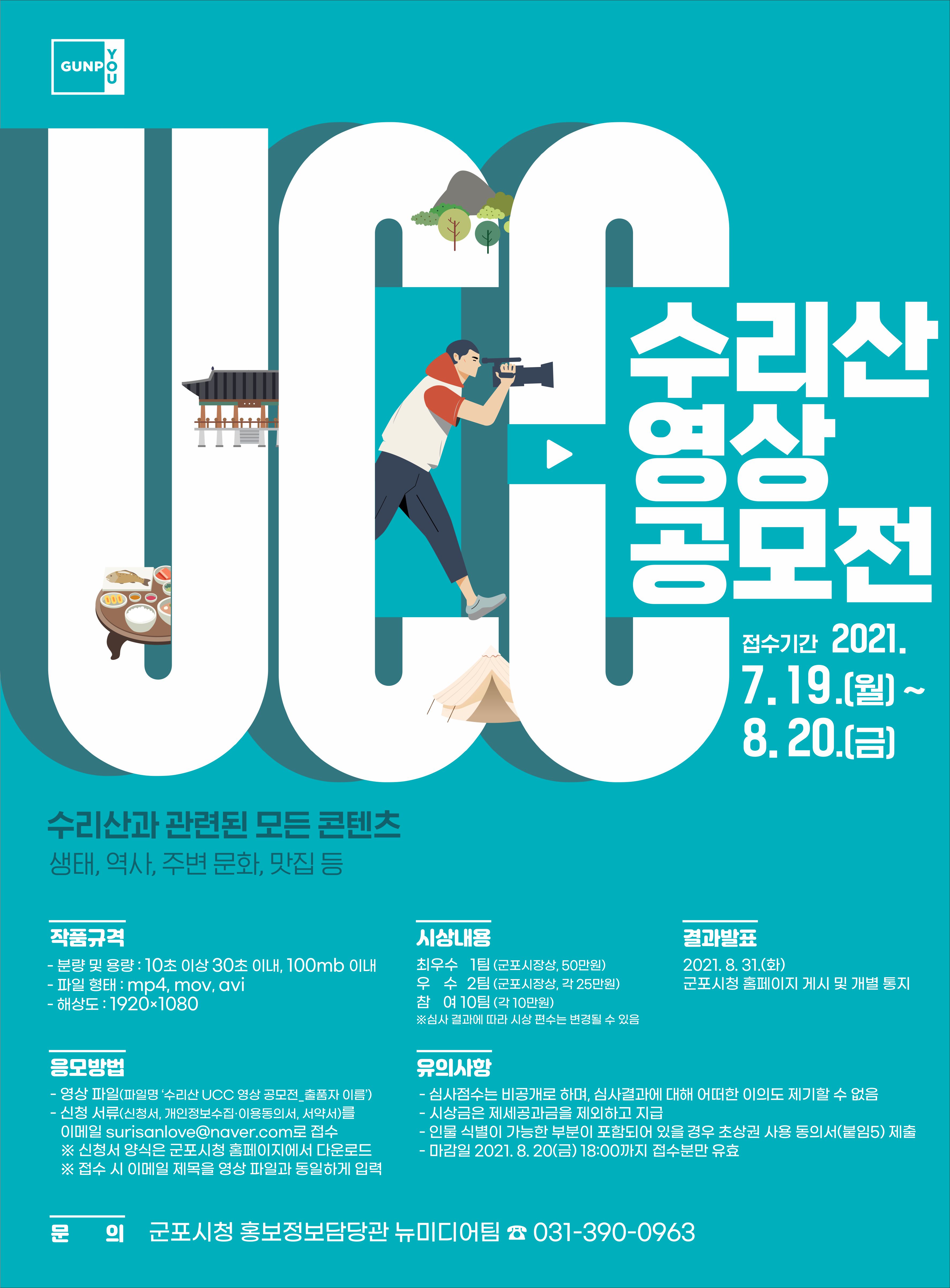 군포시가 시의 명산인 수리산을 주제로 UCC 영상 공모전을 개최한다.