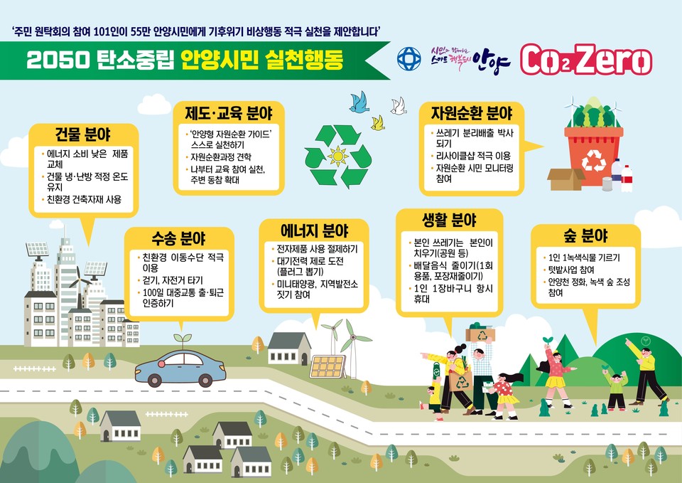 안양시가 15일 안양시민과 함께 2050 탄소중립 사회 실현을 위한 7개 분야 21개 실천행동을 발표했다.