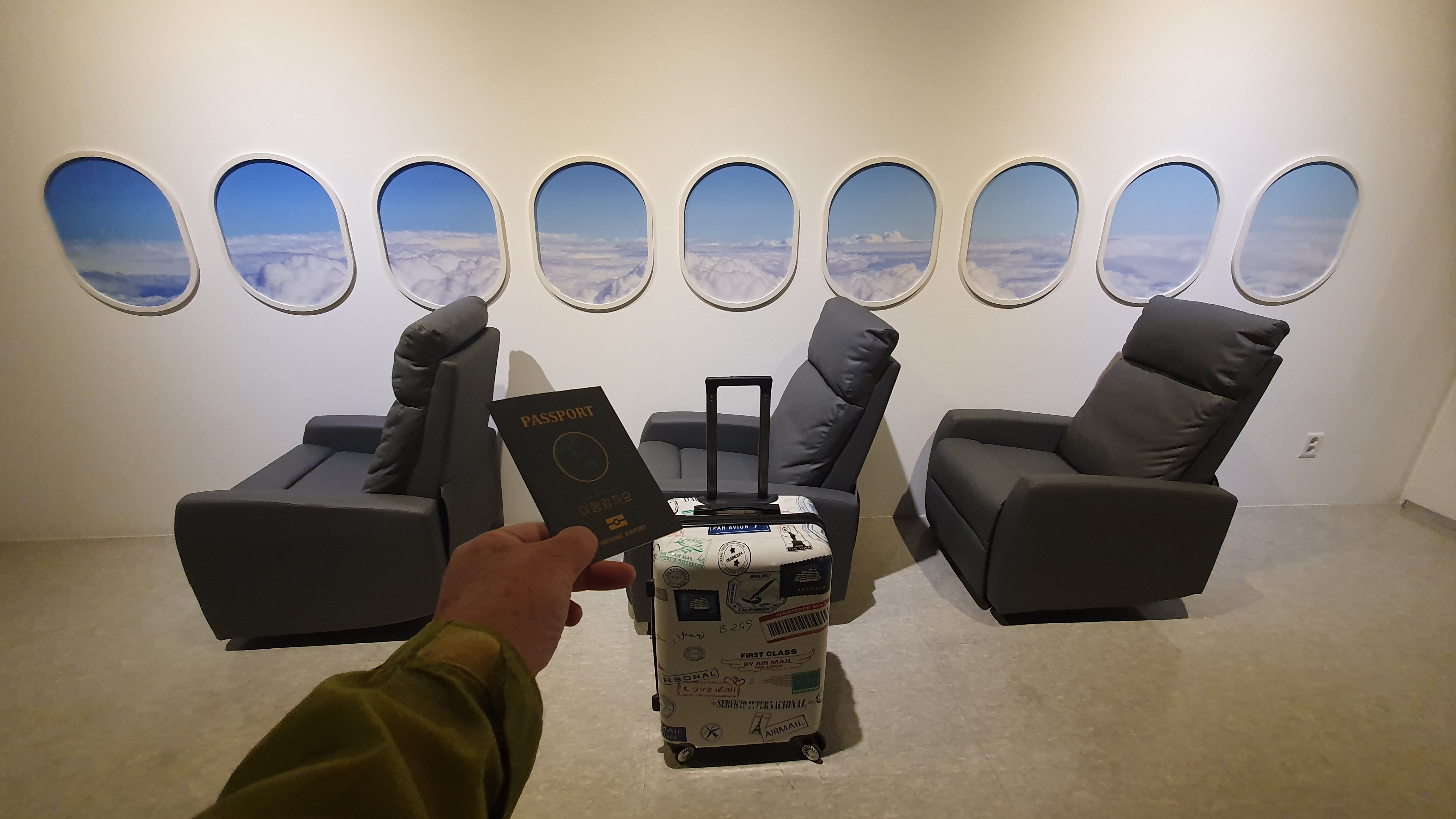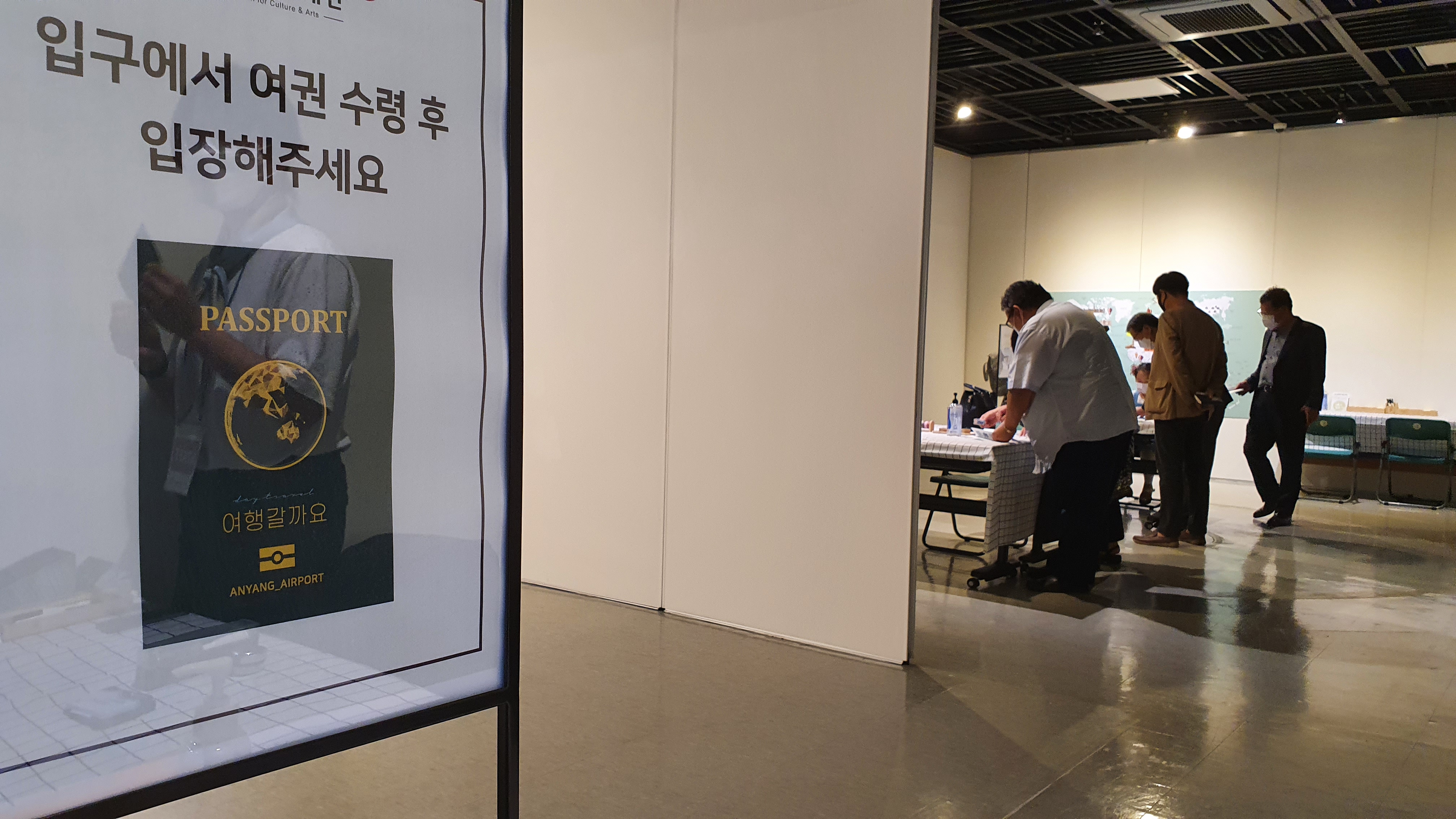 <여행갈까요> 전시는 해외여행을 떠나는 느낌을 극대화하기 위해 공항으로 공간을 연출하고, 항공권을 발권 받아 비행기에 탑승하는 과정까지 디테일한 연출을 통해 여행을 떠나는 설렘을 느껴볼 수 있다.
