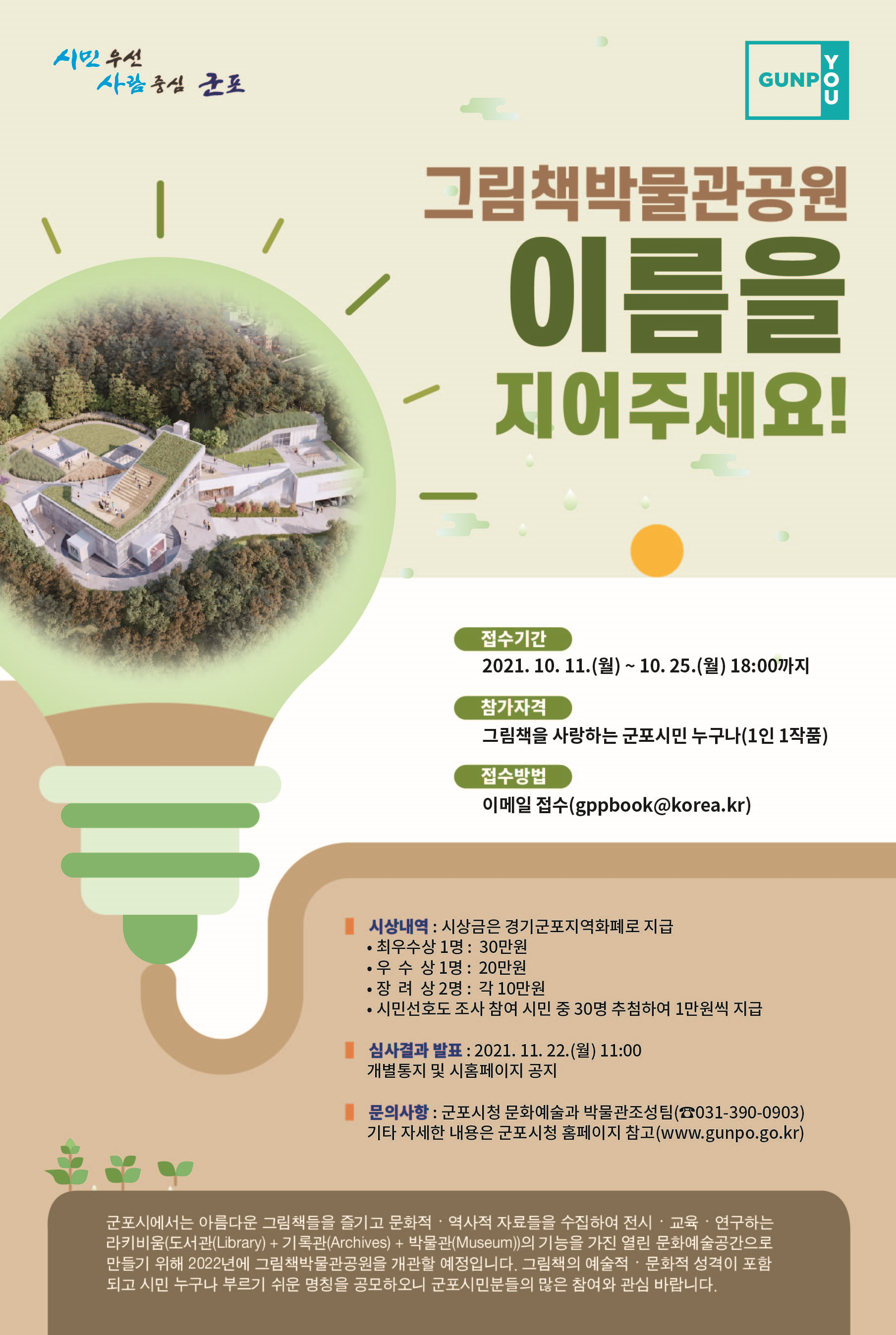 군포시가 ‘그림책박물관공원’의 명칭을 공모한다.