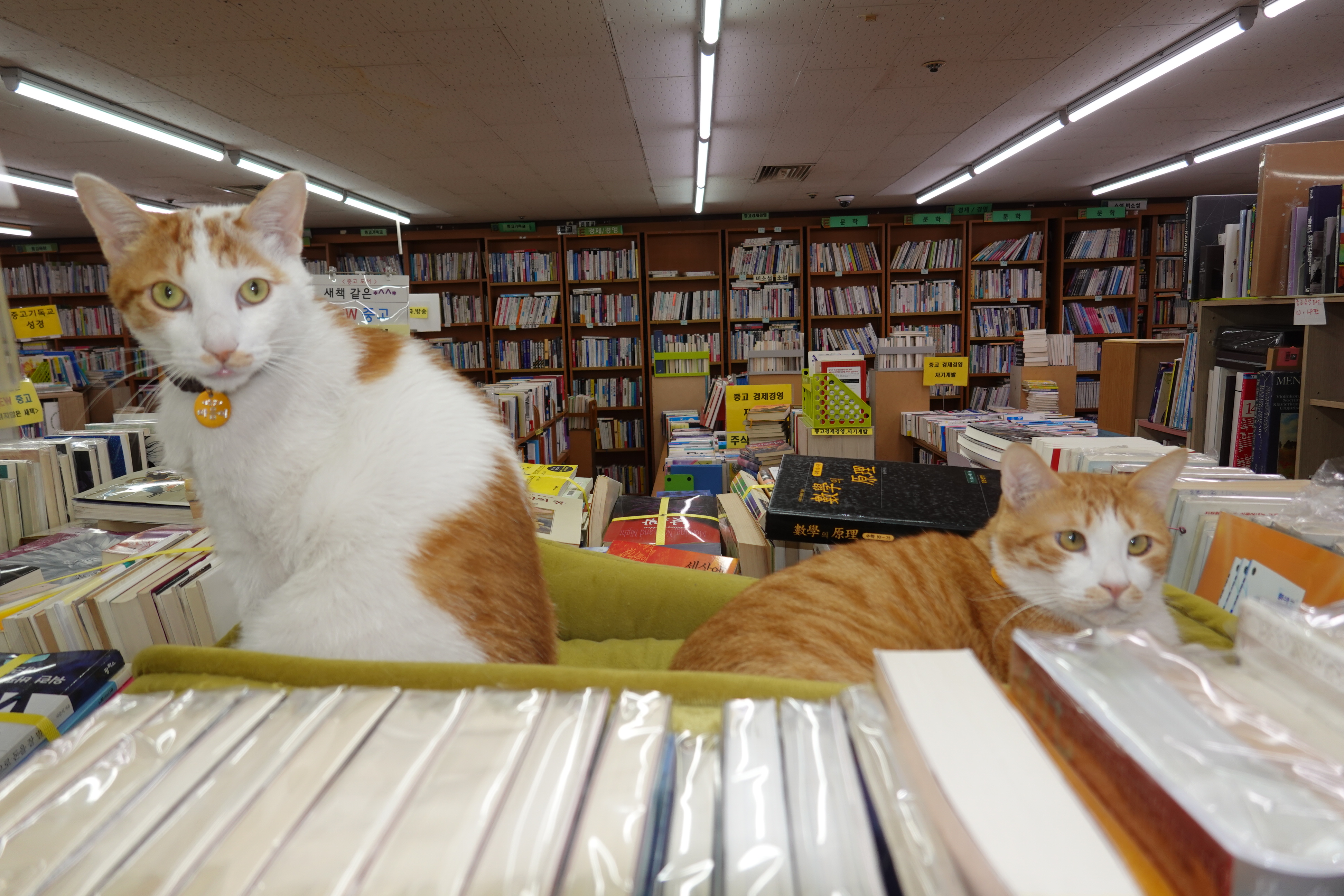 특이한것은 서점 한쪽에 고양이 집도 있고 켓타워도 있는데 서점 직원들은 물론 손님들의 사랑을 듬뿍 받는 고양이 두마리(행복이와 마음이)가 이곳에서 살면서 책꽂이 사이를 누비거나, 손님들과 놀기도 한다.