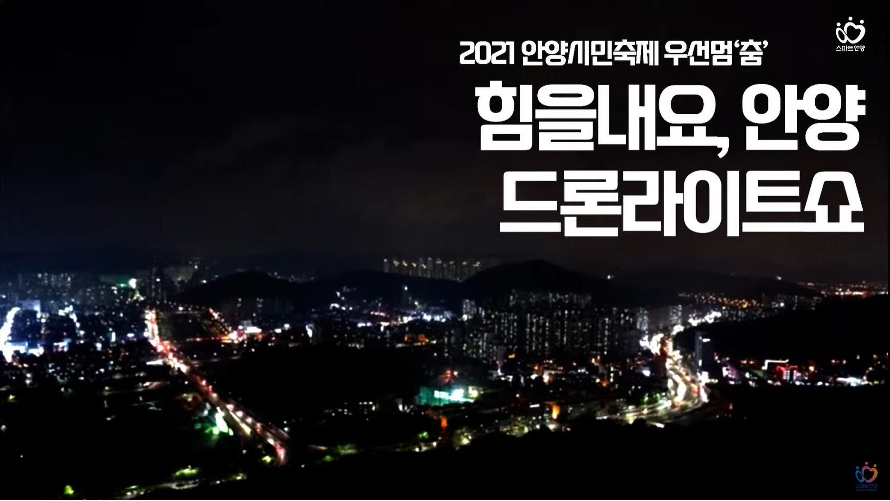 온라인으로 진행되고 있는 2021 안양시민축제 우선멈‘춤’프로젝트의 하이라이트인 <힘을 내요, 안양 드론라이트쇼>로 진행된 이날 행사는 300대의 드론이 안양공고 운동장에서 일제히 떠올라 형형색색 하늘을 수놓는 장관을 연출됐다.