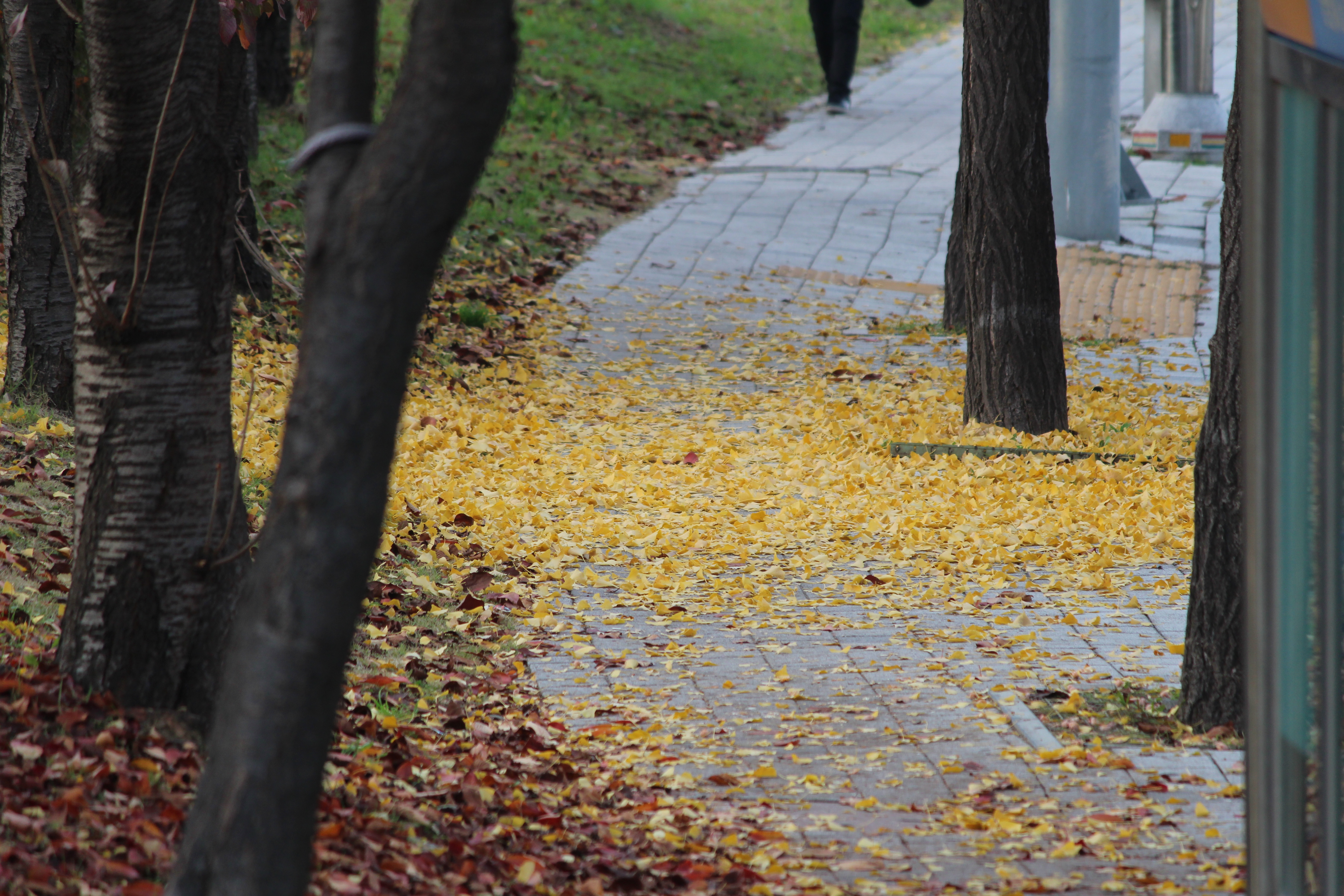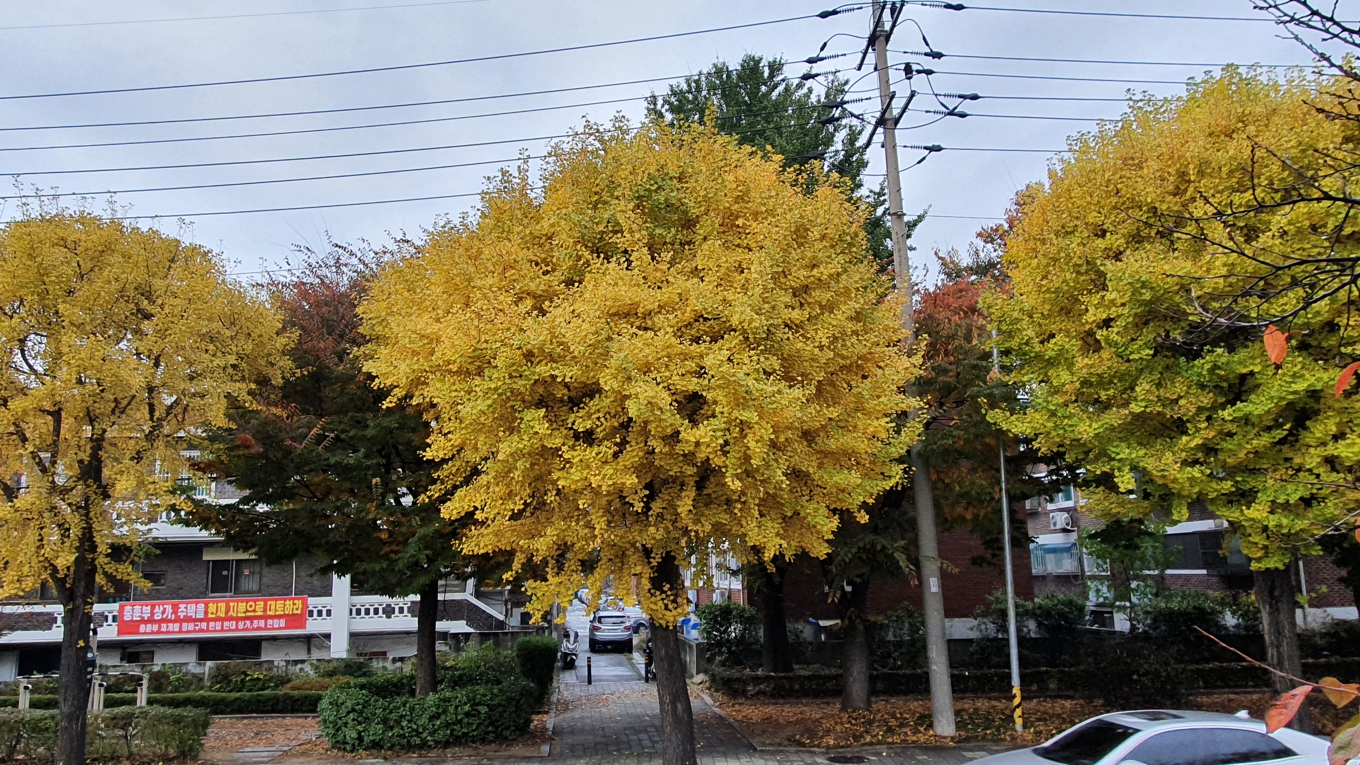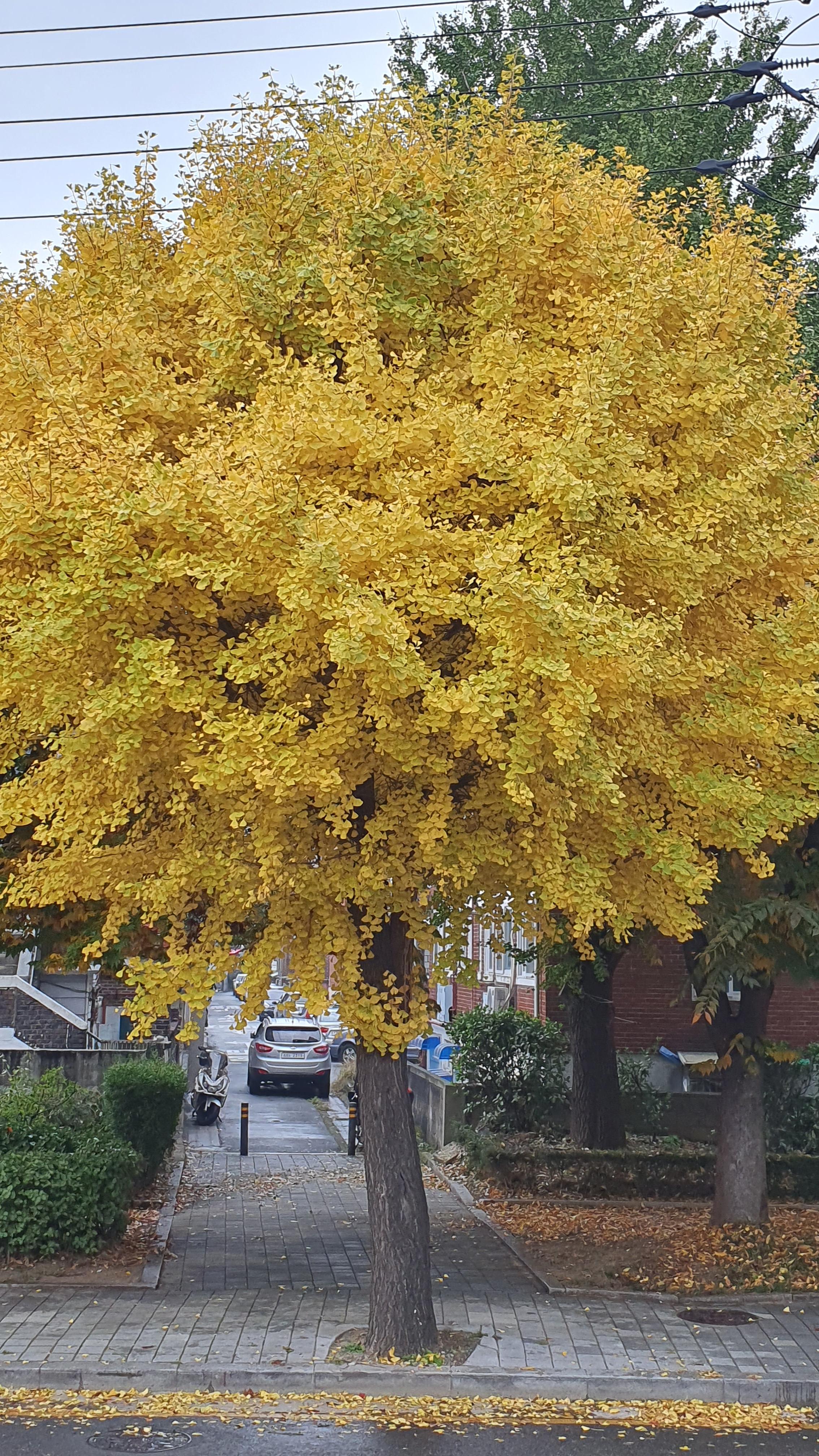 단풍 길이 예뻐 토요일인 6일 오후에 한번 더 다녀왔습니다. 주말을 맞아 산책하시는 분도, 사진 찍는 이들도 많더군요. 불과 이틀이 지지났는데 도로 건너편 인도에 심어진 가로수 은행나무 잎들도 노랗게 변했습니다. 저 잎들이 떨어지면 건너편 인도는 마치 노란 융탄자가 깔린 듯 착각을 일으키지 않을까 싶습니다. 뚝방위는 단풍이 아름다운길, 건너편 인도는 노란 융탄자가 깔린길이 있는 석수3동은 예쁜 동네입니다.