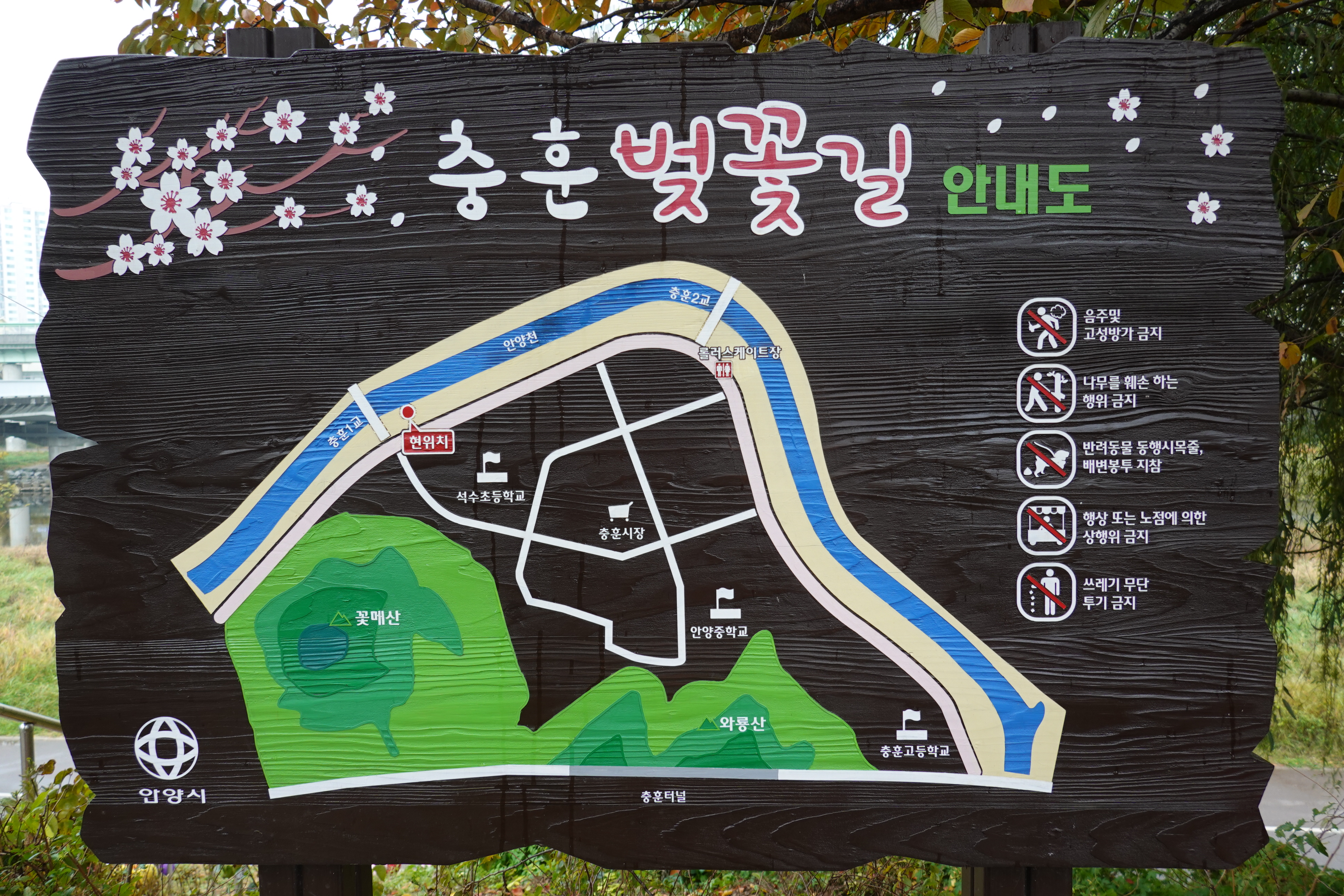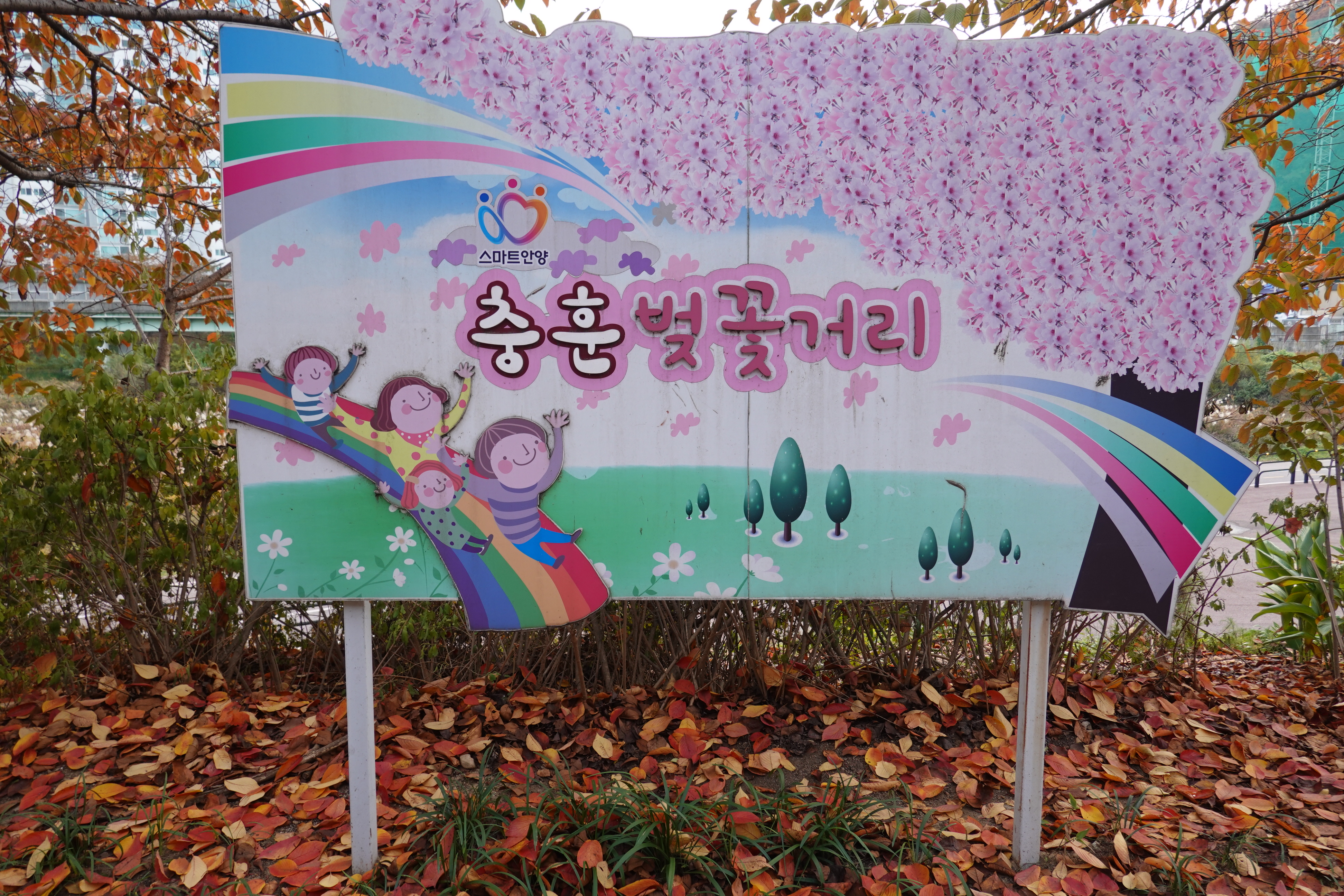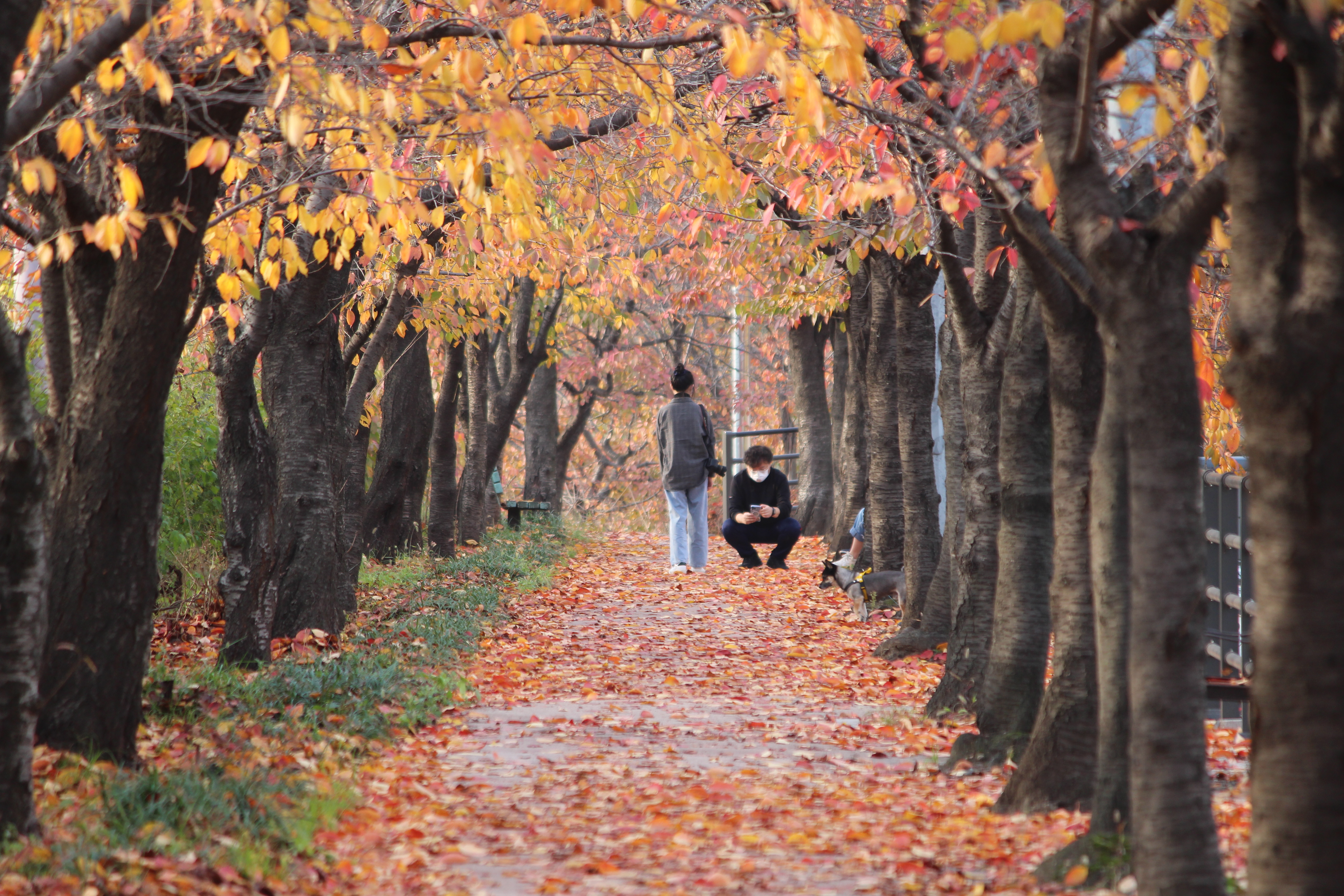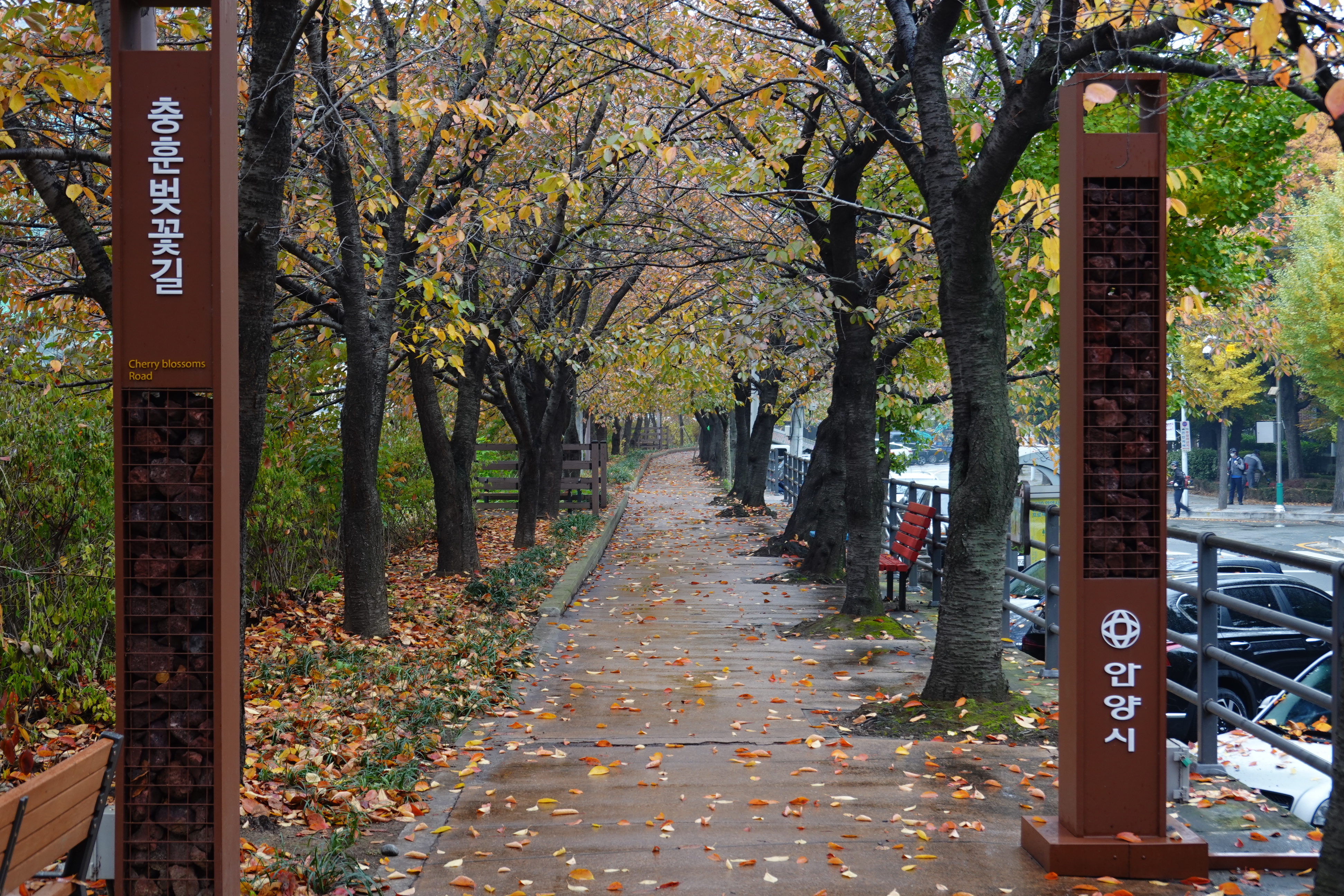 한가지 안타까운 것은 떨어지는 낙엽이 산책길에 쌓여야 밟고 거니는 멋도 있고 포토존 사진도 찍을수 있는데 청소를 부지런히 잘하시는 어르신, 또는 주민이 았으신지. 알부구간에는 깨끗이 치워버려 그 멋을 지속적으로 느껴보지 못한다는 점이지요. 이왕이면 석수3동에서 충훈벚꽃길을 가을에 낙엽을 밟으며 걷기 좋은 아름다운길로 잘 꾸미면 어떨까 싶습니다.