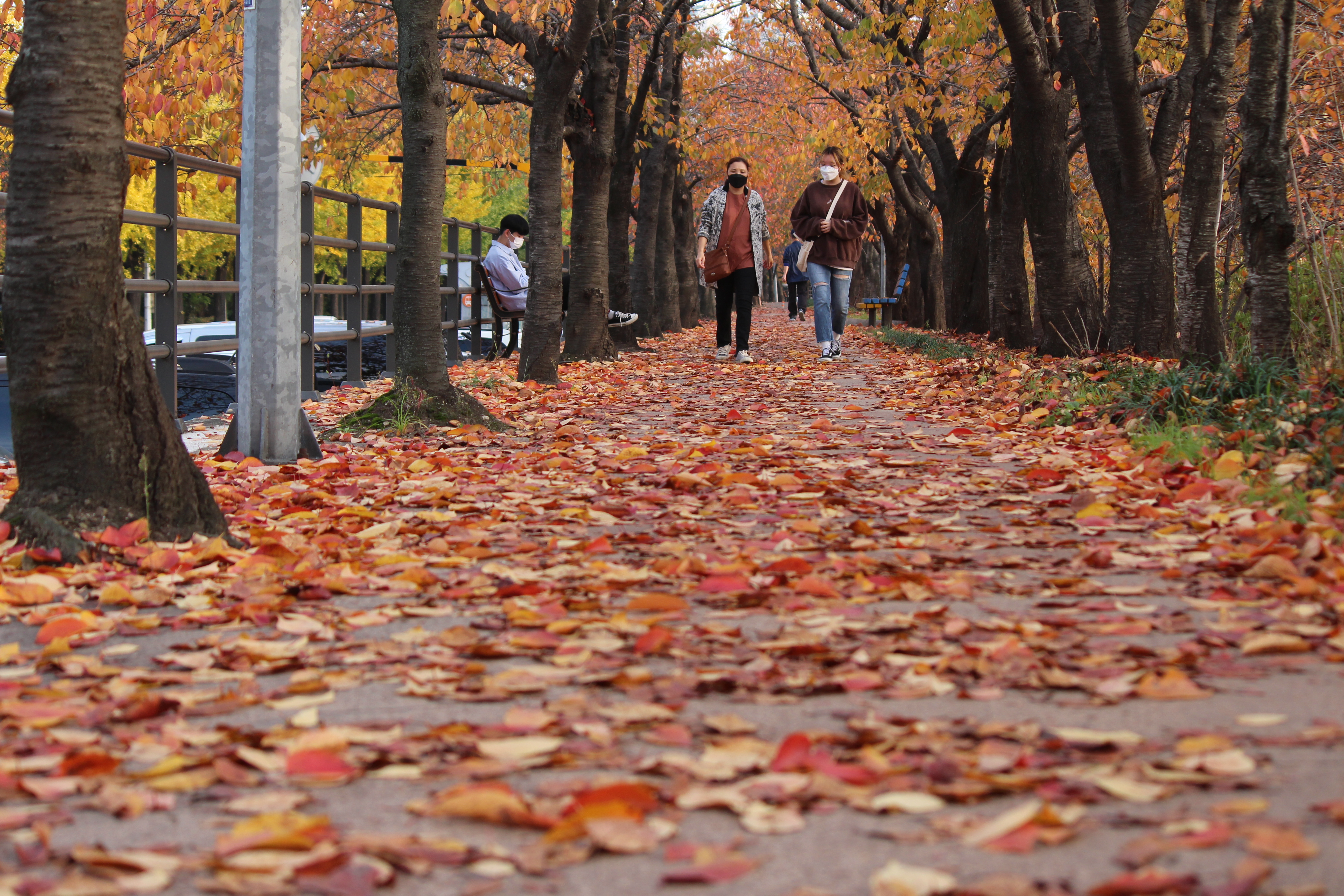 2021.11.04/ #안양 #동네 #석수3동 #충훈벚꽃길 #가을단풍. 2021 만안구청장과 우리동네 마을한바퀴 길라잡이로 나선지 마지막날인 7일차 여정 석수3동에서 둘러본 충훈벚꽃길. 벚봄이 피는 봄 보다는 울긋불긋 단풍이 물든 가을이 멋진듯 싶습니다. 아름다운 산책로 중간에 설치된 벤치에 앉아 음악도 듣고 책도 읽고, 스마트폰을 하는 모습이 고즈녁한 가을 정취를 느낄수 있는 아름다운 풍경입니다.