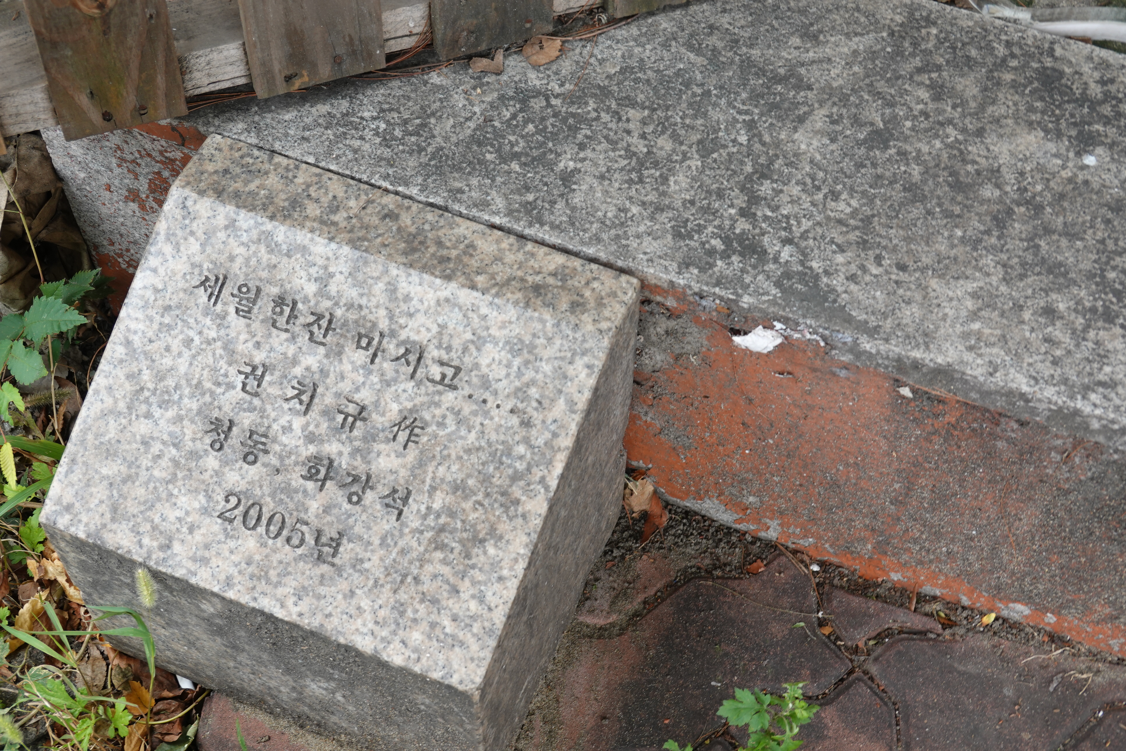 2021.10.18/ #안양 #조형물 #미술품 #안양2동/ 서울대환경대학원 성종상교수및 학생들의 길라잡이로 안내하며 돌아본 안양 만안구 동네 한바퀴. 안양2동 만안로에서 양명고 가는길. 안양천서로옆 마인빌오피스텔 뒷편. 건물은 지을때 설치했던 조형물은 어디론가 사라지고 표지석만 댕그러니 남았다.