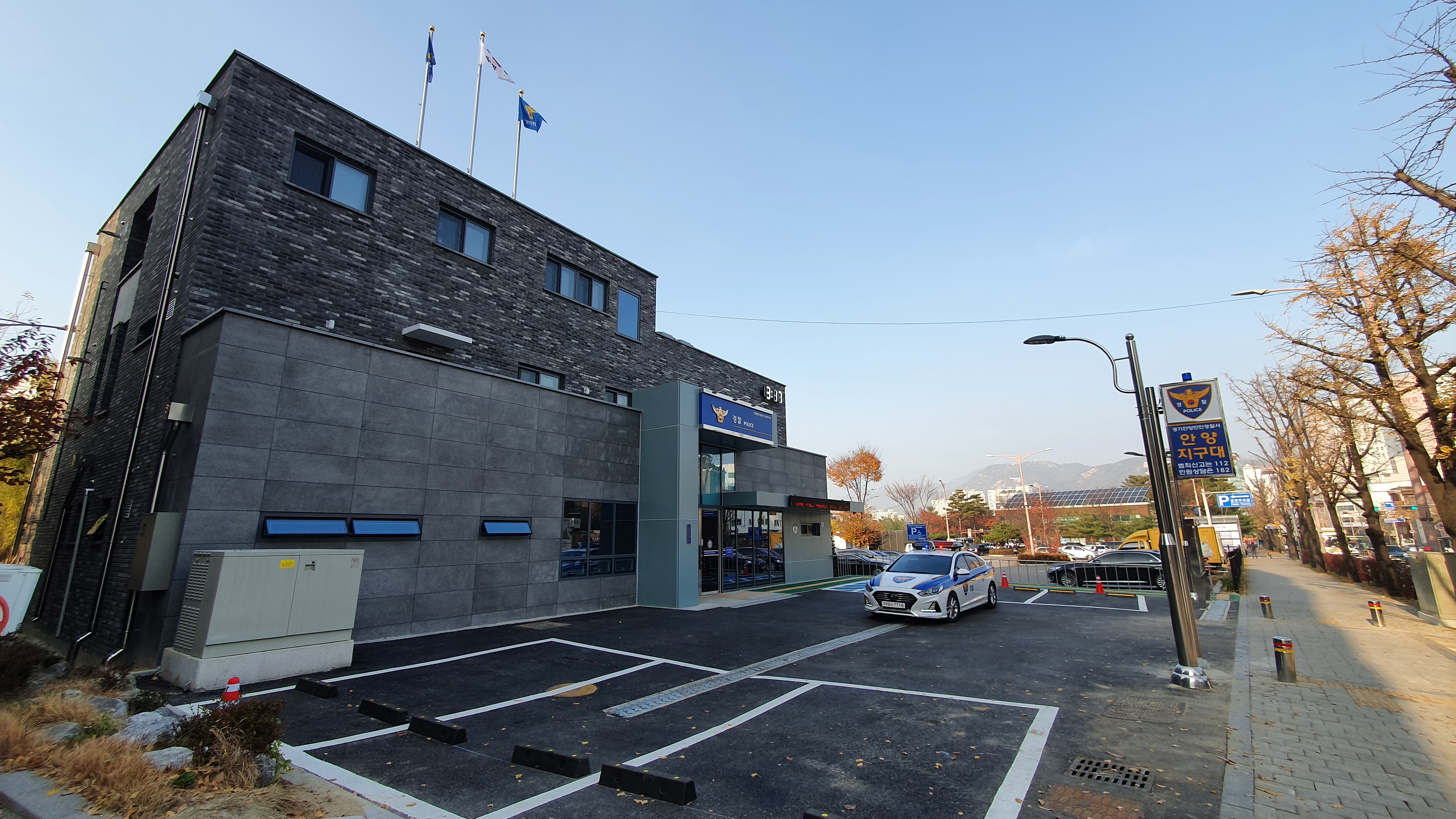 2021.11.20/ #안양 #동네 #골목 #공공기관 #경찰 #안양지구대/ 안양4동 삼덕도서관옆(안양시 만안구 안양동 782-82)에 새로운 공공시설 하나가 들어섰다. 안양역사 한쪽에 있던 안양만안경찰서 안양지구대가 신축 이전한 것.안양지구대는 지상 3층 규모로 안양1·2·3·4·9동 등 9.03㎢의 관할 면적과 인구 7만 7백여 명의 치안을 담당한다.기존 안양역사 내 위치했던 안양지구대는 2002년도 건축한 건물로, 20년이 넘는 세월의 흐름에 따른 건물 노후화와 치안 수요 확대로 인한 근무 인원 증가로 인해 사무 공간 및 민원인 편의시설의 절대 부족으로 인해 신축 청사 공사를 추진하였다.