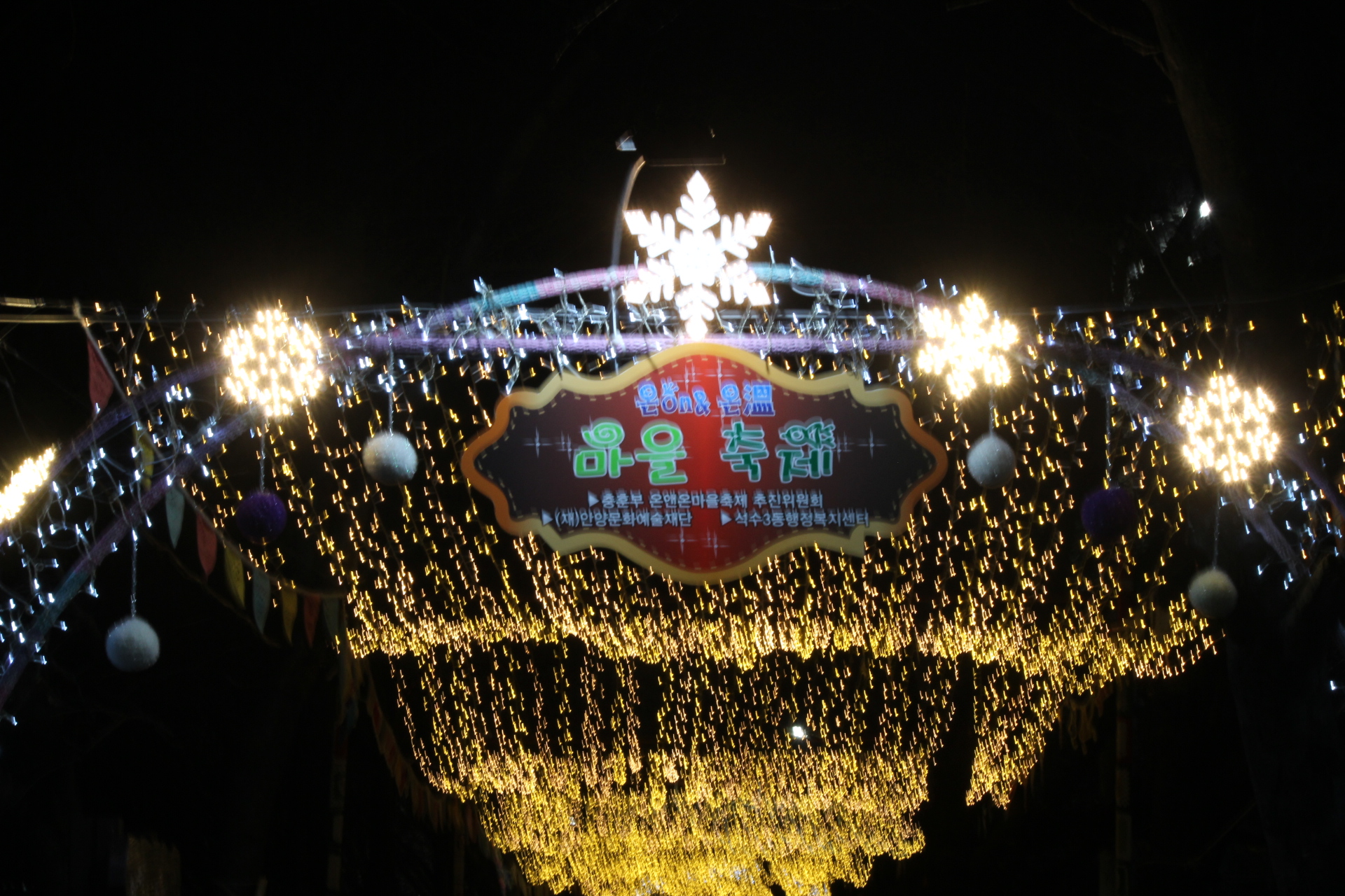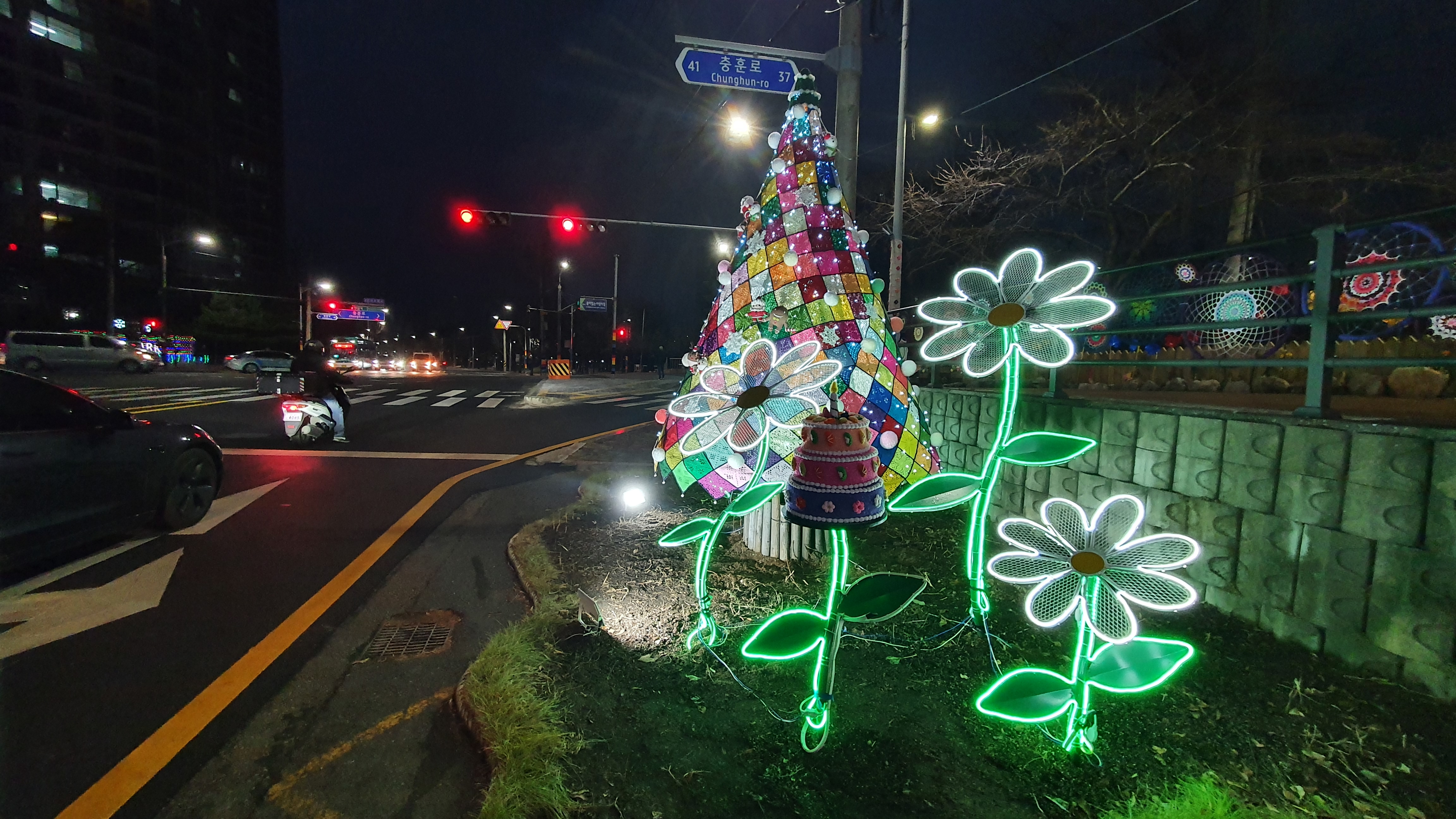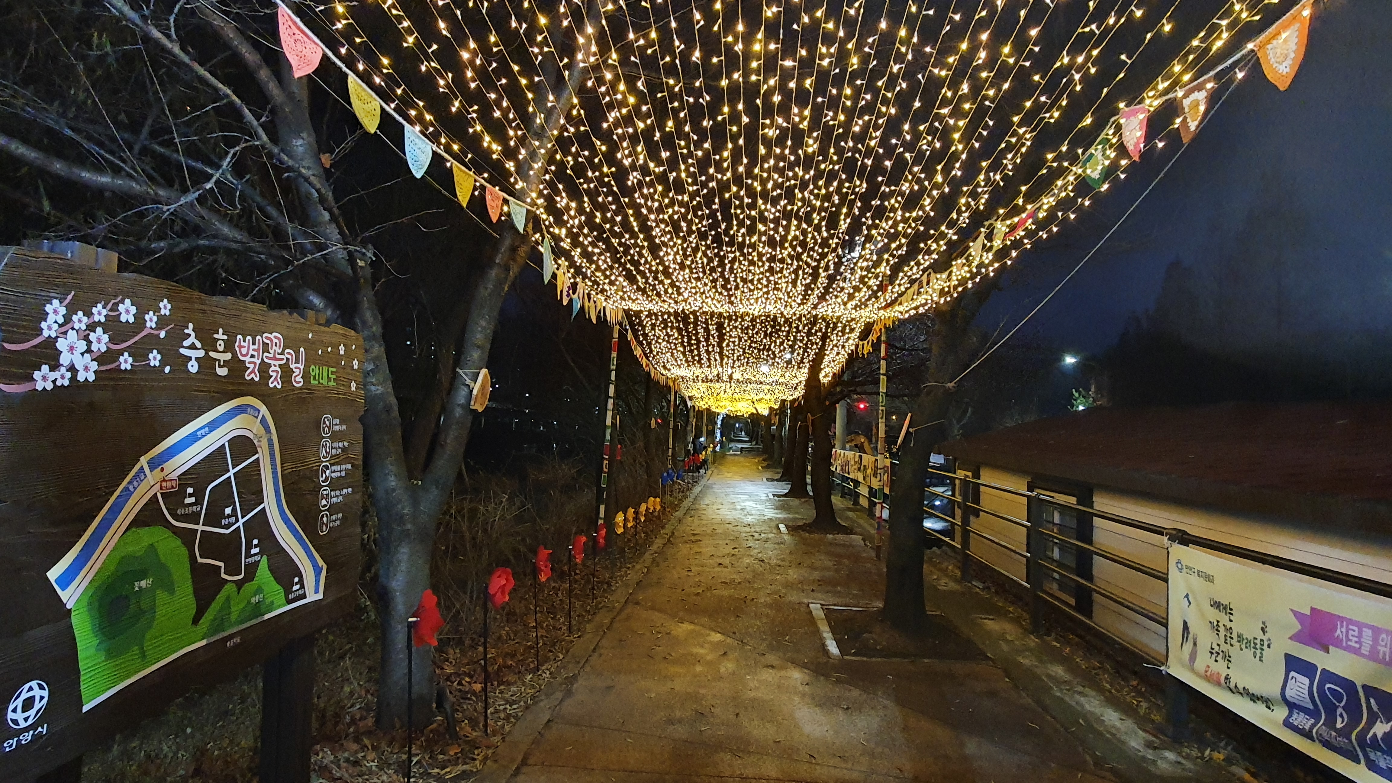 20201.12.10/ #안양 #동네 #골목 #충훈벚꽃길 #석수동 #야간 #경관/ 봄에 벚꽃 구경만 하던 충훈 벚꽃길이 가을엔 단풍 구경과 낙엽 밟는길, 겨울엔 성탄과 연말을 앞두고 조명이 예쁘게 켜진 길로 바뀌었네요. 이 모두가 주민들 아이디어와 손길로 만들었다는 사실에서 박수를 보냅니다.