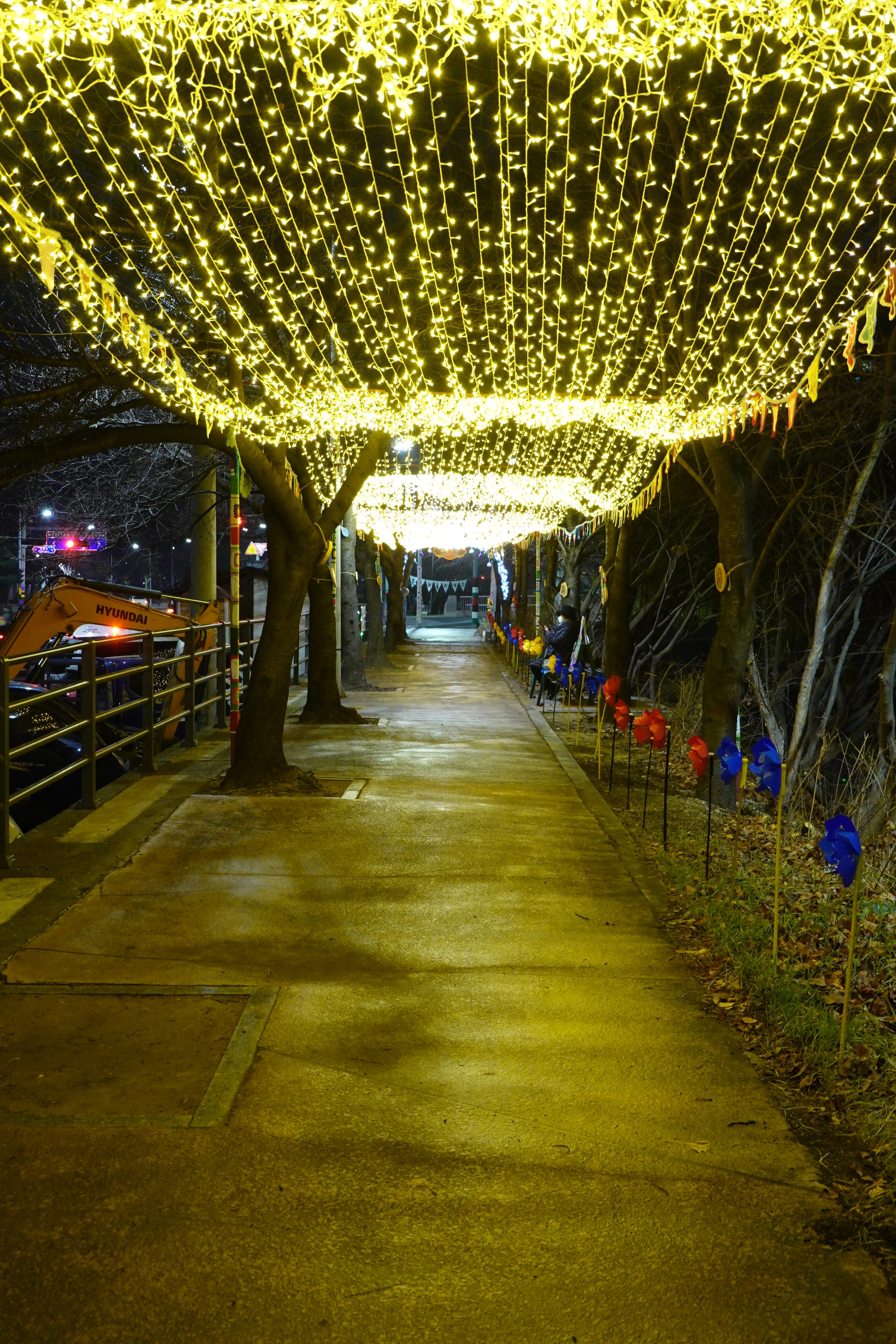 20201.12.10/ #안양 #동네 #골목 #충훈벚꽃길 #석수동 #야간 #경관/ 봄에 벚꽃 구경만 하던 충훈 벚꽃길이 가을엔 단풍 구경과 낙엽 밟는길, 겨울엔 성탄과 연말을 앞두고 조명이 예쁘게 켜진 길로 바뀌었네요. 이 모두가 주민들 아이디어와 손길로 만들었다는 사실에서 박수를 보냅니다.