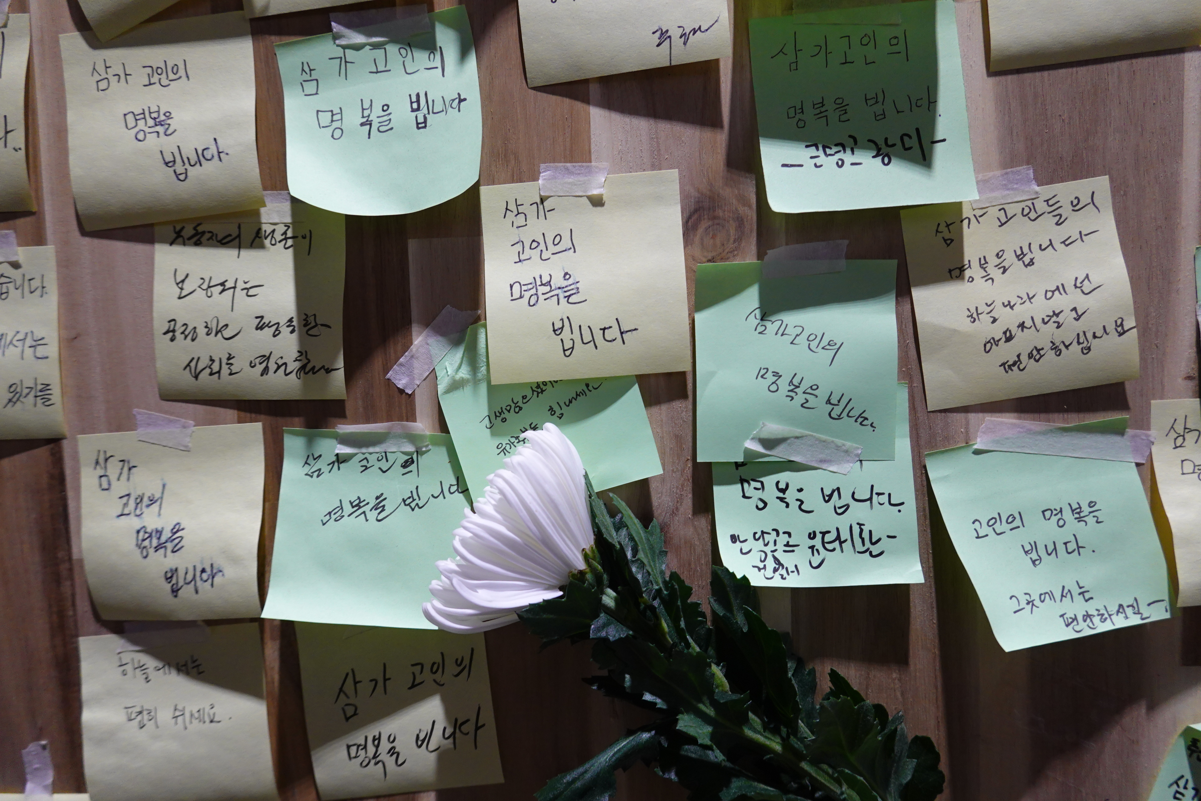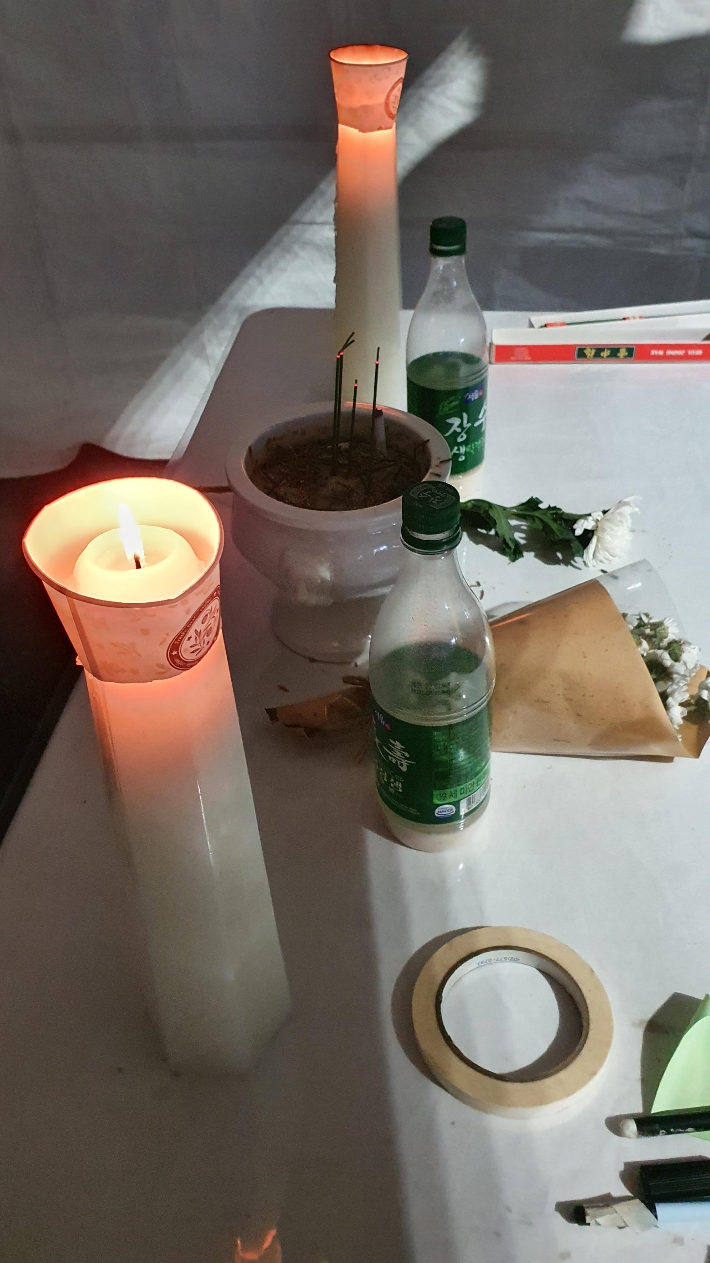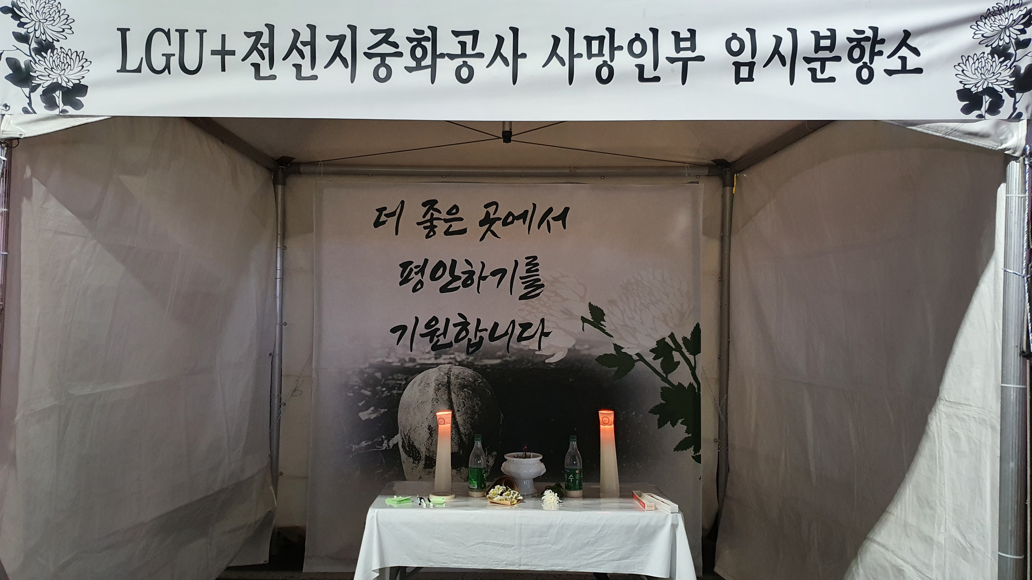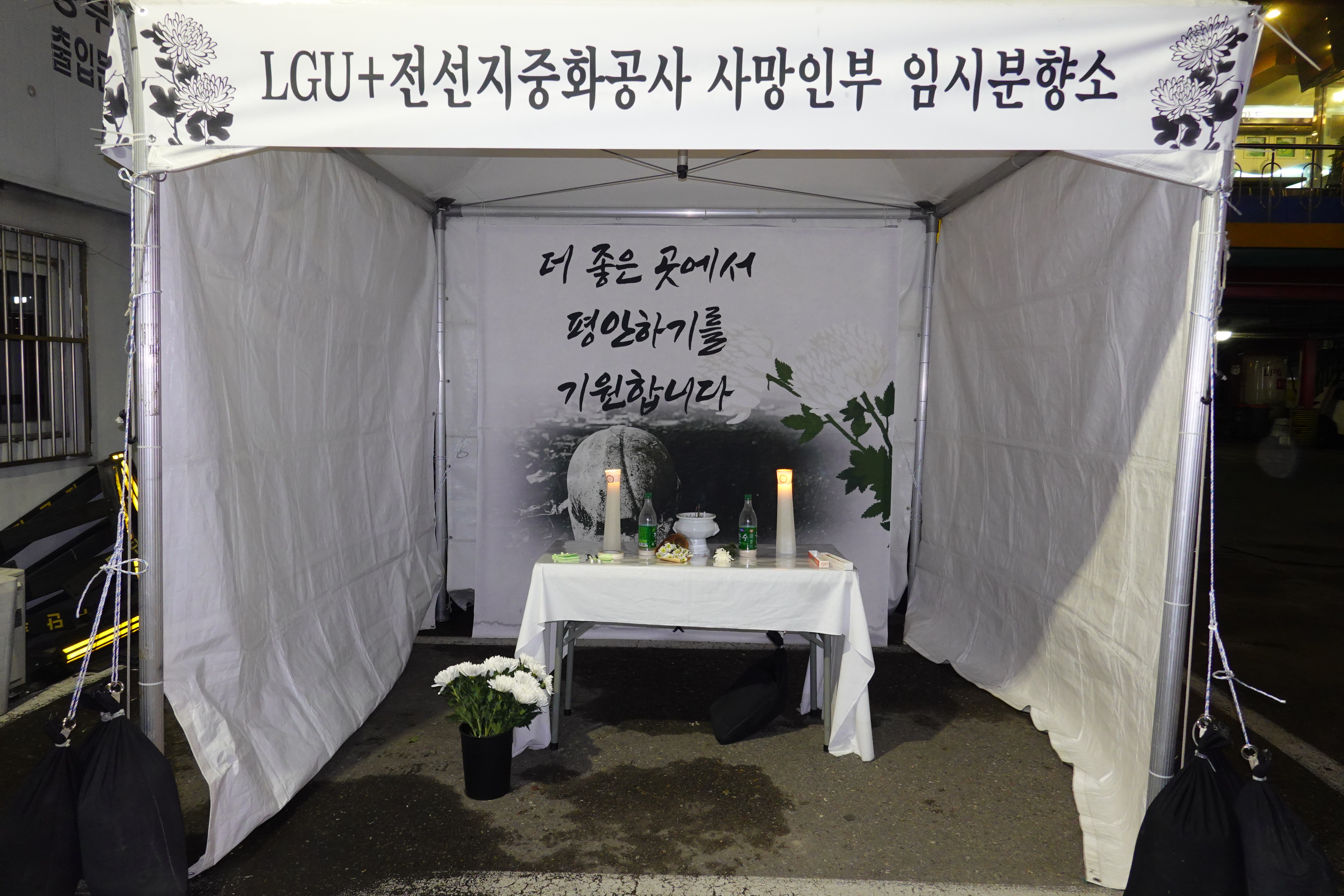 2021.12.10/ #참사 #추모/ 안양여고사거리 인근 LGU+전선지중화공사 롤러참사 사망자 릴레이 추모-4일차. 안타깝고 억울하게 돌아가신 건설노동자 3인을추모하고자 참사 현장앞 인도 한켠에 마련했던 임시분향소가 현장앞 음식점 개성면옥의 협조로 주차장 앞쪽에 새롭게 정성스레 마련되어 12월 말일까지 운영된다고 합니다…..새 분향소가 마련된 12월 10일 첫날에는 안양시민단체연대회의가 추모의 시간을 가졌습니다....