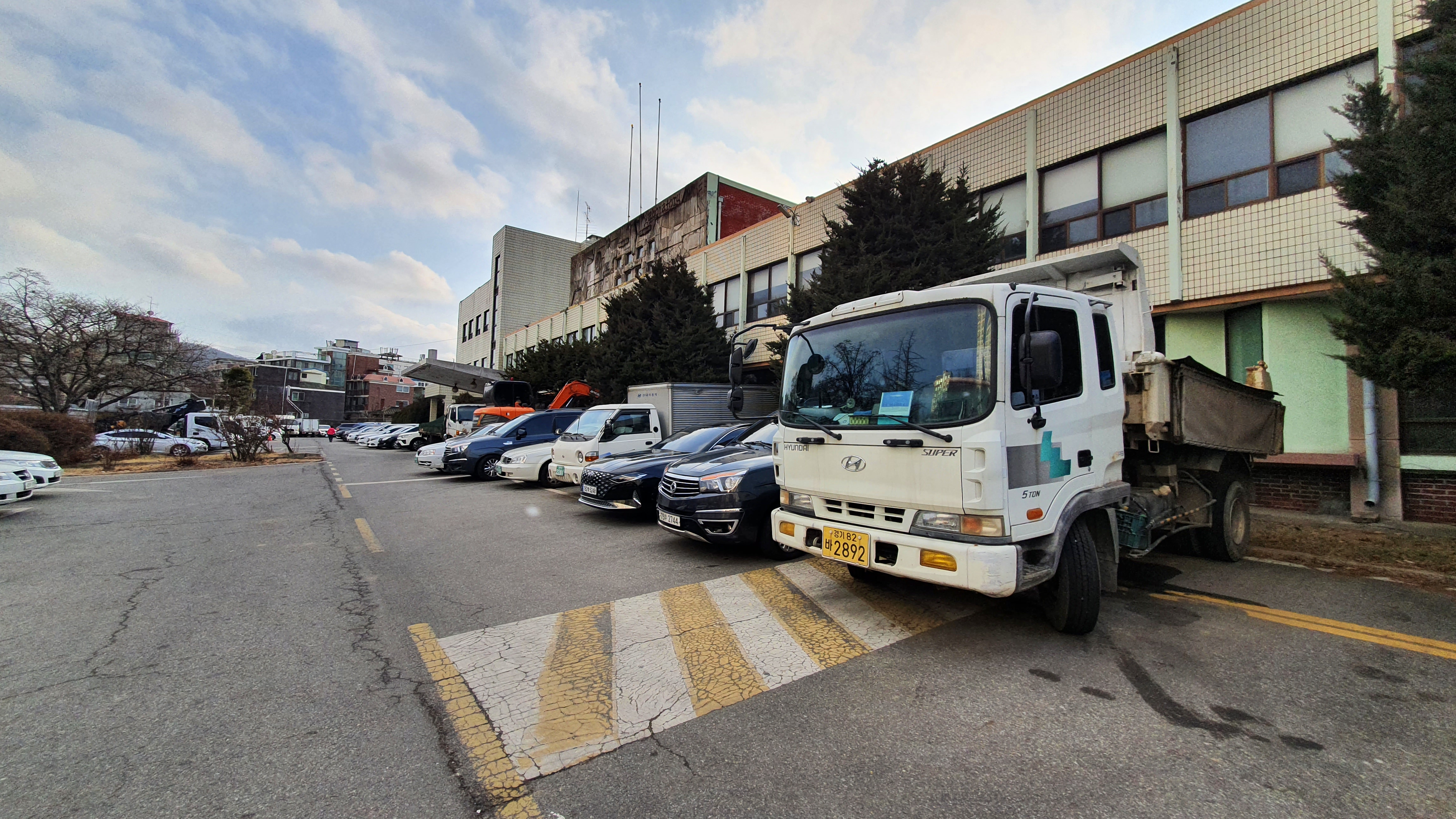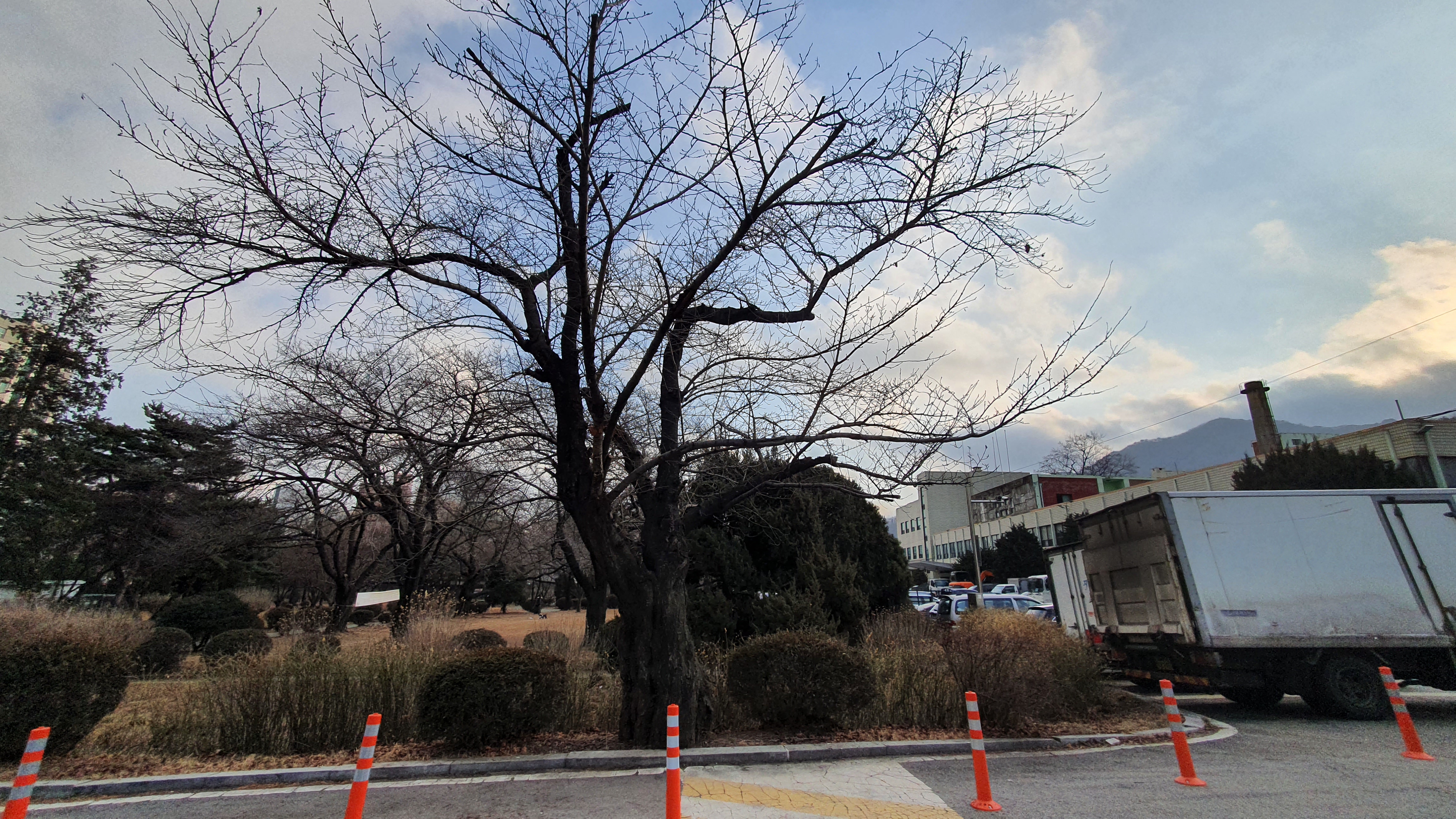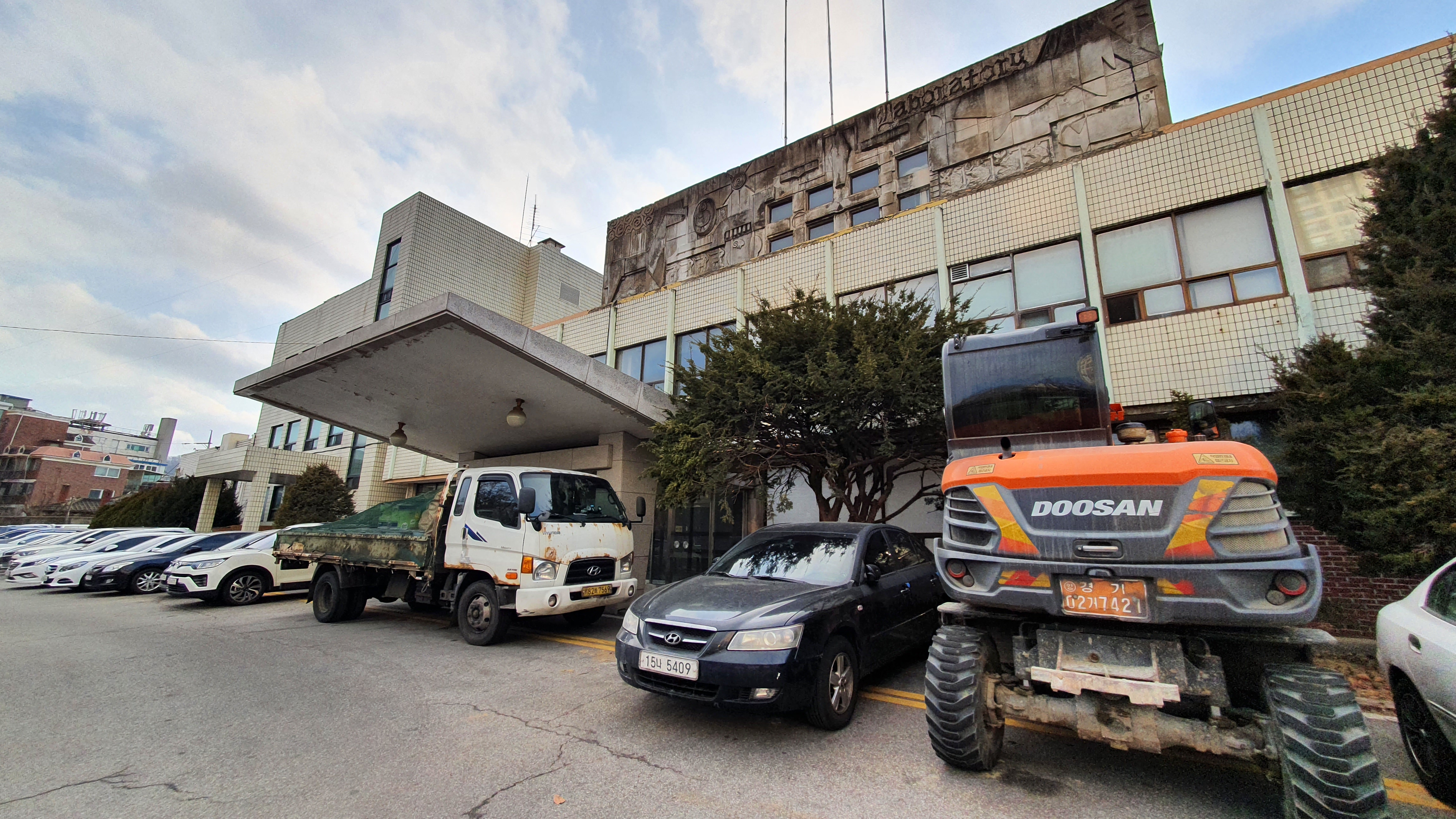 2022.01.17/ #안양 #동네 #기록 #안양산책 #구농림축산검역본부 #옛국립수의과학검역원/ 중앙정부 공공기관의 지방이전으로 안양시가 매입했으나 부지활용방안을 찾지 못해 장기 방치중인 안양6동 구 농림수산검역검사본부내 풍경. 검역원내 부지가 주차공간으로 무료 개방되면서 승용,승합에 레저차량은 물론 화물, 덤프, 포크 등 중장비차량까지 장기 주차 차량들로 그야말로 가득찬 상태다. 더욱이 정원내 60-100년 가까이 되는 고목들은 노령화에 관리 부재로 나무 기둥이 썩어 샹긴 구멍에 온갖 쓰레기를 집어넣고 이를 방치하며 나무들이 하나둘 죽어가고 있는 상태로 그야말로 참혹하다.