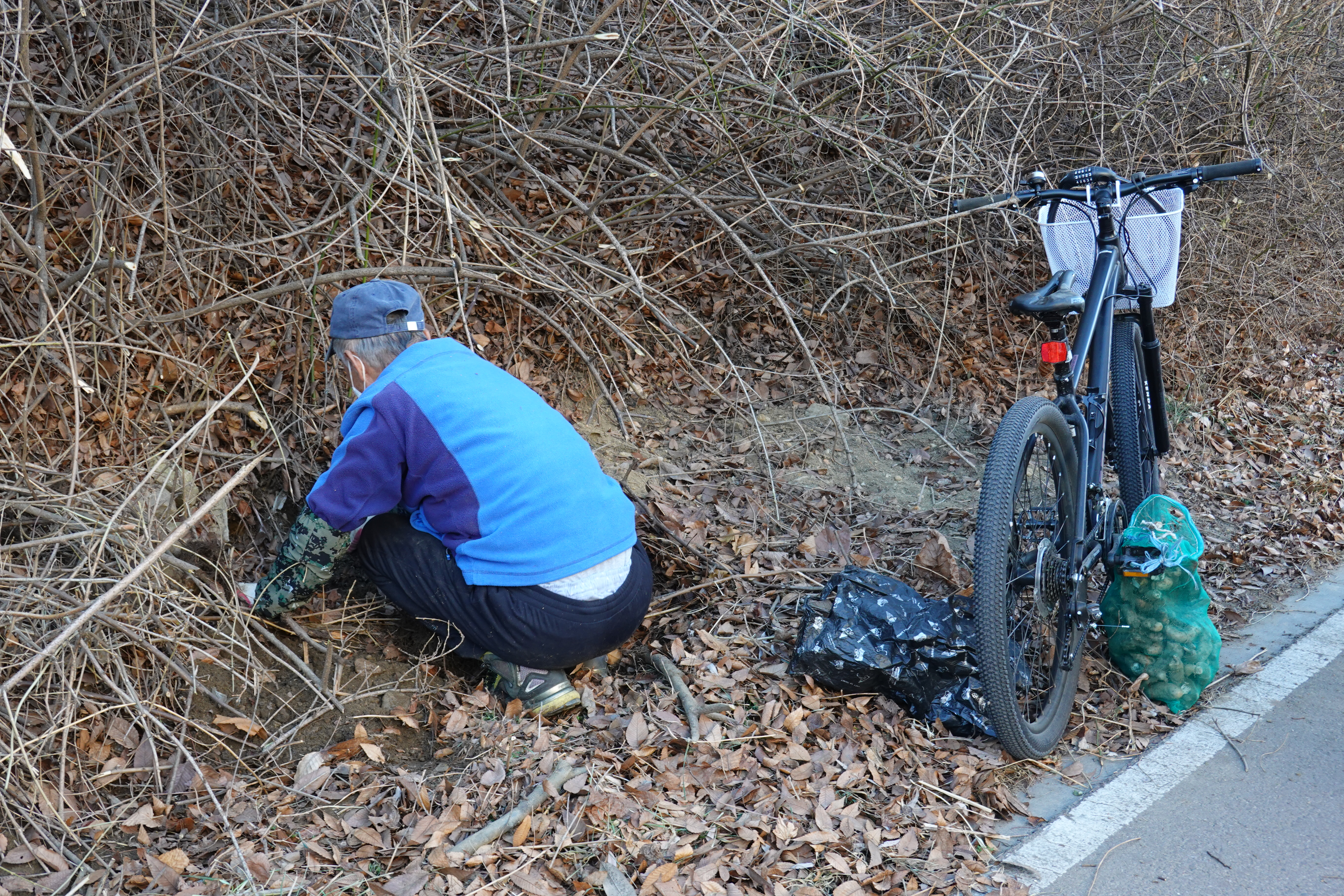 2022.01.30/ #안양 #안양천 #보물 #마/ 안양천을 산책하던중 덕천교 서쪽 산책로옆에서 무언가를 열심히 캐시는 할아버지 한분. "할아버지 무얼 캐세요?""마". 안양천변에 칡이 많은것은 알고 있지만 마라니. 자전거옆 주머니를 보니 이미 캐놓은 뿌리가 굵직굵직한 마가 한보따리다. 옷차림새나 땅을 파는 손놀림을 볼때 보통어르신이 아닌듯 싶다. 할아버지에게는 마치 보물과도 같은 마가 안양천 어디에 있는지 꿰뚫고 있는듯한 느낌이다.