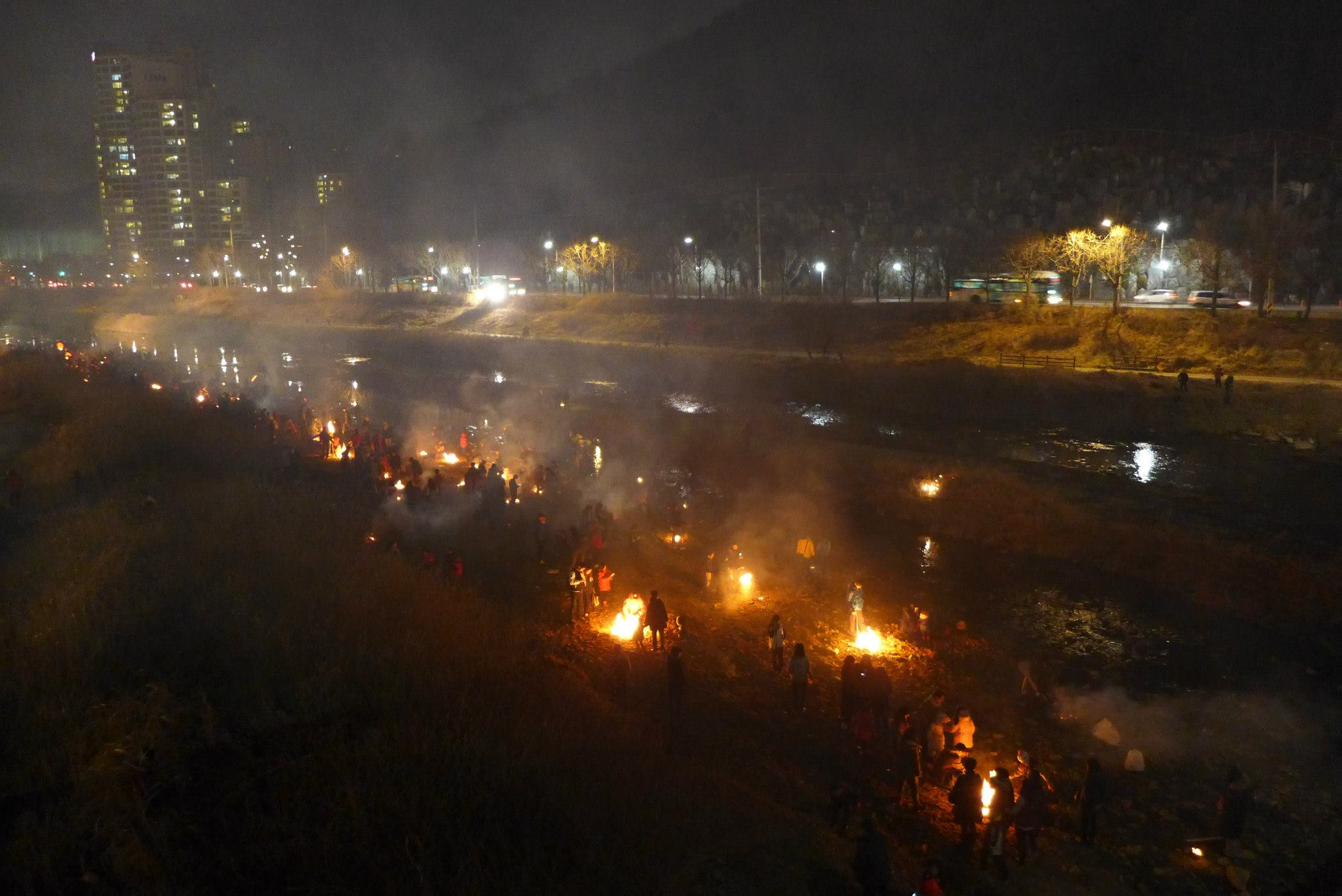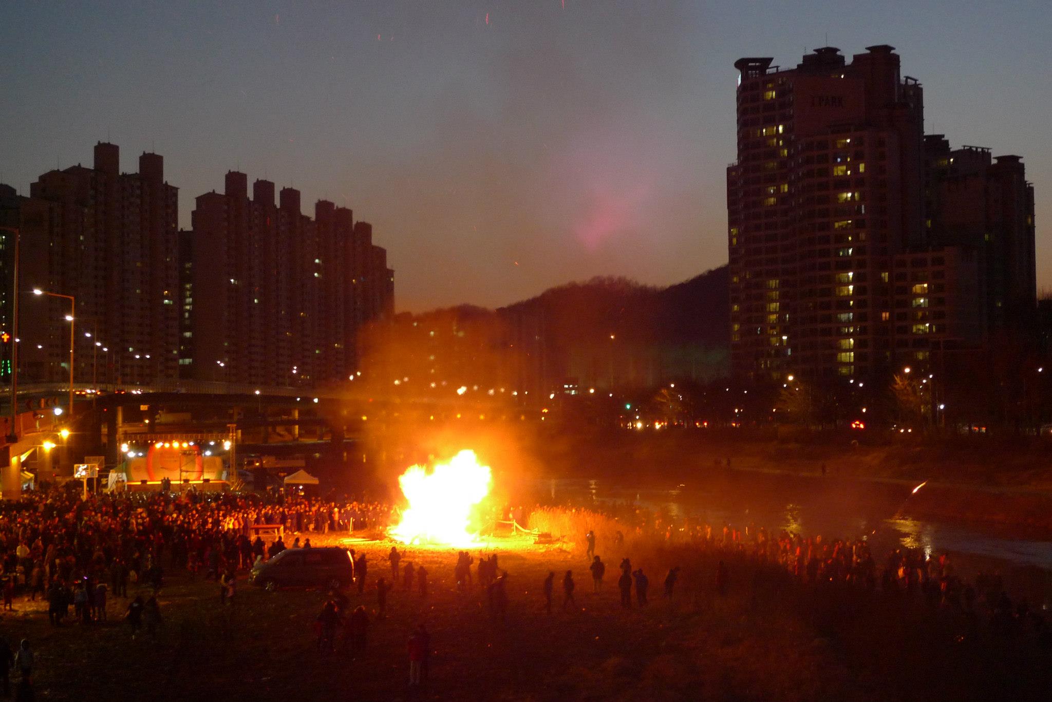 안양천서 쥐불 돌리고 달집 태우는 날