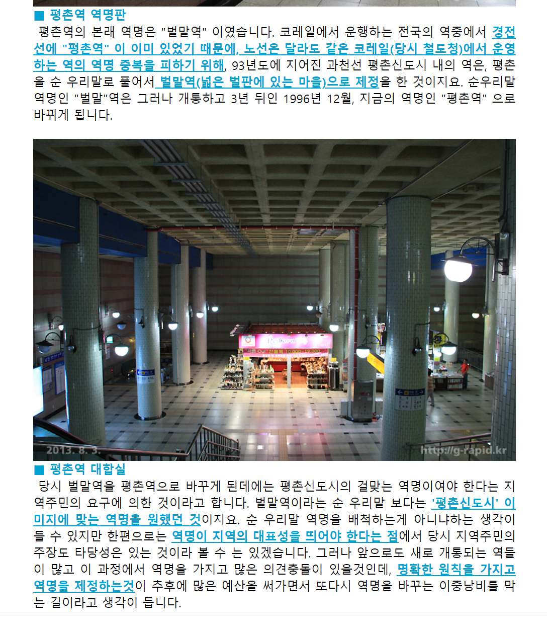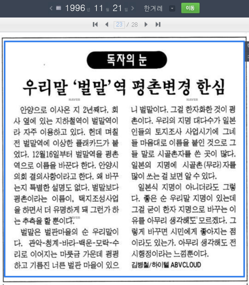 지하철4호선 평촌역.개통 당시에는 순 우리말을 딴 벌말역으로 명시돼 사용되다가 어떤 이유에서 한자 지명을 딴 평촌역으로 바뀌었을까. 당시 신문을 통해 속사정을 살펴본다.