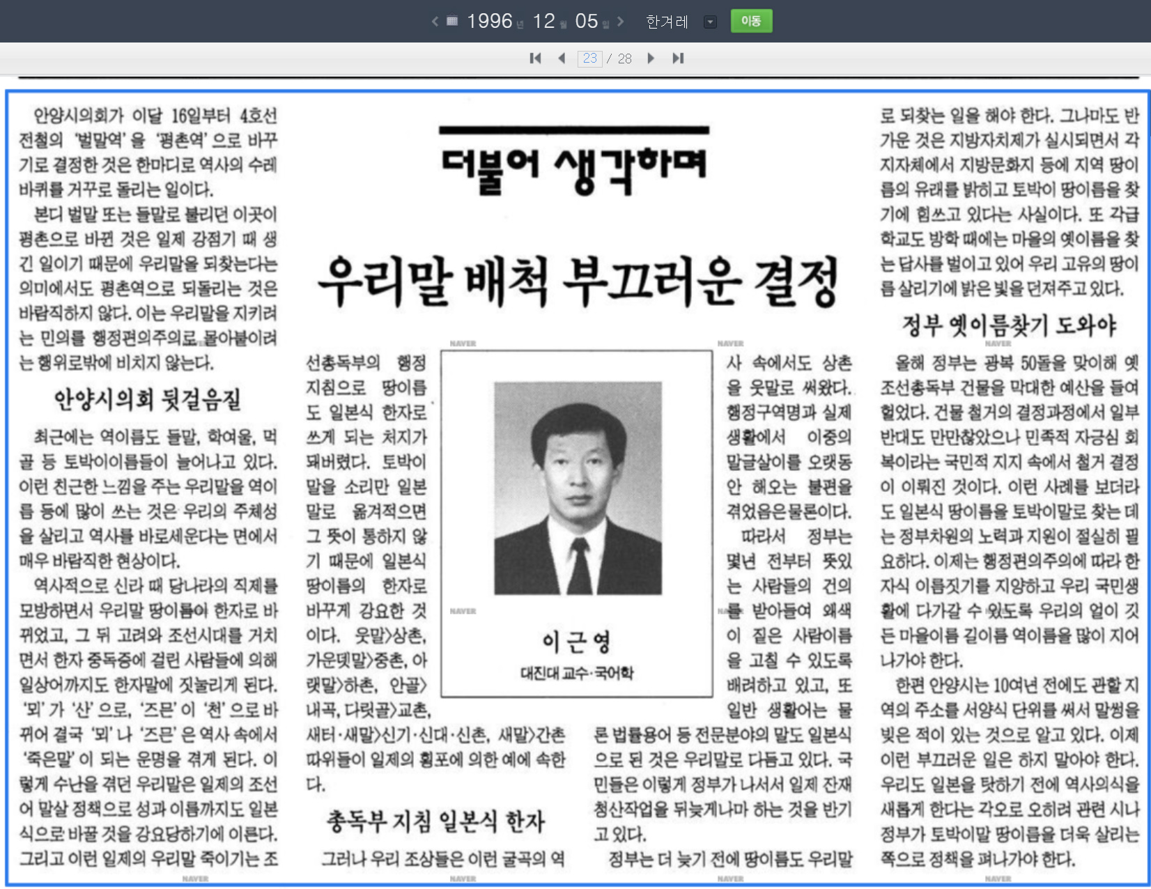 당시 안양시민신문 김우태기자는 "정겨운 우리 땅이름이 촌스럽다며 멀리한 신도시 주민들 때문에 안타깝게 일제시대 명칭으로 바뀌었다"고 말했다.