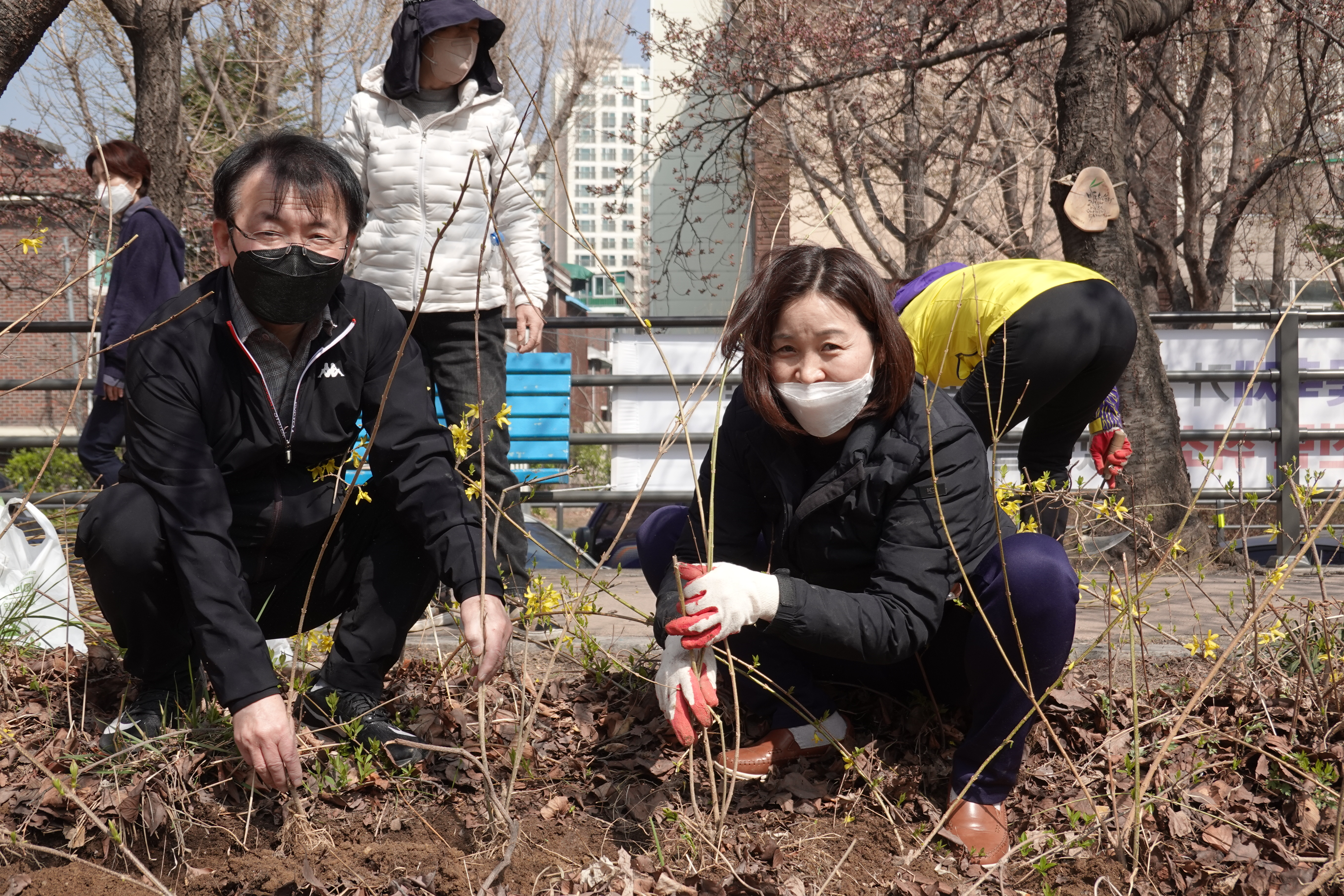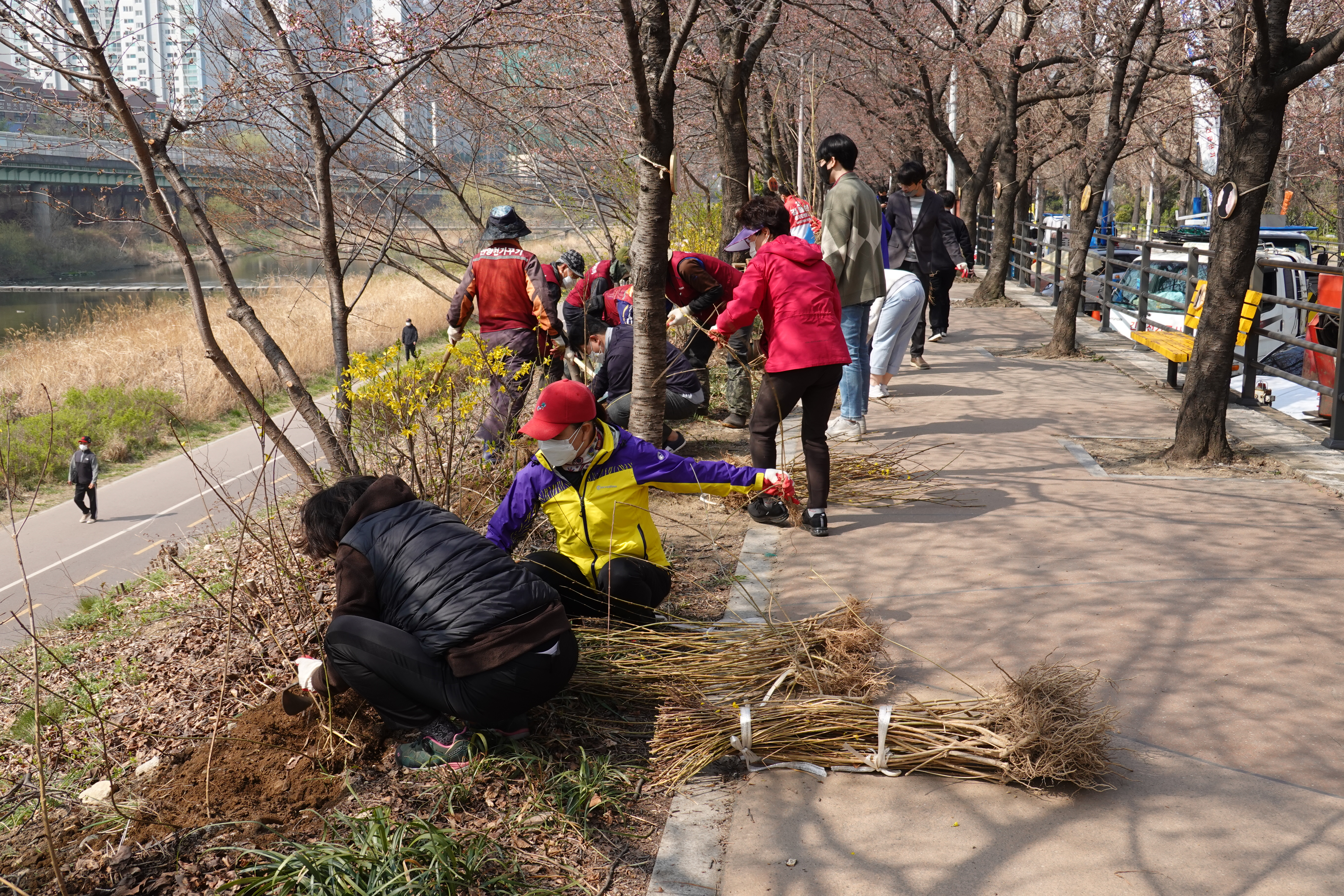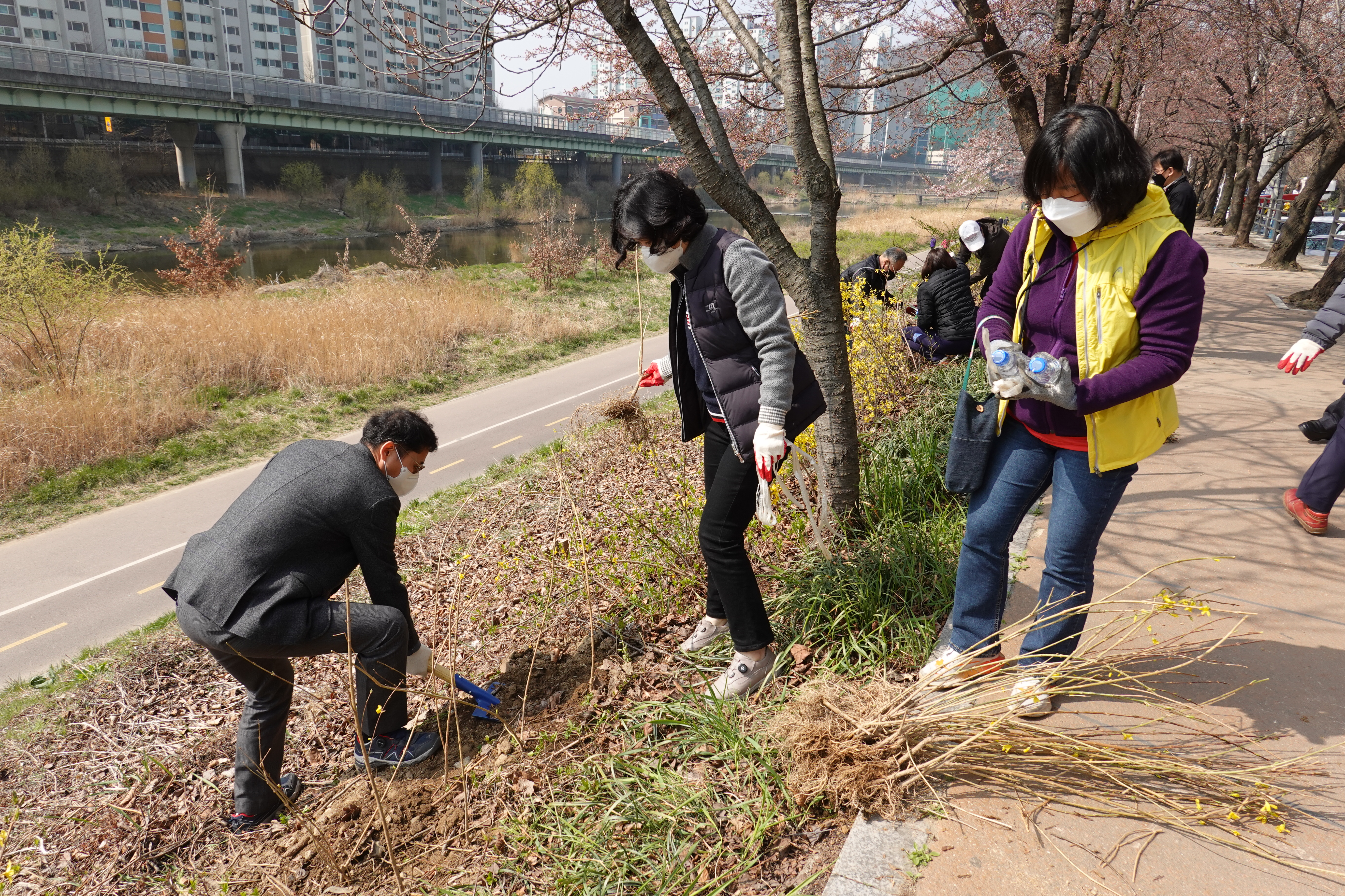 도시분과위원회(위원장 장경숙)에서는 지난 6일 안양천 충훈부 벚꽃길 둔치에서 안양시화인 개나리 모종 700여본 식재하는 작업을 전개하였다.